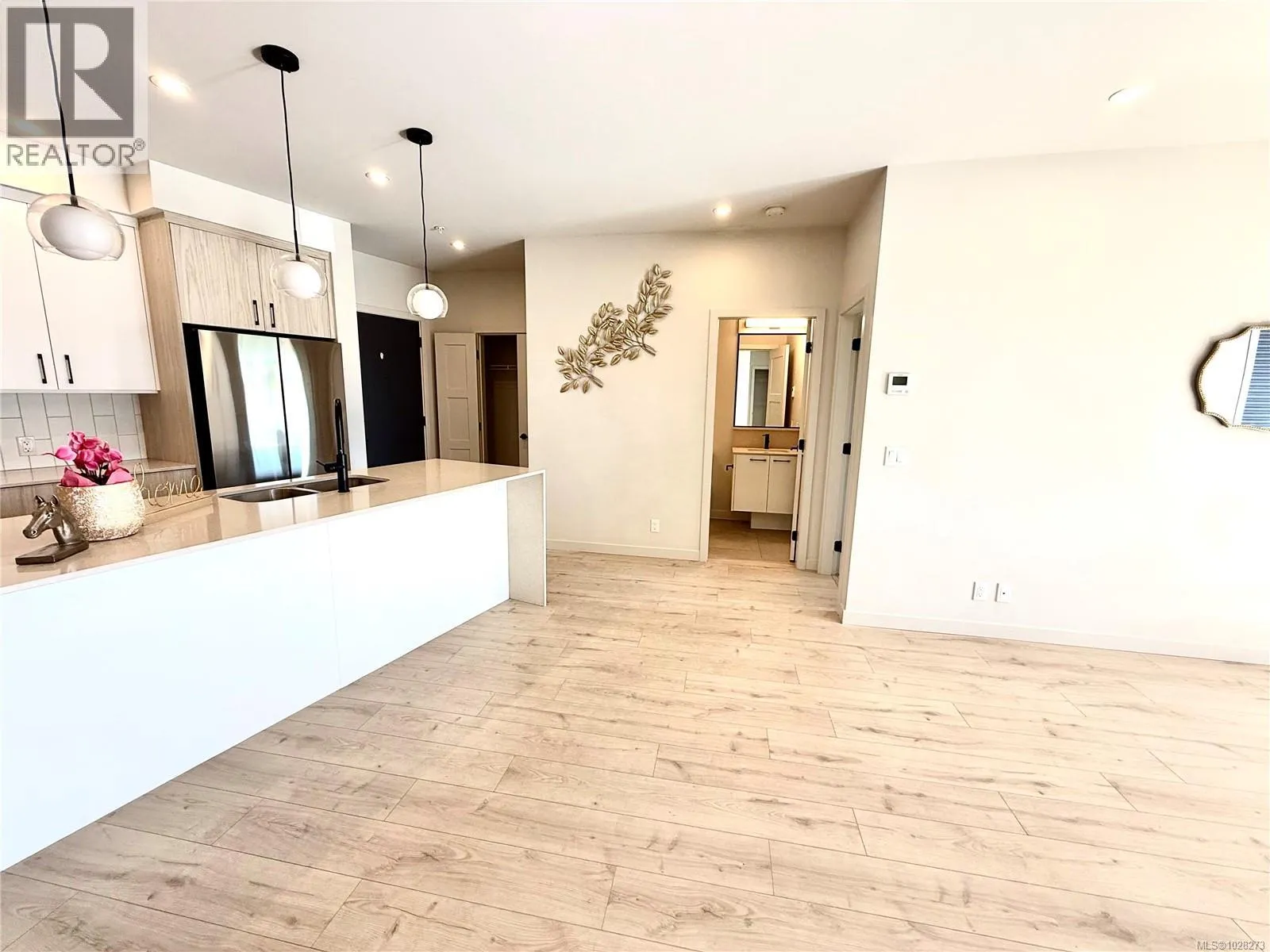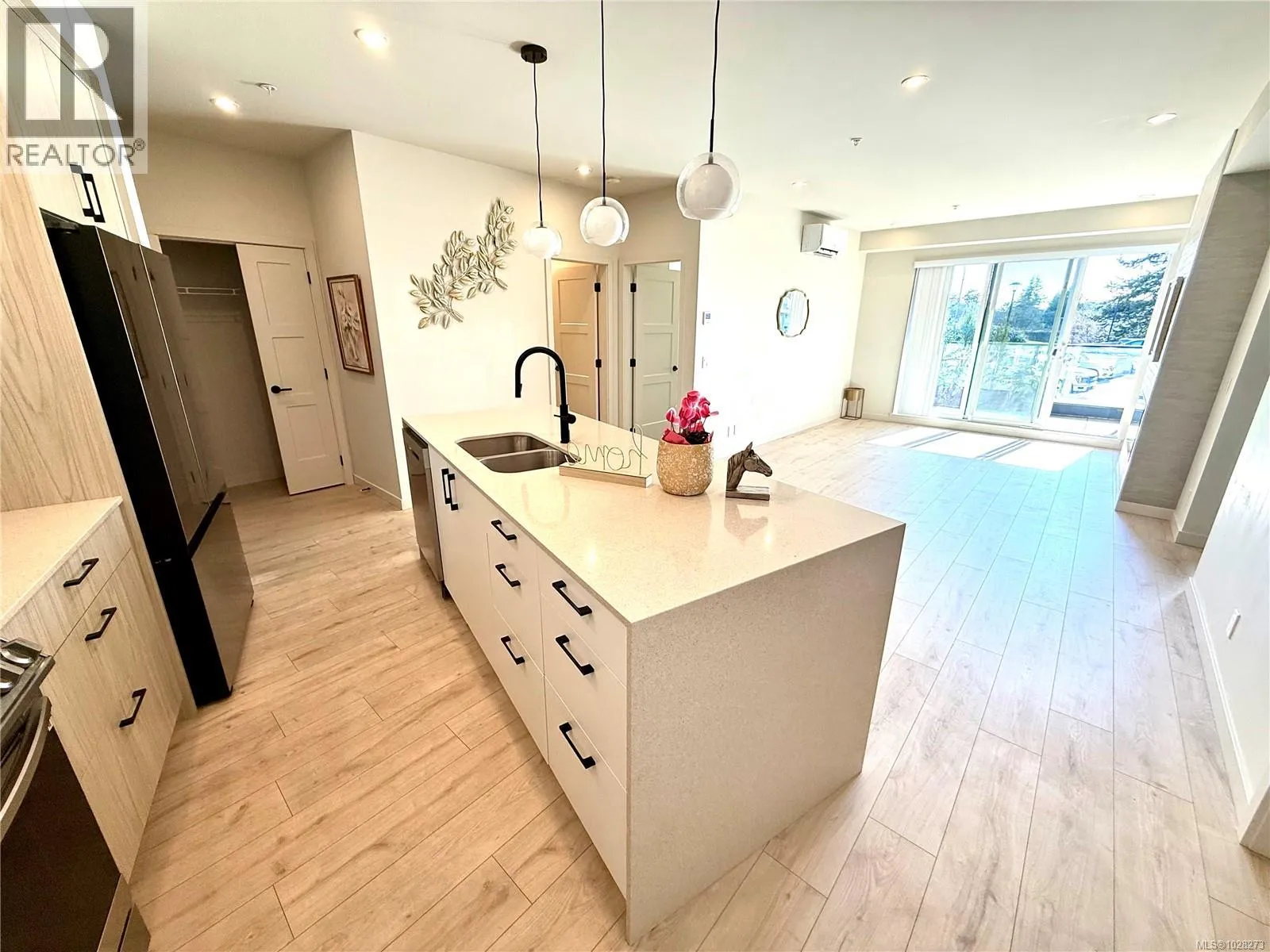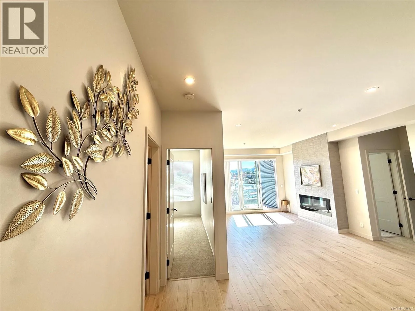 A work of art home looks like brand newâno GST! Located in the heart of Langford in Greater Victoria, in a convenient area close to Costco. The building offers great amenities including a clubhouse, shared rooftop patio, and a 1,000 SF gymâperfect for gatherings with family and friends. Includes 2 parking stalls and a storage locker. A standout feature of this home is its two entrances. Enter through the main entrance and walk directly to the end of the hallwayâno elevator or stairs needed. Or use the convenient side door located right to the unit, offering direct access without passing other residences. The waterfall kitchen island and spacious balcony are sure to impress. Ductless split heat pumps are installed in all bedrooms and the living room, with the strata fee covering their cost. A stunning electric fireplace adds a luxurious finishing touch to this exceptional homeâtruly a happy place to live.. Measurements and listing info are approximate, Buyer to verify if important. Luke Chen, MBA, P. Eng. (Non-practicing), PMP, 778-677-9557 AgentLukeChen@Gmail.com (id:27476)