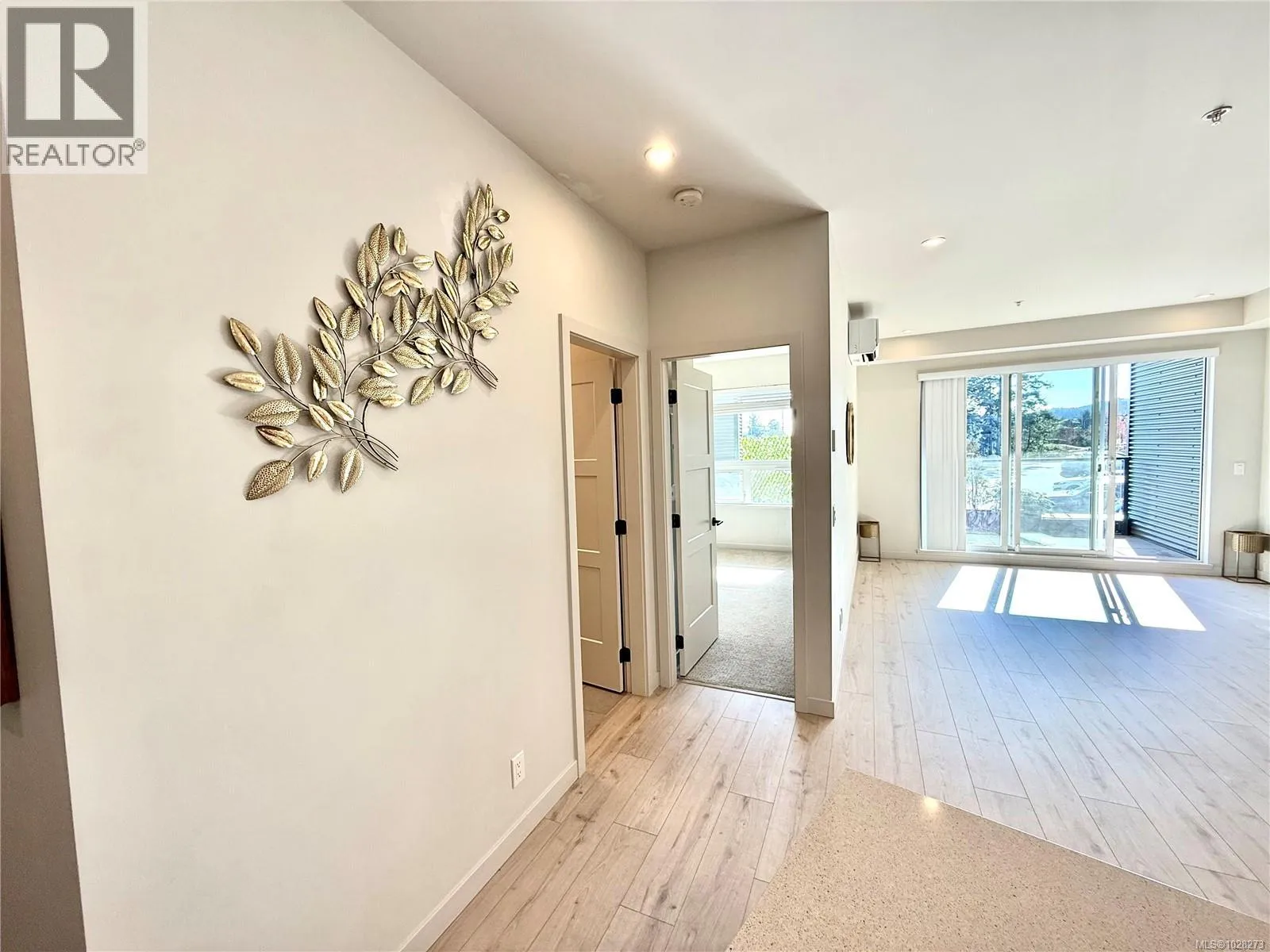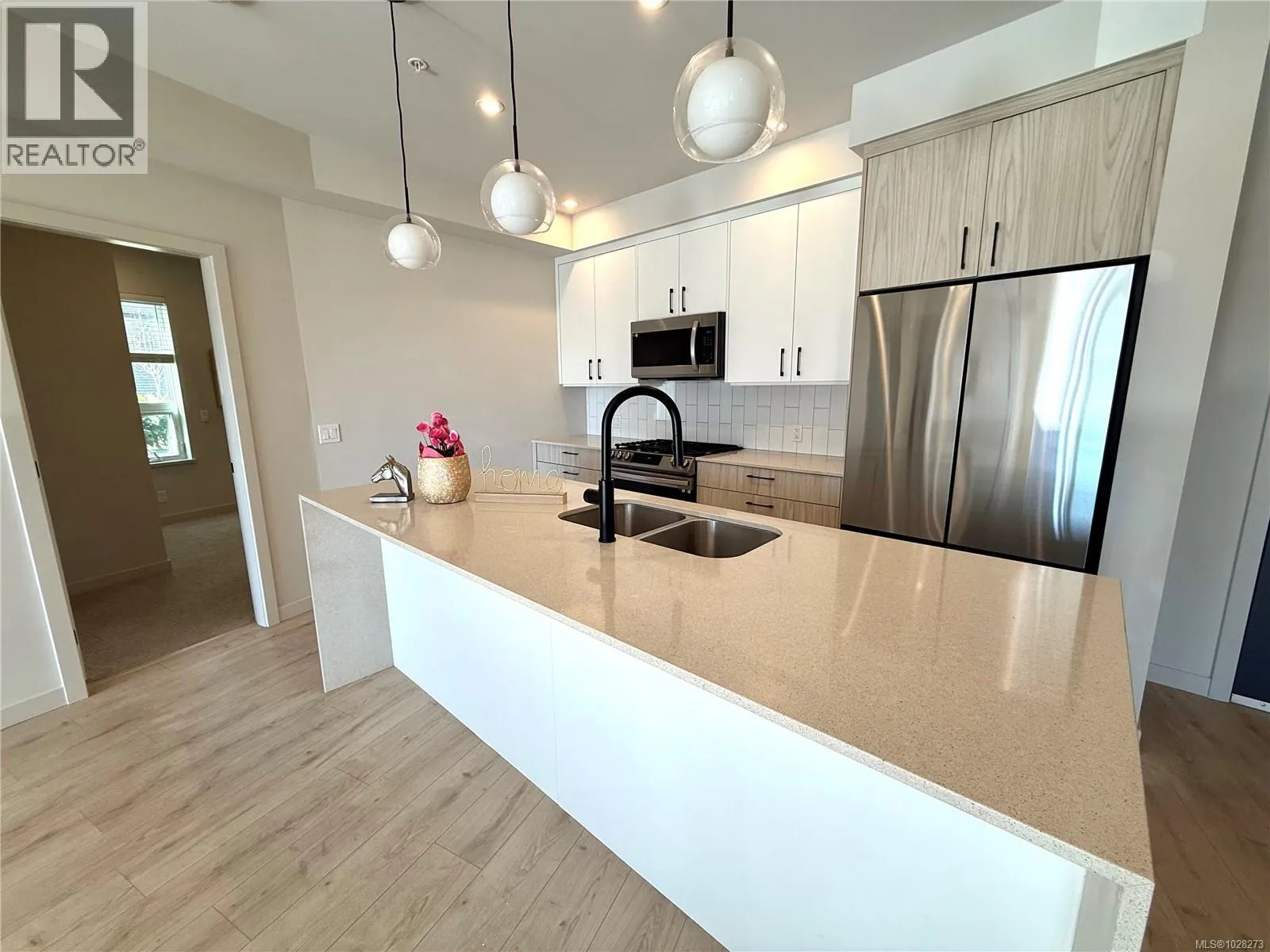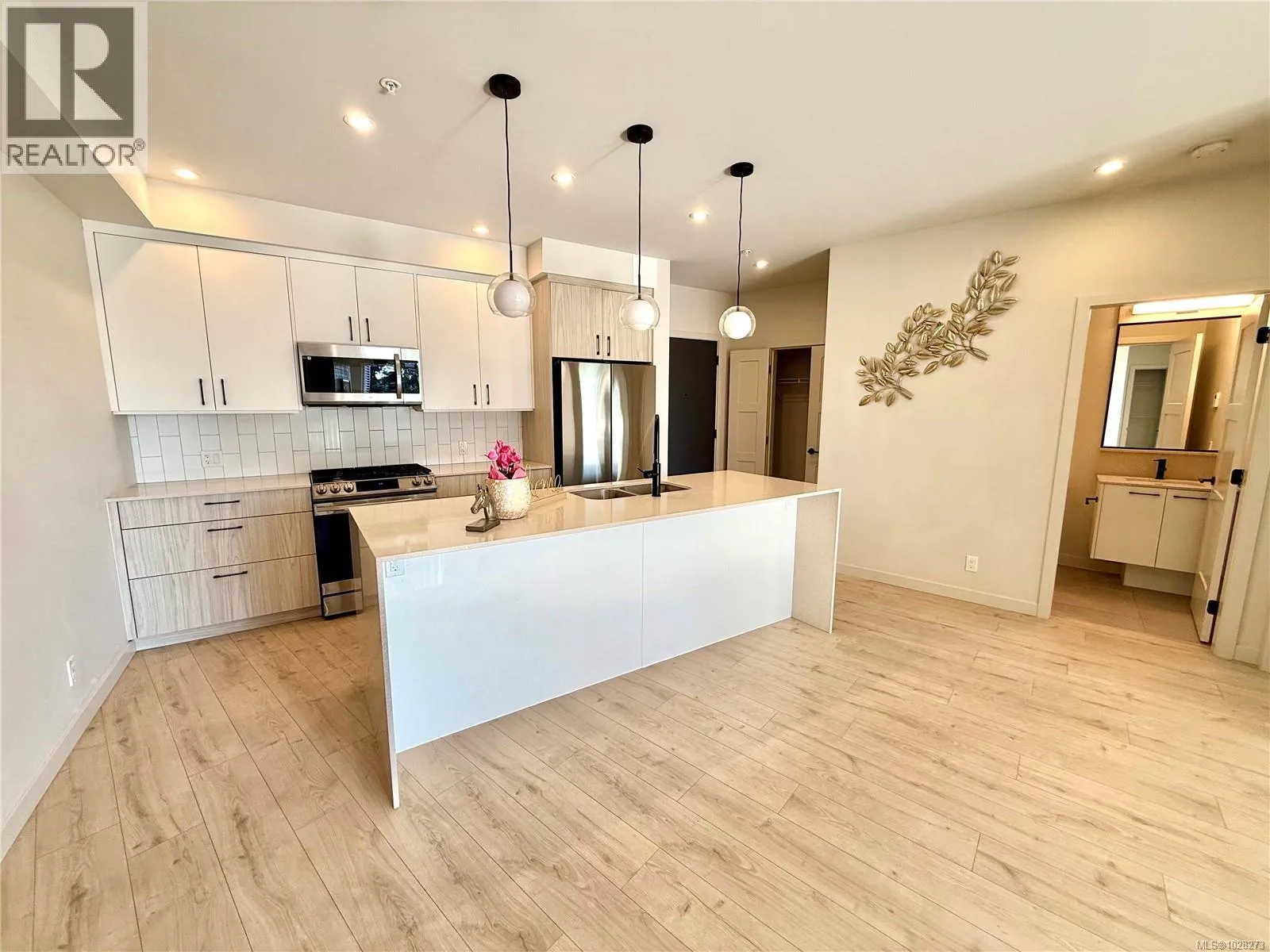 A work of art home looks like brand newâno GST! Located in the heart of Langford in Greater Victoria, in a convenient area close to Costco. The building offers great amenities including a clubhouse, shared rooftop patio, and a 1,000 SF gymâperfect for gatherings with family and friends. Includes 2 parking stalls and a storage locker. A standout feature of this home is its two entrances. Enter through the main entrance and walk directly to the end of the hallwayâno elevator or stairs needed. Or use the convenient side door located right to the unit, offering direct access without passing other residences. The waterfall kitchen island and spacious balcony are sure to impress. Ductless split heat pumps are installed in all bedrooms and the living room, with the strata fee covering their cost. A stunning electric fireplace adds a luxurious finishing touch to this exceptional homeâtruly a happy place to live.. Measurements and listing info are approximate, Buyer to verify if important. Luke Chen, MBA, P. Eng. (Non-practicing), PMP, 778-677-9557 AgentLukeChen@Gmail.com (id:27476)