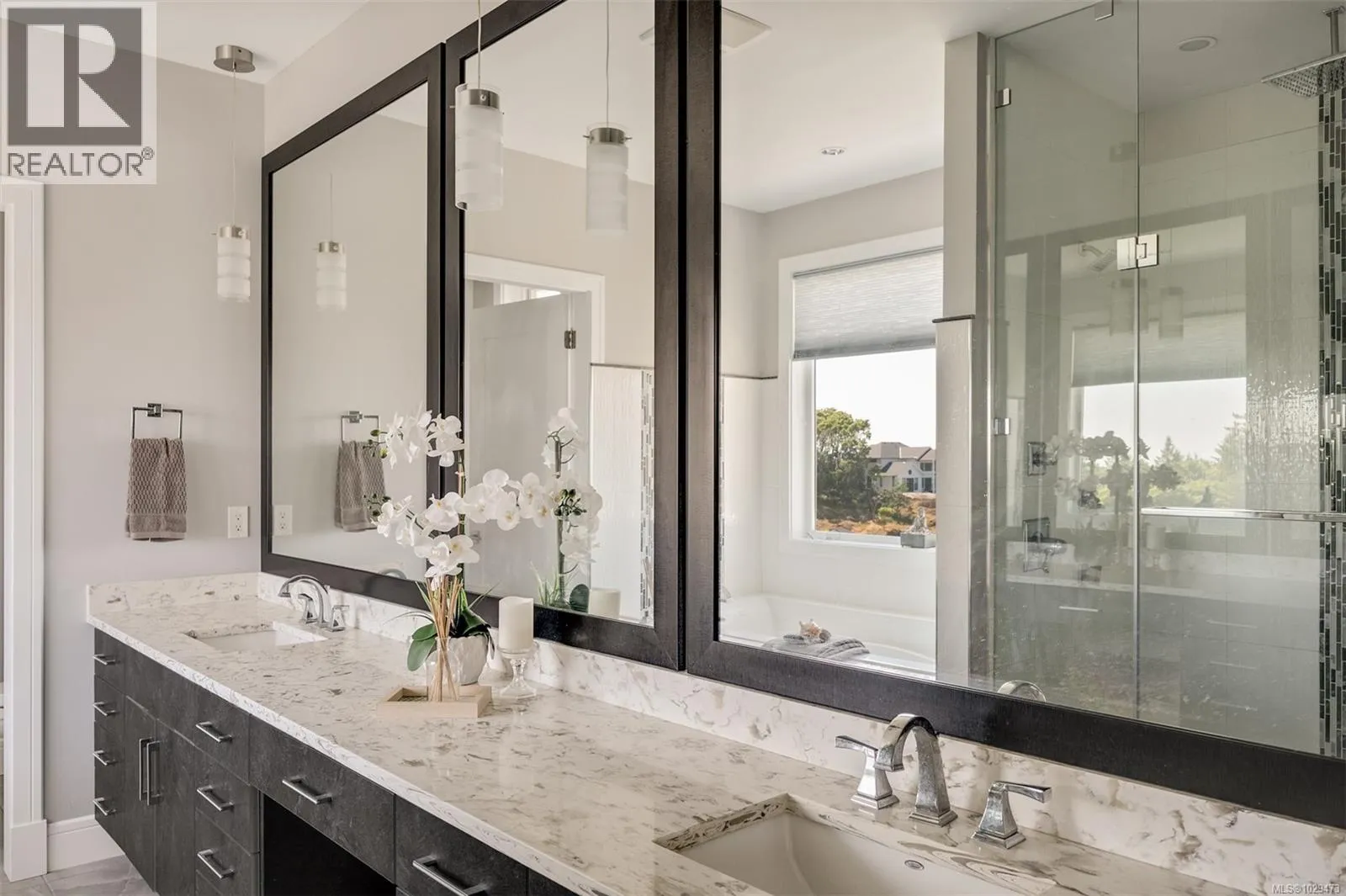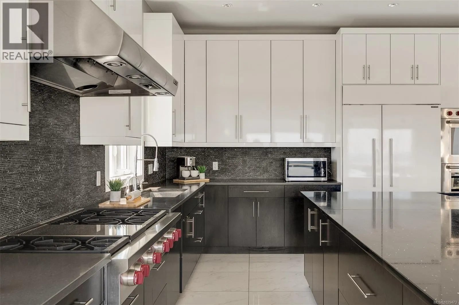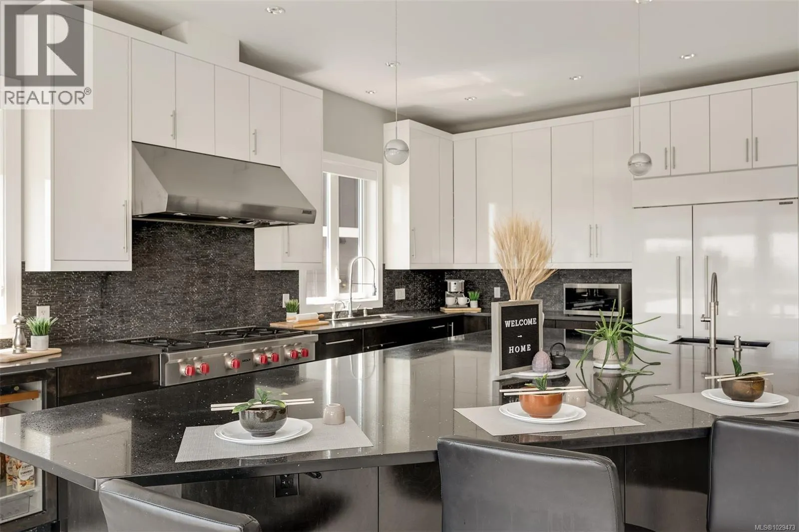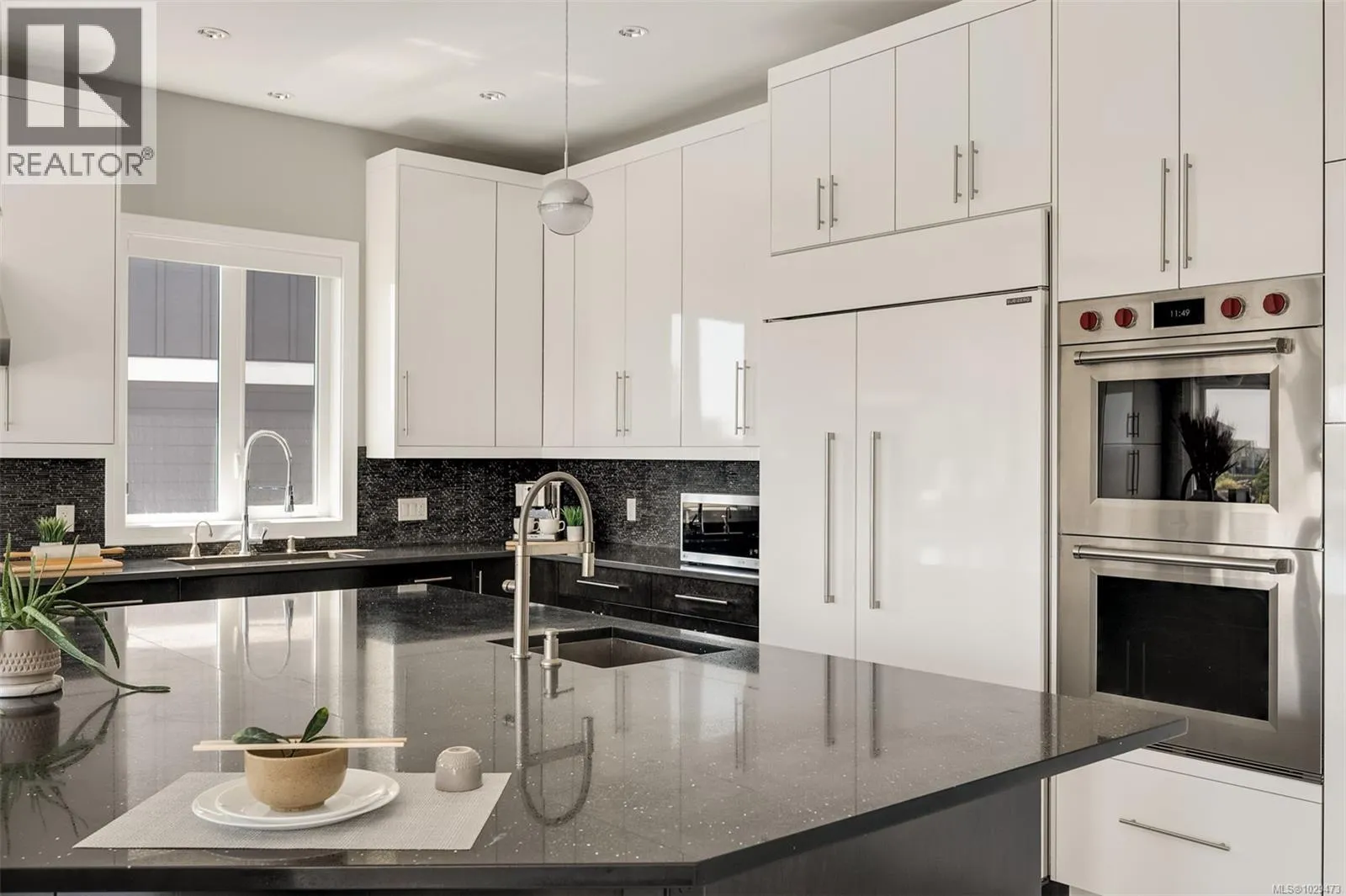 Welcome to 2279 Nicklaus Drive, a truly remarkable custom-built luxury residence perched on the prestigious Nicklaus Ridge, offering 7 bedrooms and 6 bathrooms across more than 5,300 sqft of thoughtfully designed living space. From the moment you enter, the grand and inviting foyer sets the tone, leading into an expansive open-concept layout that captures stunning panoramic views from every principal room. The chef-inspired kitchen is designed for both function and style, featuring an oversized island, premium Wolf and Sub-Zero appliances, and a dedicated dining area complete with a built-in buffetâperfect for hosting and everyday living alike. Step outside to the impressive rear patio, where indoor and outdoor spaces blend effortlessly, creating an ideal setting for entertaining while enjoying breathtaking views of Downtown Victoria and the Olympic Mountains. The upper level offers five well-appointed bedrooms, highlighted by a spacious primary retreat with its own private patio, a luxurious 5-piece ensuite, and a generous walk-in closet. The lower level is equally impressive, featuring a media room, custom built-in bar, guest bedroom with a 3-piece bathroom, and convenient walk-out access to a covered patio and beautifully landscaped yard. Complete with a fully self-contained legal 1 BED SUITE, this home provides both flexibility and exceptional value. Located just steps from Bear Mountain Resort, minutes to the amenities of downtown Langford, and surrounded by world-class hiking, golf, and outdoor recreation, this is West Coast living at its finest. (id:27476)