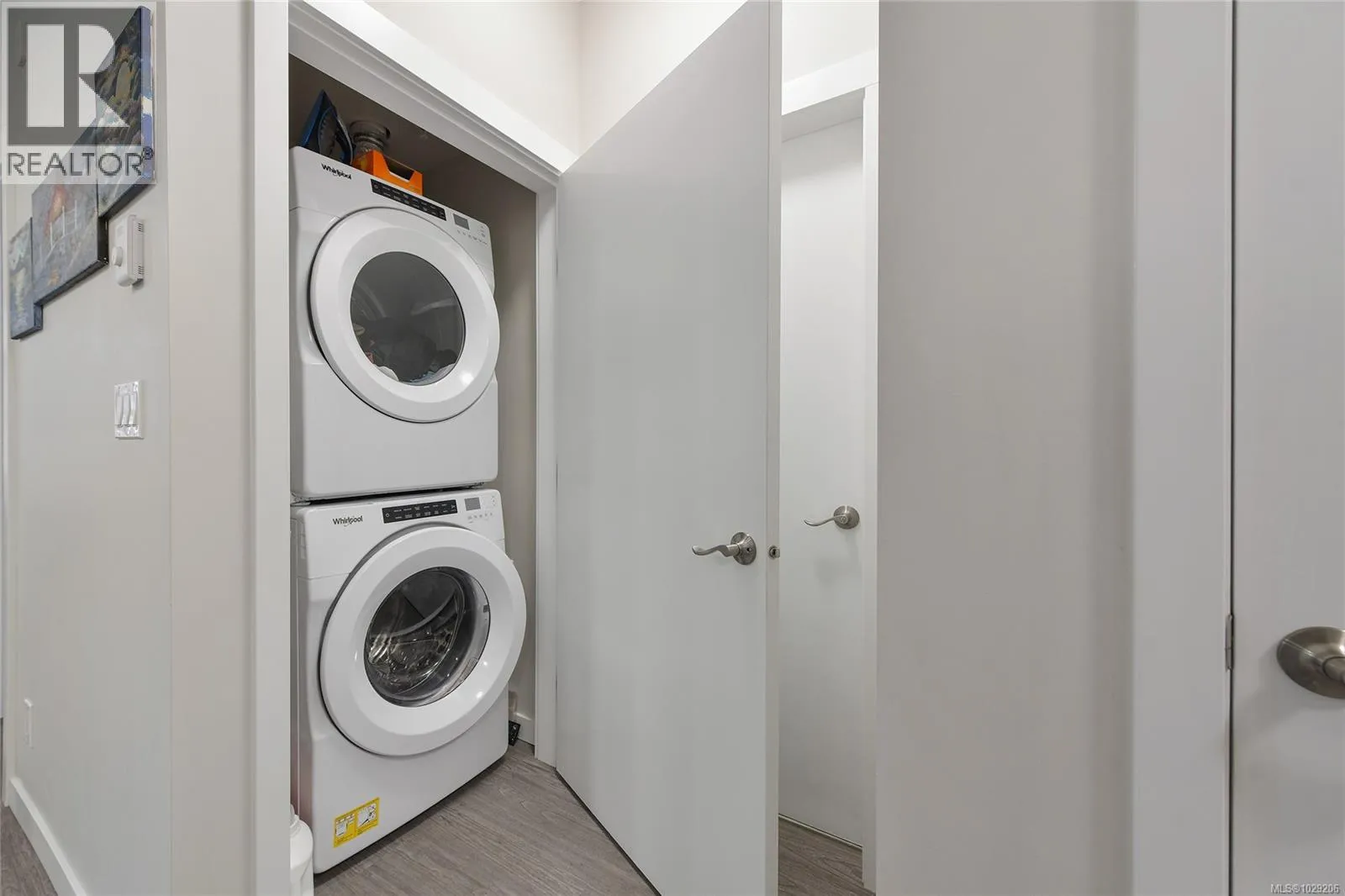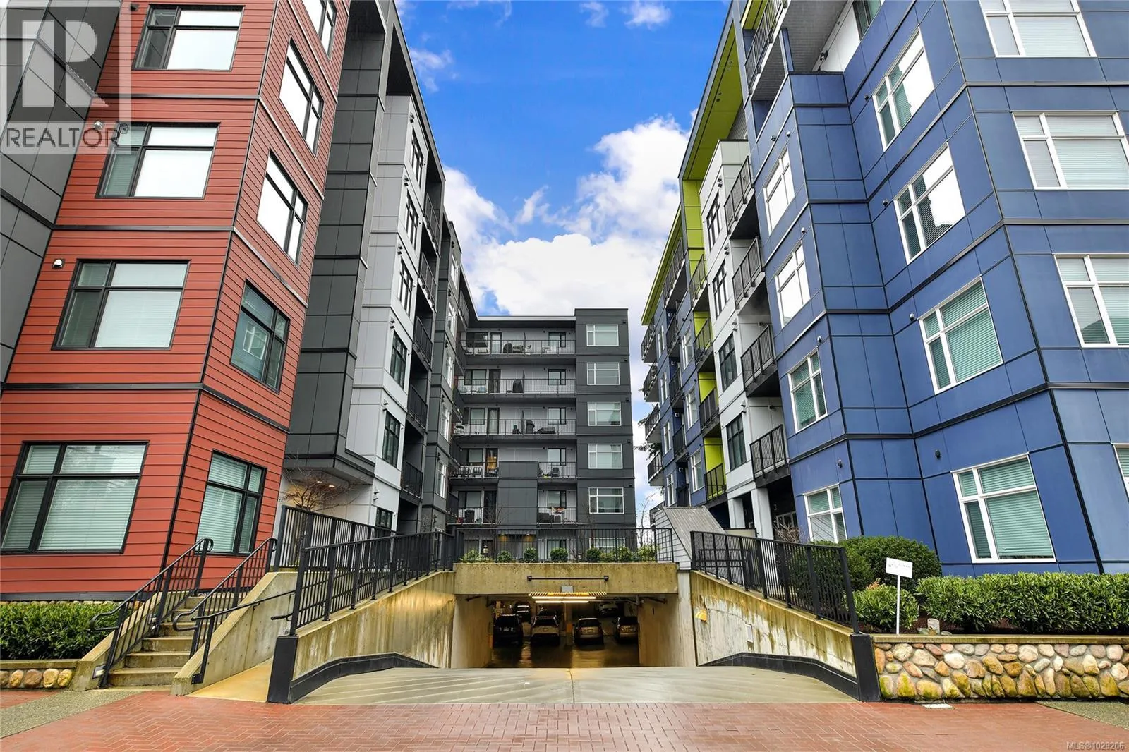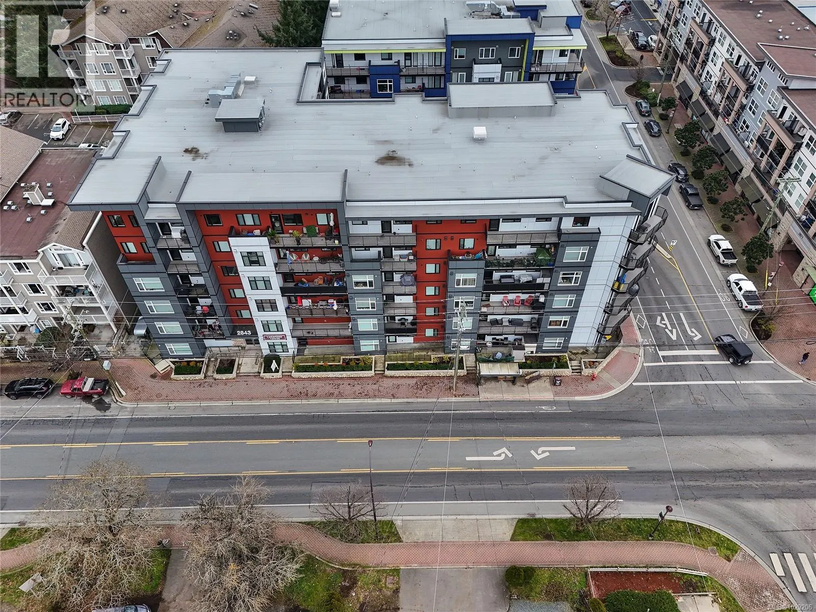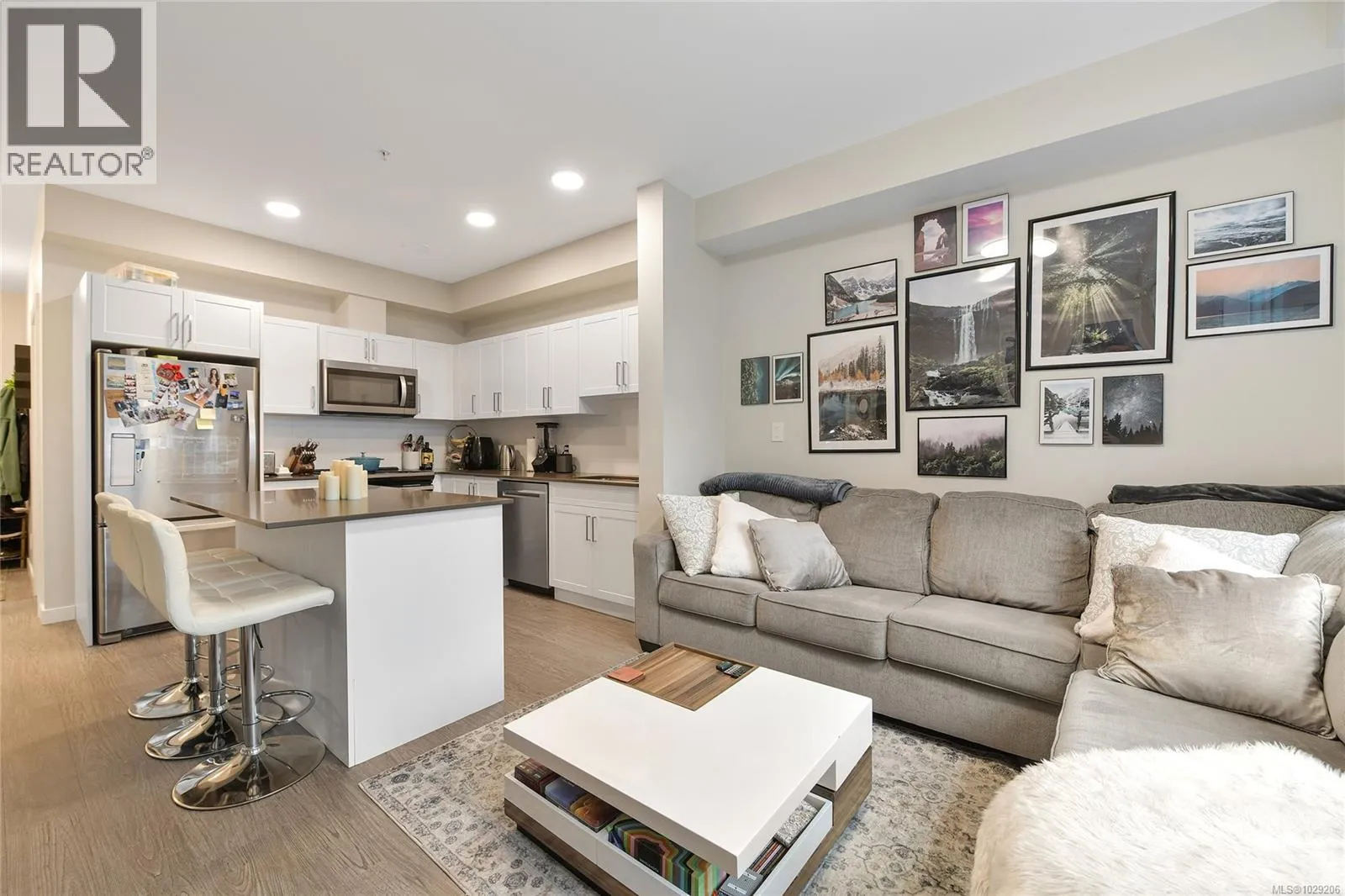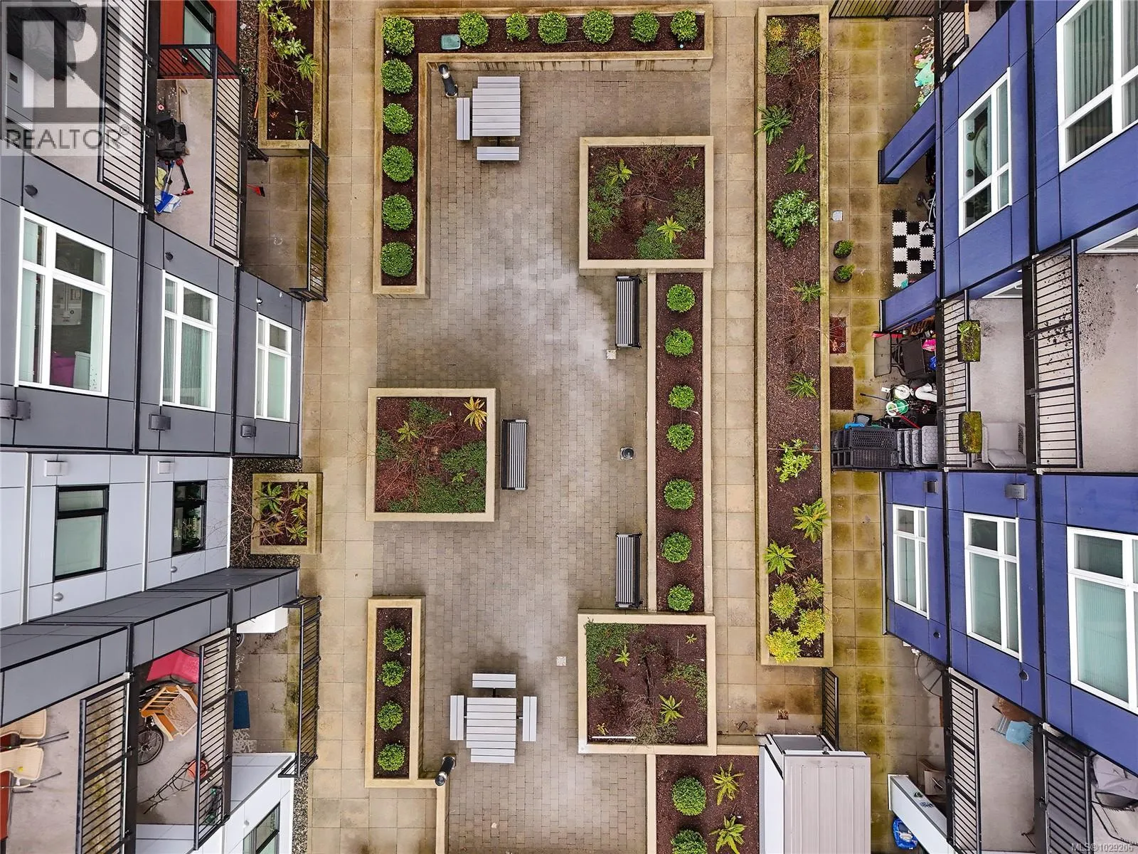 CORNER UNIT OVERLOOKING THE COURTYARD! Welcome to this tastefully designed condo with a functional floor plan. This bright unit features sleek stainless steel appliances, large kitchen island with built-in storage plus plenty of counter space for convenience when cooking, hosting, and everyday use, while the open-concept layout flows seamlessly into the living area for easy entertaining or relaxing at home. The unit is equipped with a 4-piece bathroom including a tub-shower combination and in-suite washer and dryer. Step outside to your spacious covered deck, perfect for year-round enjoyment. The Langford Tower building is conveniently located in the City of Langford close to everything the Westshore lifestyle has to offer including shops, dining, the Galloping Goose Trail, transit, hikes, activities and all major amenities! Book your appointment now! (id:27476)