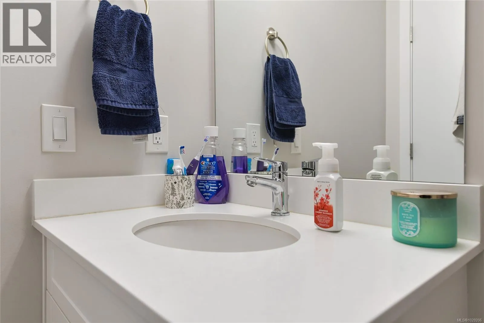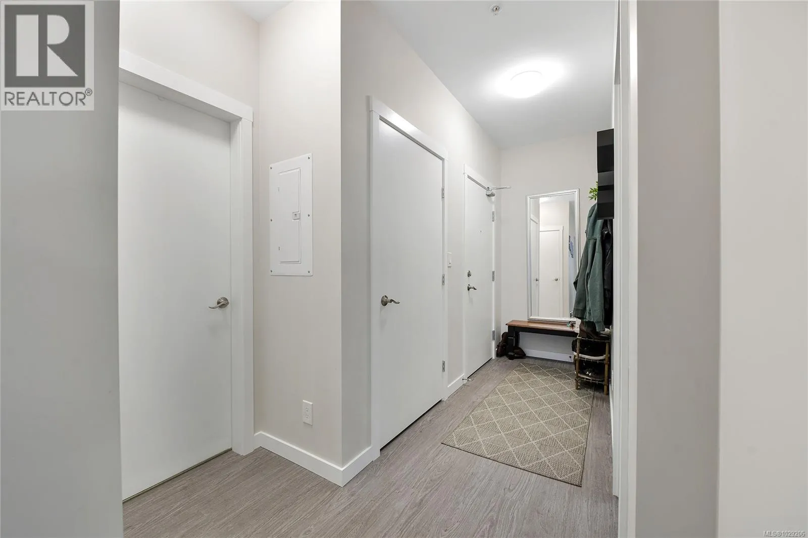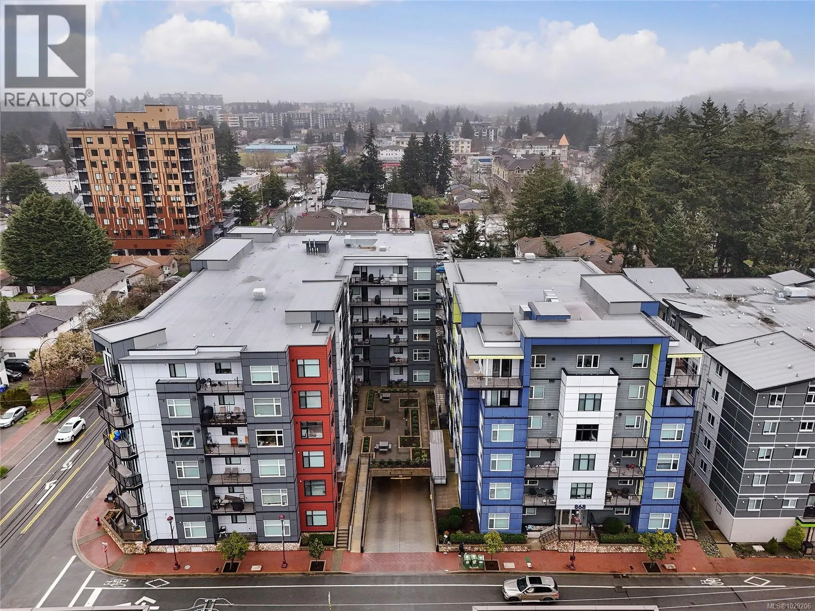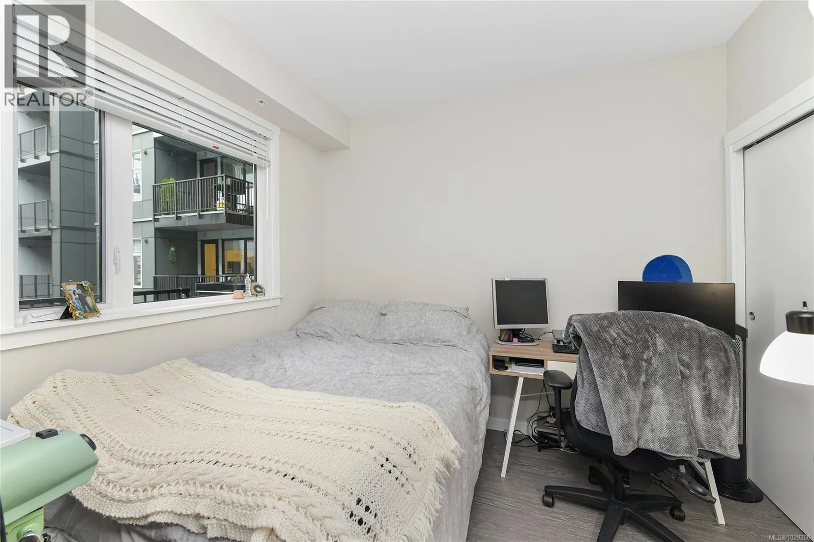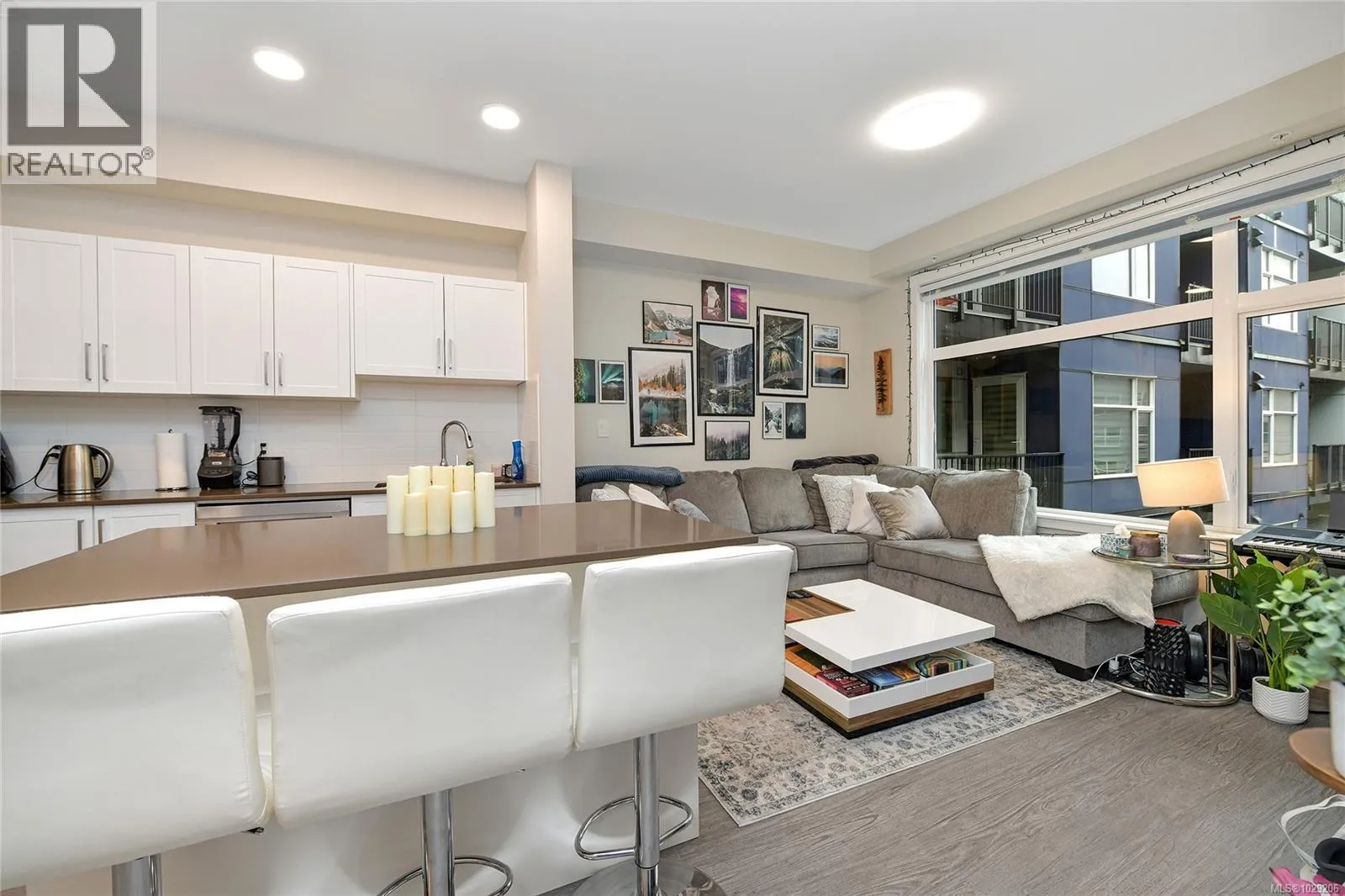 CORNER UNIT OVERLOOKING THE COURTYARD! Welcome to this tastefully designed condo with a functional floor plan. This bright unit features sleek stainless steel appliances, large kitchen island with built-in storage plus plenty of counter space for convenience when cooking, hosting, and everyday use, while the open-concept layout flows seamlessly into the living area for easy entertaining or relaxing at home. The unit is equipped with a 4-piece bathroom including a tub-shower combination and in-suite washer and dryer. Step outside to your spacious covered deck, perfect for year-round enjoyment. The Langford Tower building is conveniently located in the City of Langford close to everything the Westshore lifestyle has to offer including shops, dining, the Galloping Goose Trail, transit, hikes, activities and all major amenities! Book your appointment now! (id:27476)