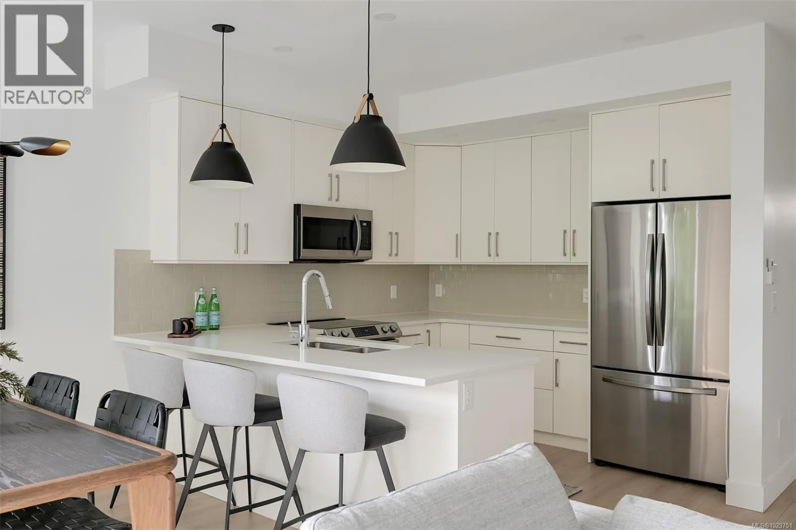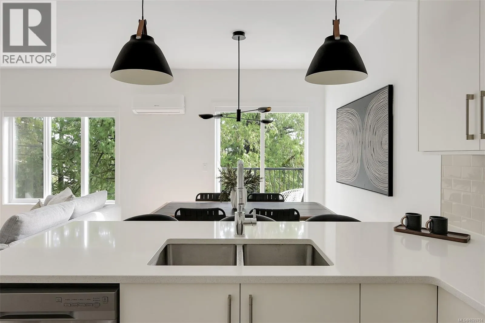 OPEN HOUSE Saturday, April 4th 11:00am-1:00pm | Turnkey home tucked away on a quiet cul-de-sac near Bear Mountain, surrounded by lush green space, trails, and beautiful natural outlooks. This stylish contemporary residence features quartz countertops in the kitchen and bathrooms, a full tile backsplash, stainless steel appliances, and soft-close cabinetry throughout. Enjoy a cozy gas fireplace, sleek roller-blind window coverings, an efficient ductless heat pump, and 9-foot ceilings with vaulted accents that enhance the sense of space. The fully finished and heated attached garage adds everyday convenience, along with a gas BBQ hookup and a fully automated in-ground irrigation system. The lower level offers a spacious family or games room with the added benefit of a full bathroom, plus a generous storage area beneath the home. Built Green Gold certified for improved efficiency and potential savings. (id:27476)
