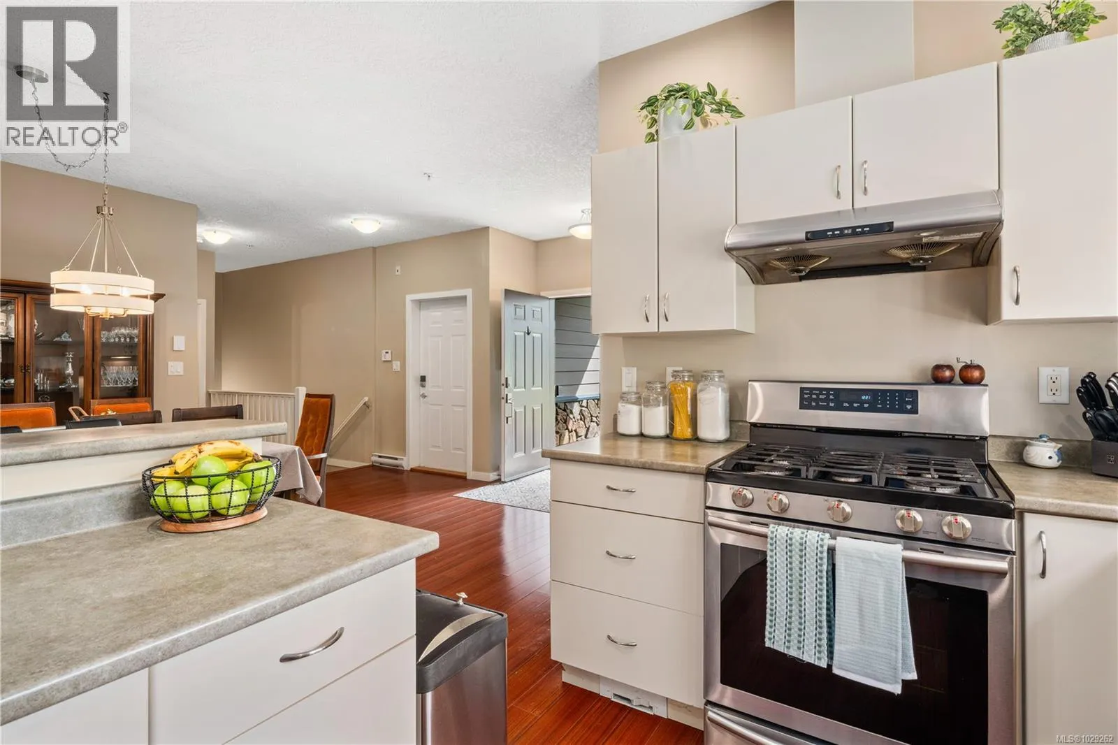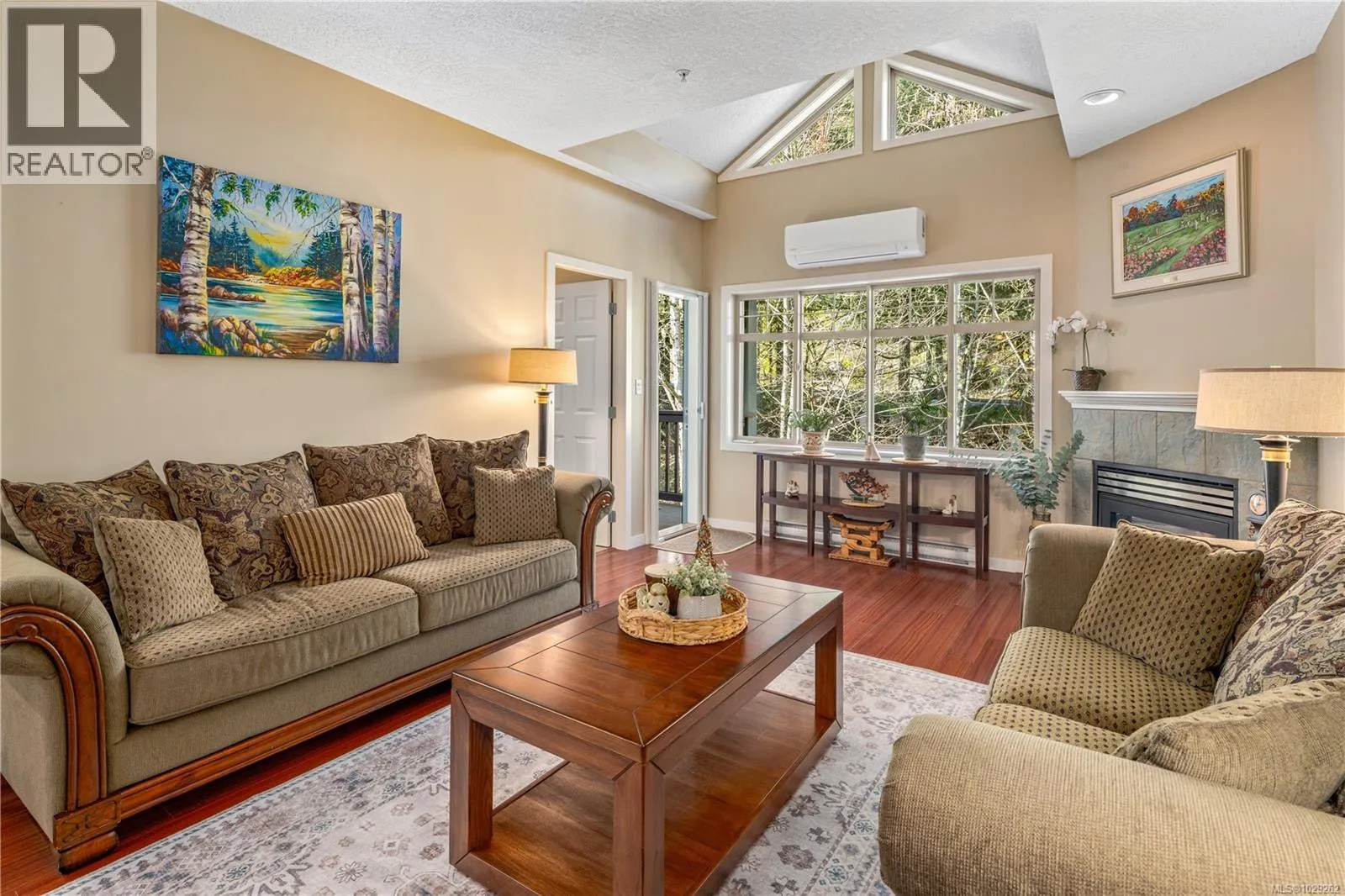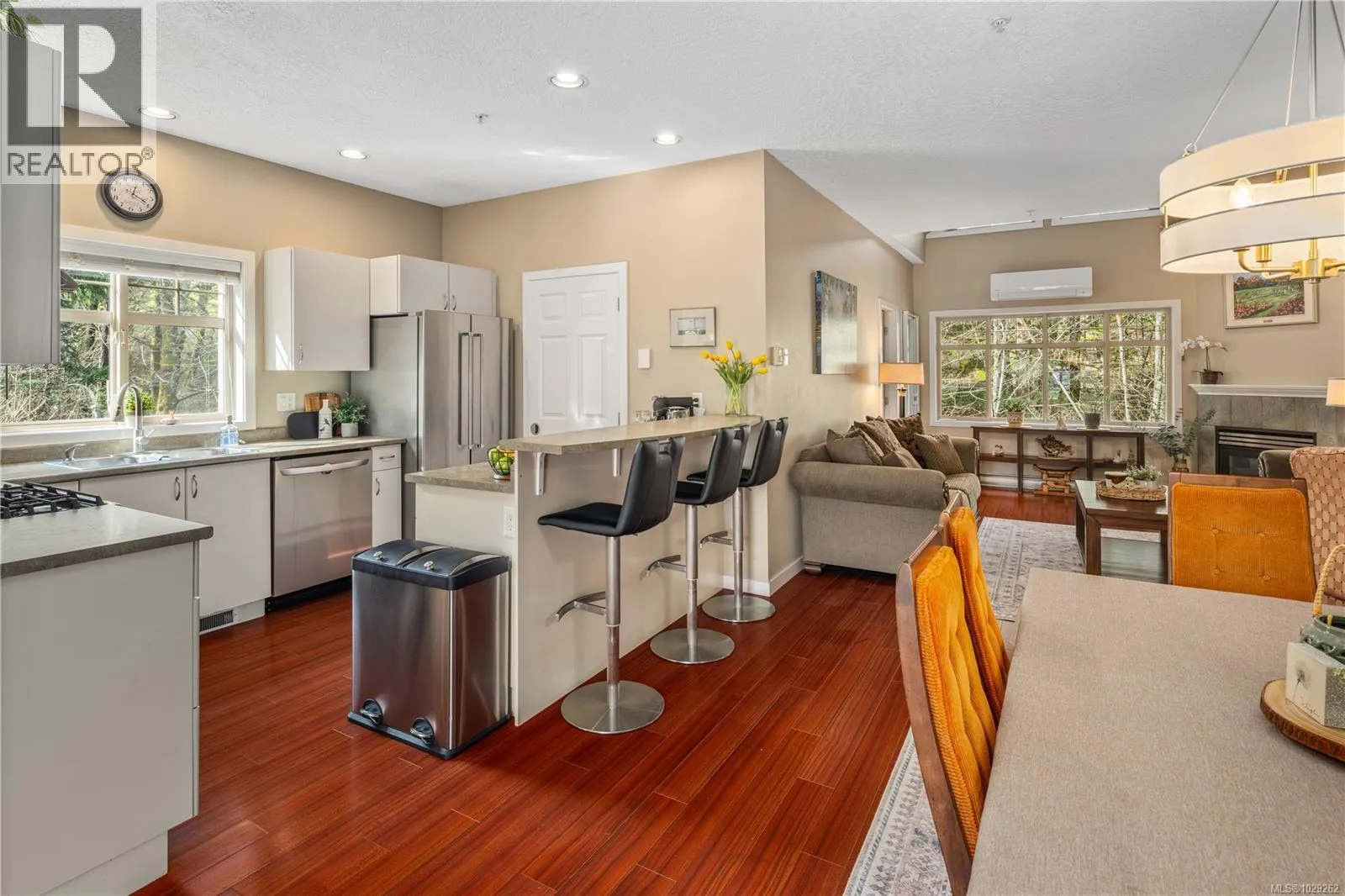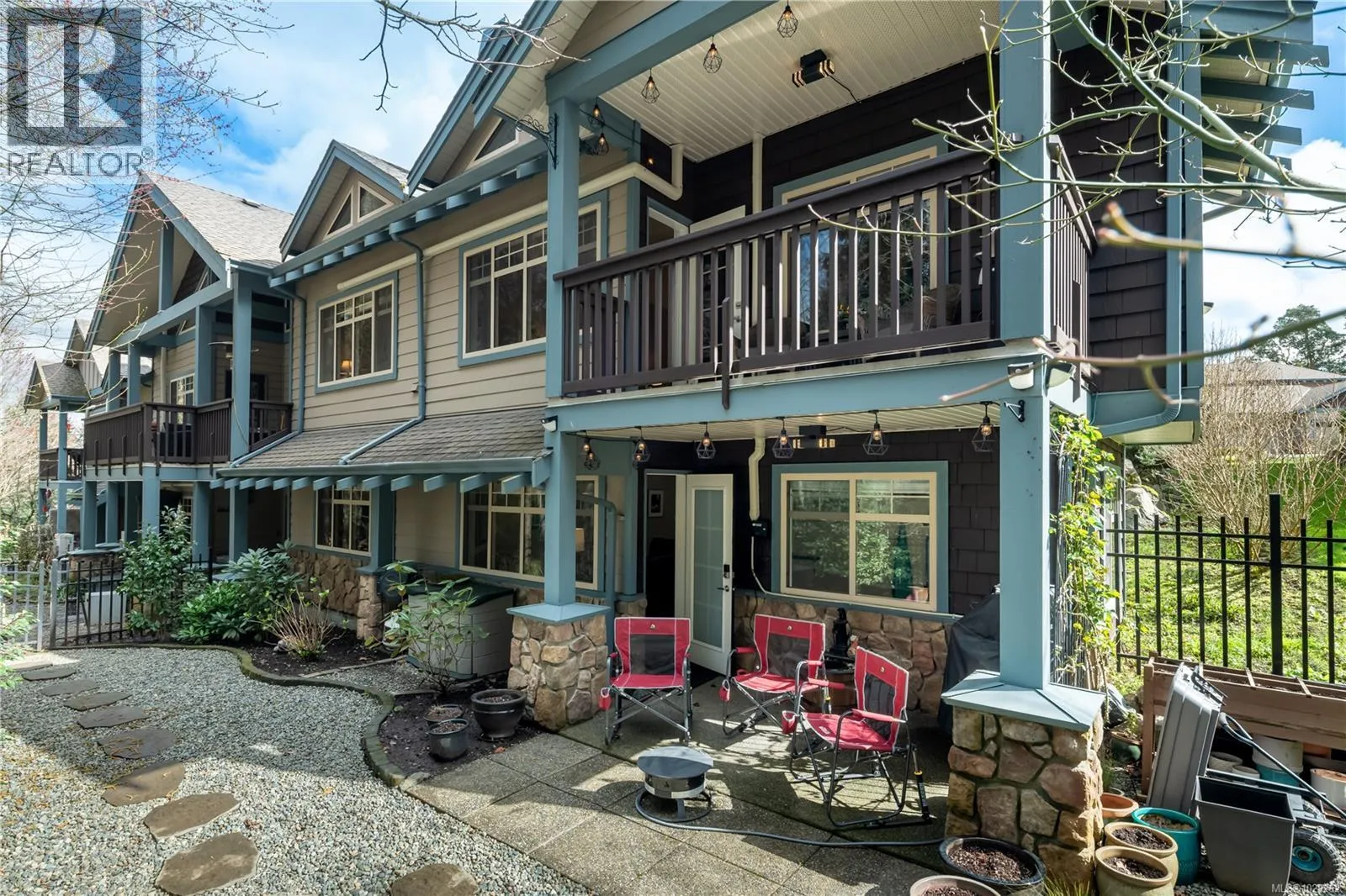 Bright, spacious and open, this fantastic end-unit townhouse, in one of Bear Mountainâs most desirable neighbourhoods, is just moments from the golf course and resort. Just under 2,500 sq ft, this open concept plan features living room with vaulted ceilings, gas fireplace and deck that overlooks the private backyard. Kitchen with newer stainless appliances, gas range, peninsula/breakfast bar, walk in pantry plus formal dining area. Large main floor primary suite with 4 pc bath and walk-in closet plus 2nd bdrm/home office. Down youâll find a games/family rm, exercise area, and 2 additional bdrms (4th has no closet) perfect for teens. Walk-out access to patio and private yard to enjoy summer afternoons. Bonus heat pump offers year round comfort. Double garage provides parking and room for storage. 2 pets permitted. This is a quiet, well kept strata, close to walking trails, schools, and amenities. (id:27476)