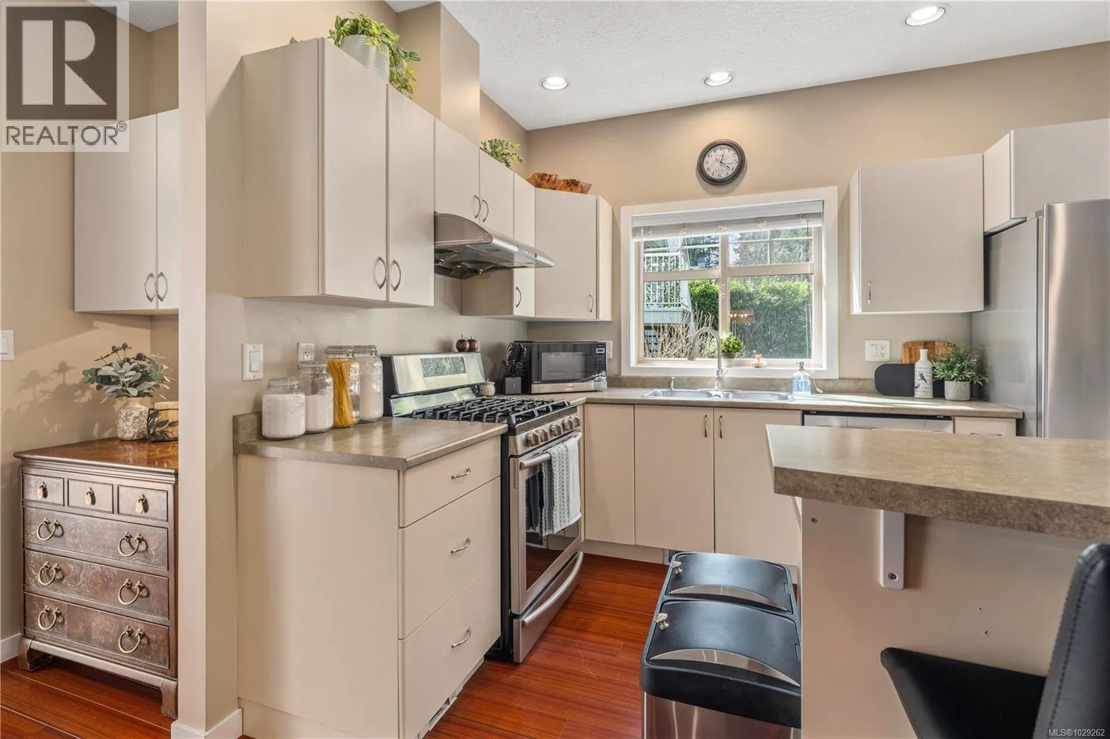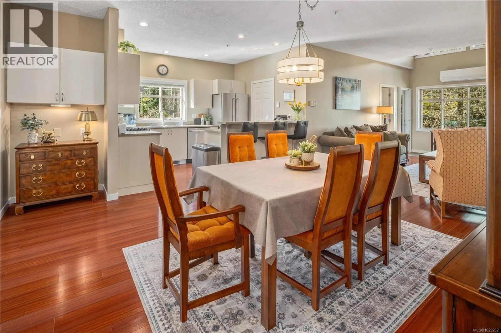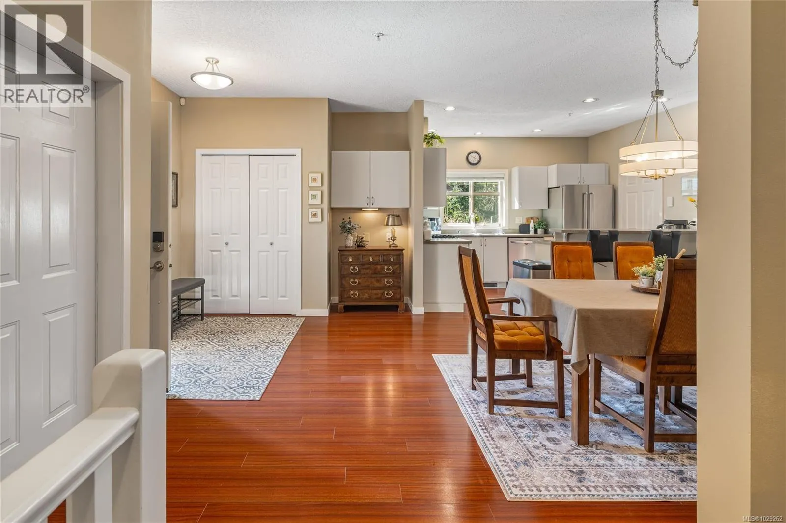 Bright, spacious and open, this fantastic end-unit townhouse, in one of Bear Mountainâs most desirable neighbourhoods, is just moments from the golf course and resort. Just under 2,500 sq ft, this open concept plan features living room with vaulted ceilings, gas fireplace and deck that overlooks the private backyard. Kitchen with newer stainless appliances, gas range, peninsula/breakfast bar, walk in pantry plus formal dining area. Large main floor primary suite with 4 pc bath and walk-in closet plus 2nd bdrm/home office. Down youâll find a games/family rm, exercise area, and 2 additional bdrms (4th has no closet) perfect for teens. Walk-out access to patio and private yard to enjoy summer afternoons. Bonus heat pump offers year round comfort. Double garage provides parking and room for storage. 2 pets permitted. This is a quiet, well kept strata, close to walking trails, schools, and amenities. (id:27476)