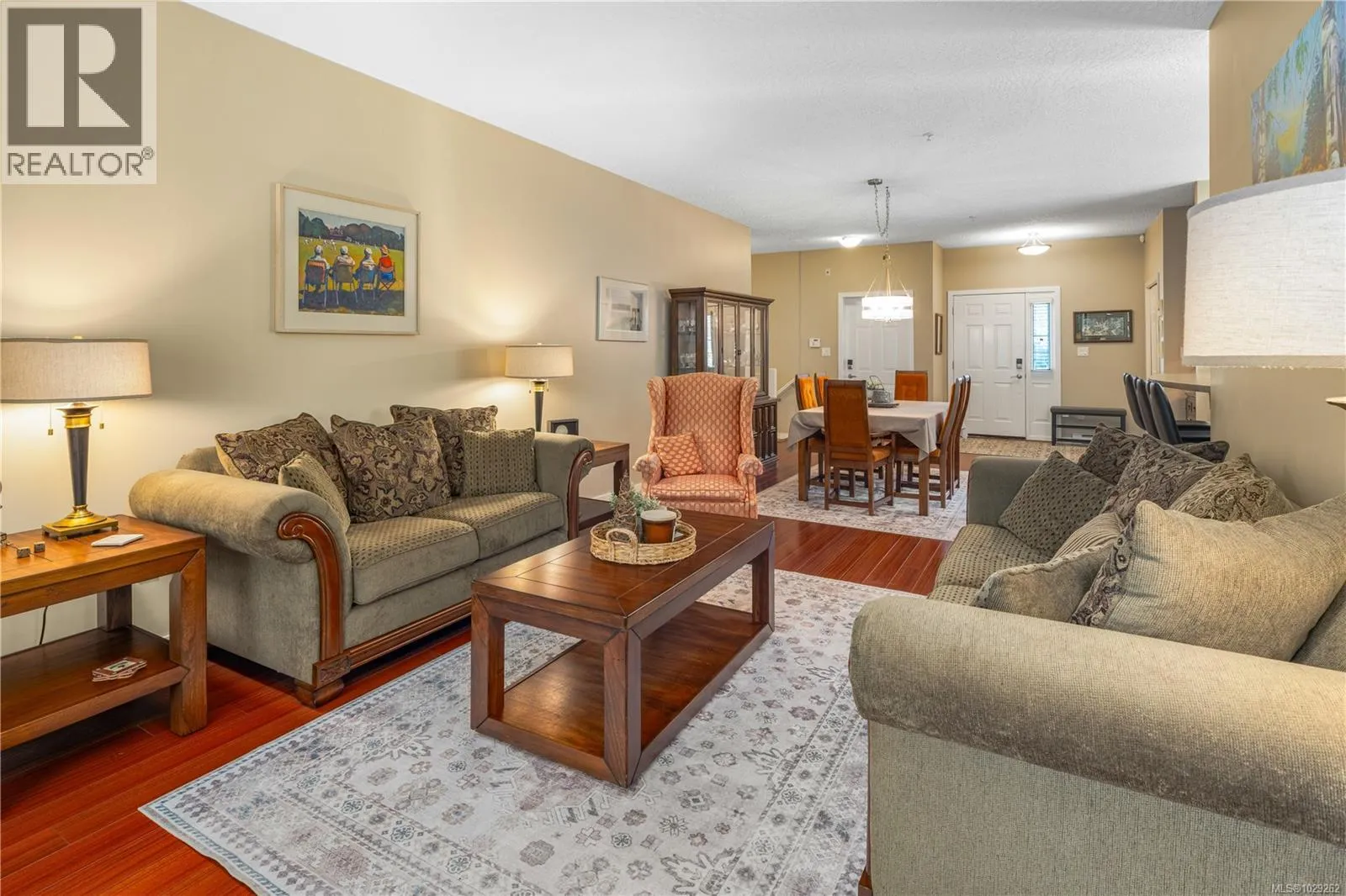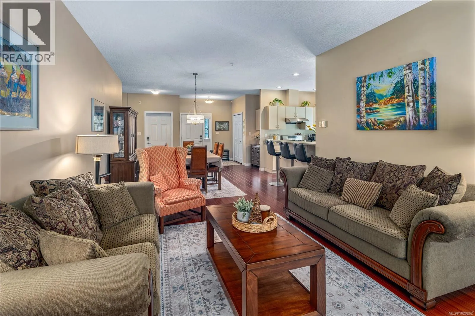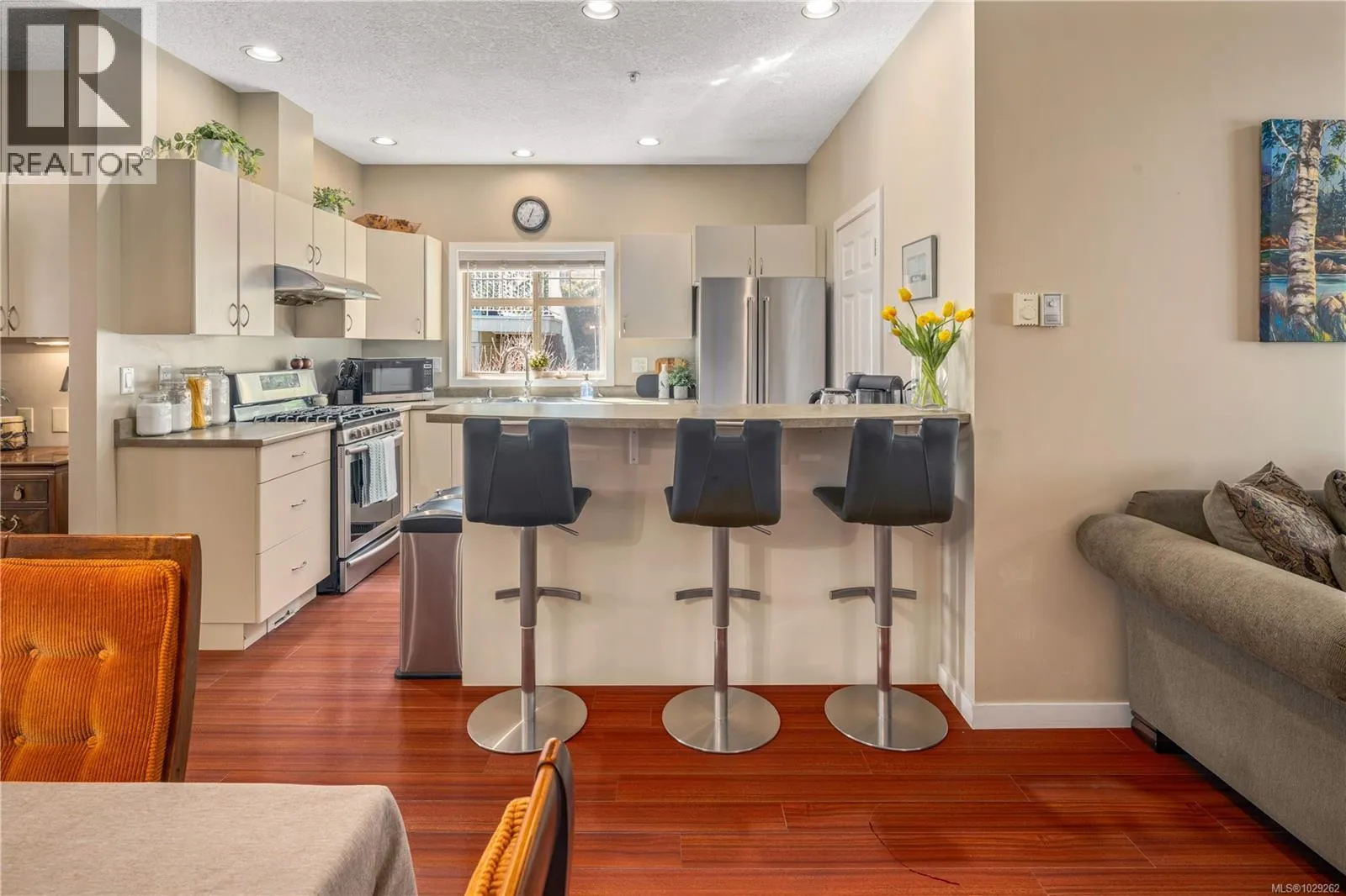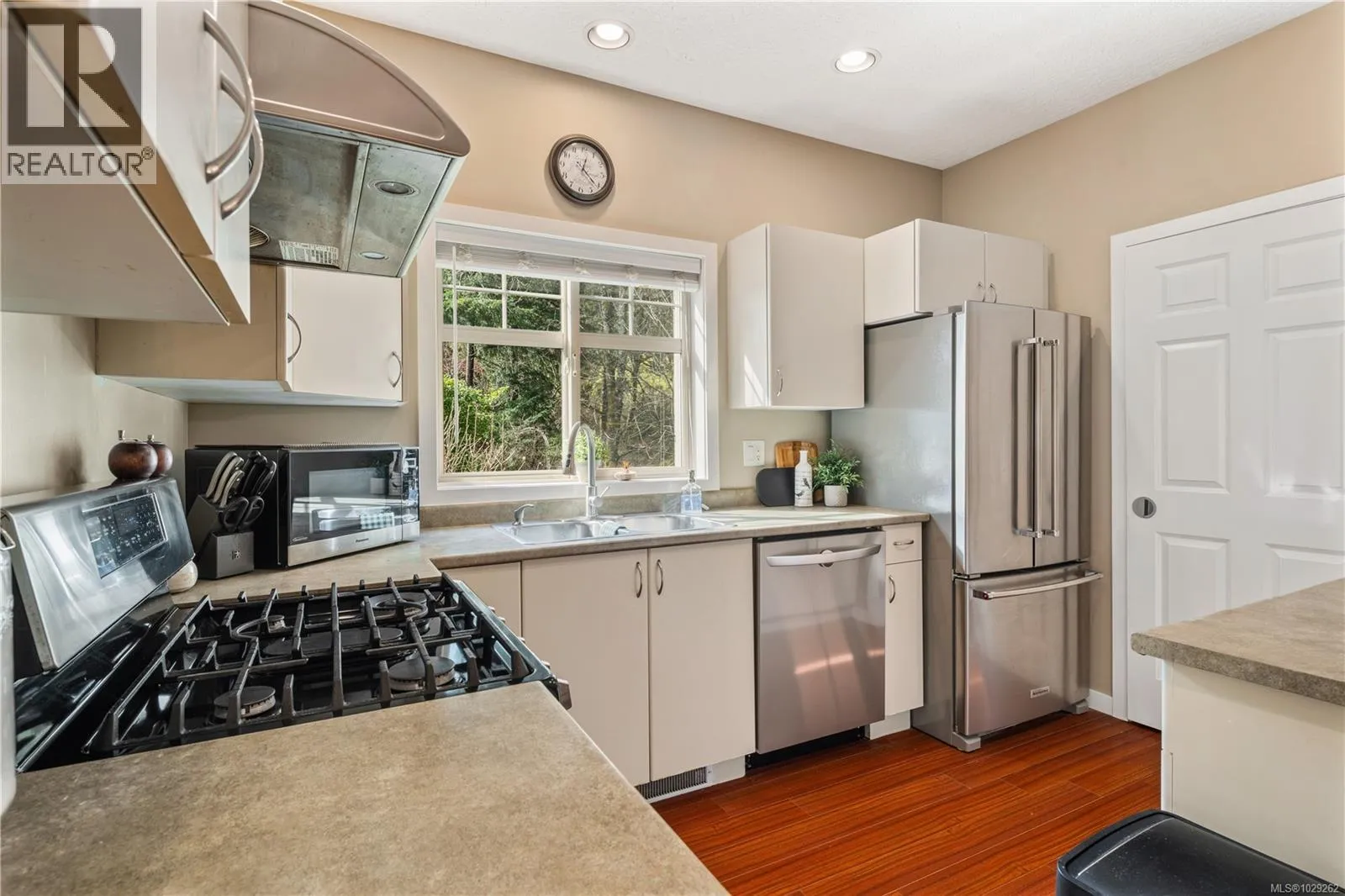 Bright, spacious and open, this fantastic end-unit townhouse, in one of Bear Mountainâs most desirable neighbourhoods, is just moments from the golf course and resort. Just under 2,500 sq ft, this open concept plan features living room with vaulted ceilings, gas fireplace and deck that overlooks the private backyard. Kitchen with newer stainless appliances, gas range, peninsula/breakfast bar, walk in pantry plus formal dining area. Large main floor primary suite with 4 pc bath and walk-in closet plus 2nd bdrm/home office. Down youâll find a games/family rm, exercise area, and 2 additional bdrms (4th has no closet) perfect for teens. Walk-out access to patio and private yard to enjoy summer afternoons. Bonus heat pump offers year round comfort. Double garage provides parking and room for storage. 2 pets permitted. This is a quiet, well kept strata, close to walking trails, schools, and amenities. (id:27476)