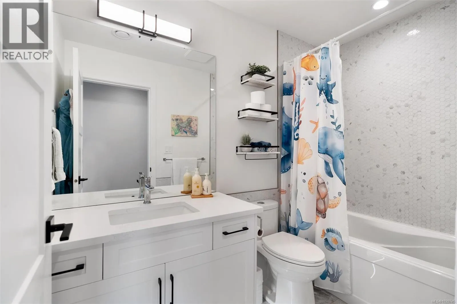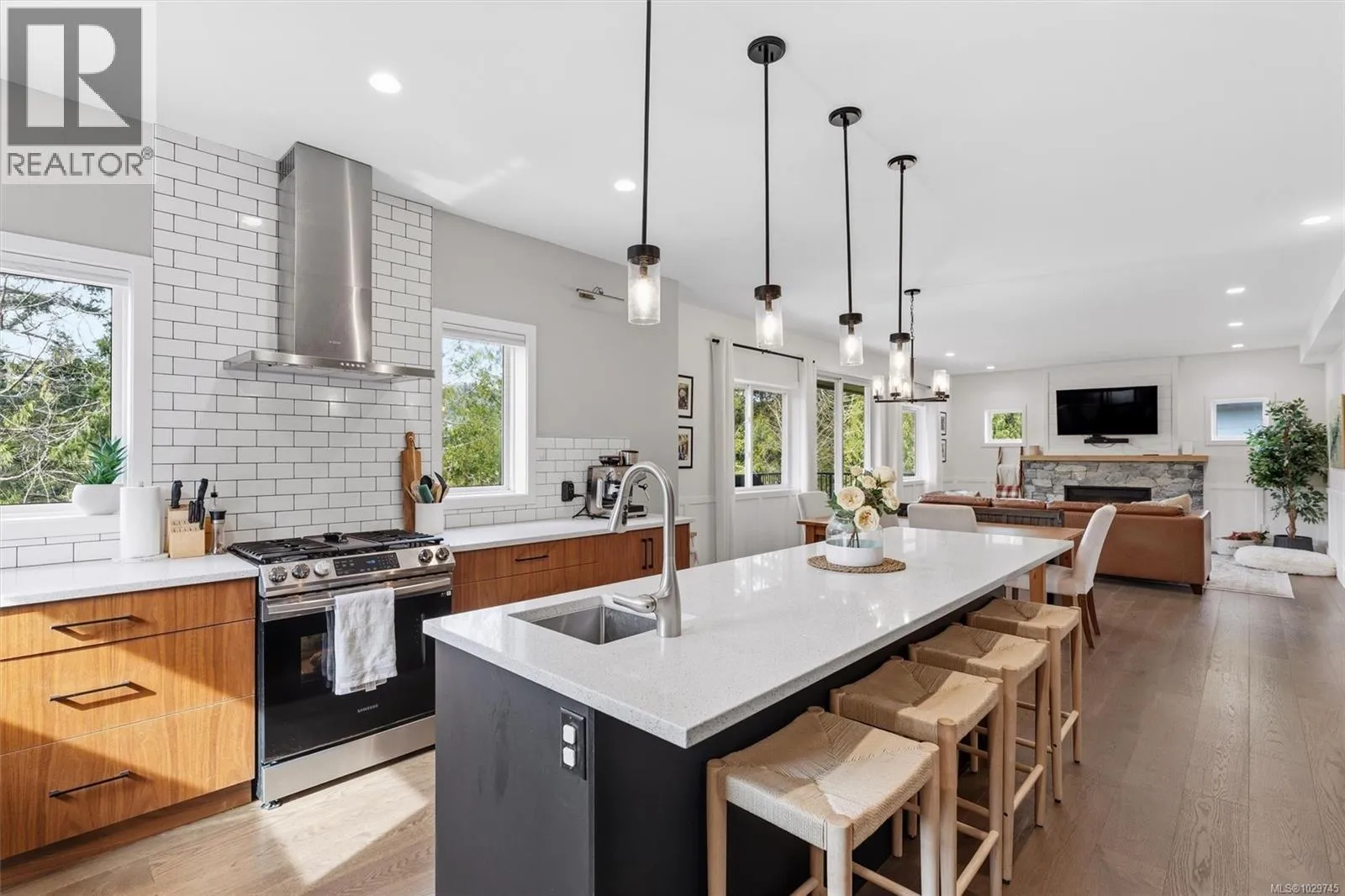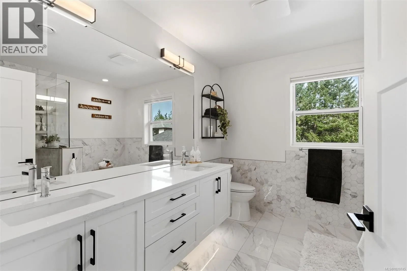 OH This Sat from 10-11:30. Welcome to 945 Blakeon Rd, a 2022 build by Built Green Certified builder Ash Mountain. Tucked at the end of a quiet cul-de-sac and backing onto green space, this home offers privacy while remaining close to the growing Olympic View community. With nearly 2,900 sq ft, this 3 bed + den home features a functional layout and open-concept main living area. The kitchen includes quartz countertops, a gas range, island sink, and ample prep space, flowing into the living/dining area and out to a 315 sq ft patio. Upstairs offers three spacious bedrooms, including a primary suite with a floating vanity, under-cabinet lighting, heated floors, and a walk-in rainfall shower. The lower level includes a rec room with walk-out access and a legal 1-bedroom suite. Heat pump and on-demand hot water included. Located near parks and trails, and just minutes to a new elementary school, Olympic View Golf Course, Royal Bay, and downtown Langford. (id:27476)