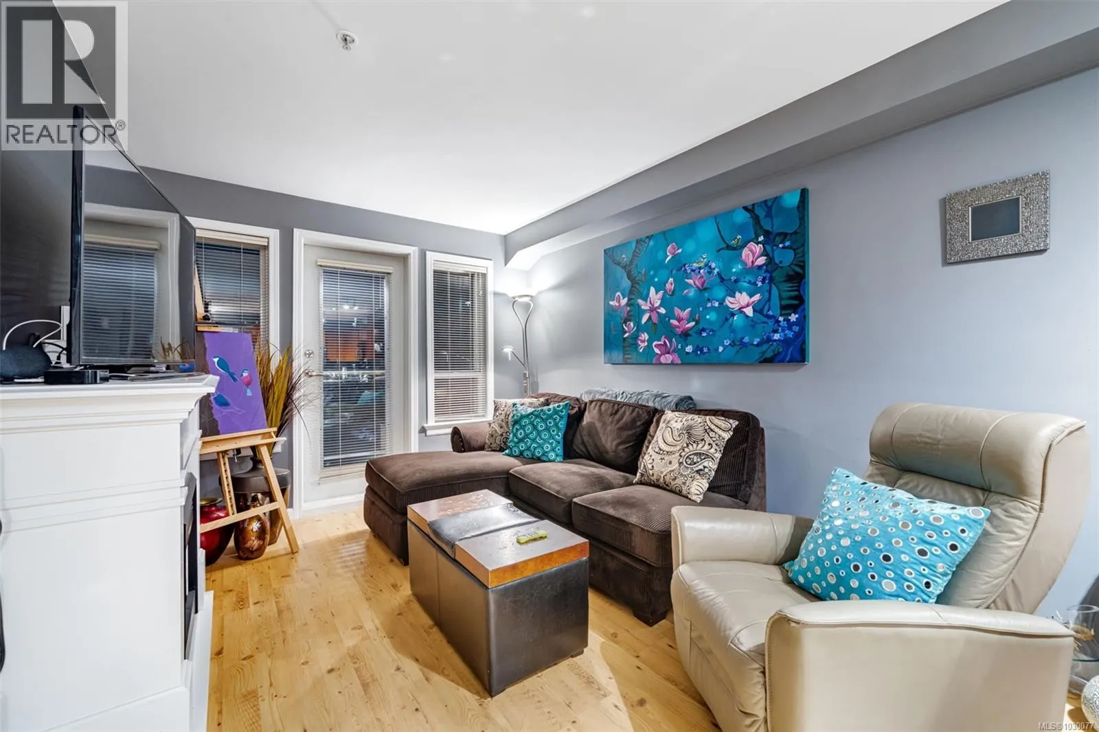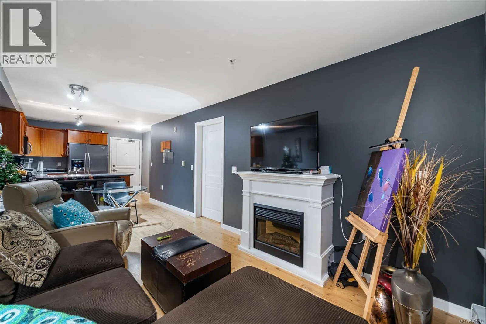 Move in ready and available for quick possession! Exceptional value awaits at McConnell Place West! Set on the quiet side, this bright 1 Bed + Den offers an efficient layout with a spacious primary suite and a versatile den that serves as a second bedroom or dedicated office. The open living area features a cozy electric fireplace and access to a private balcony, perfect for enjoying the morning sun. The kitchen boasts quality stainless steel appliances, an eating bar, and ample in-suite storage. The primary suite features a convenient cheater ensuite with stylish slate floors. Amenities elevate the lifestyle: secure underground parking, storage locker, gym, rec room, and a rooftop balcony. This is a true pet-friendly haven, allowing up to two small dogs, a rare and coveted strata feature! The location is phenomenal: close to Royal Colwood Golf Course and steps to Goldstream Village for shops, restaurants, and groceries, or bike the nearby Galloping Goose Trail. An amenity-rich, smart investment in a prime Langford location! (id:27476)