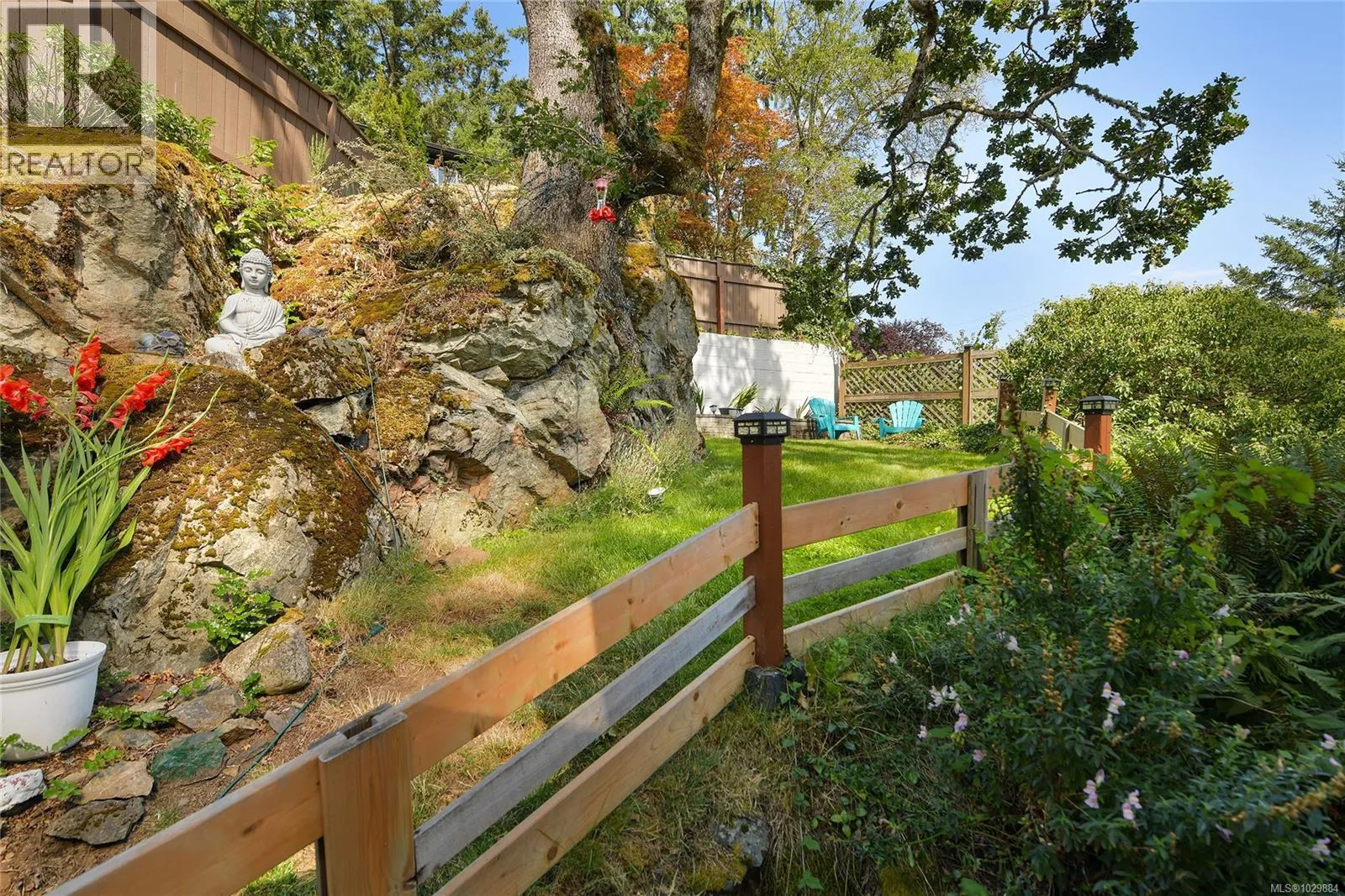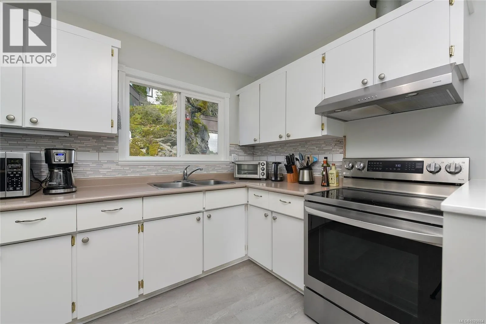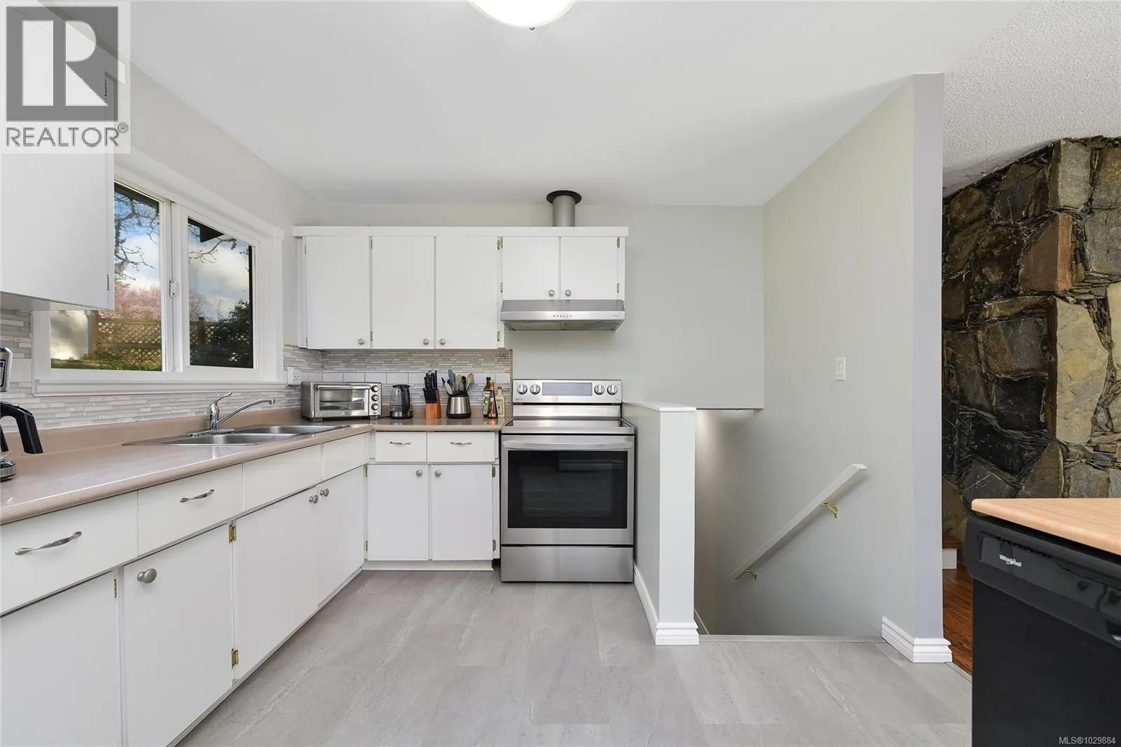 Welcome to this well-maintained 3 bed / 3 bath home in the highly sought-after family neighbourhood of Thetis Heights, tucked away on a quiet no-thru cul-de-sac, perfect for kids to ride bikes & play street hockey in a safe, low-traffic setting. Set on a large 9,147 sq ft private lot, this property offers beautifully terraced landscaping, mature trees & a park-like atmosphere with excellent outdoor living space for relaxing or entertaining. Inside, approx. 1,735 sq ft of living space offers a functional layout that feels both cozy & spacious, featuring a games room & versatile living areas. The home has been thoughtfully updated with flooring, lighting & fixtures throughout, creating a clean, modern feel. Enjoy year-round comfort with an efficient heat pump & A/C, plus electric furnace backup. Additional upgrades include a newer roof (2019), updated bathrooms & a stylish kitchen with stainless steel appliances. Motorized blinds add convenience, while the large crawl space provides ample storage. Garage plus plenty of parking, including RV or boat parking. Minutes to Thetis Lake, schools, trails, creeks & pedestrian bridges, with quick highway access & close to Costco & major amenities. Pride of ownership is evident throughout & priced competitively for a quick sale. (id:27476)