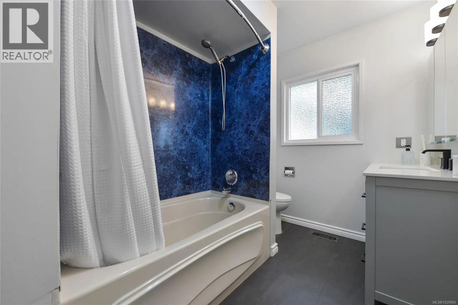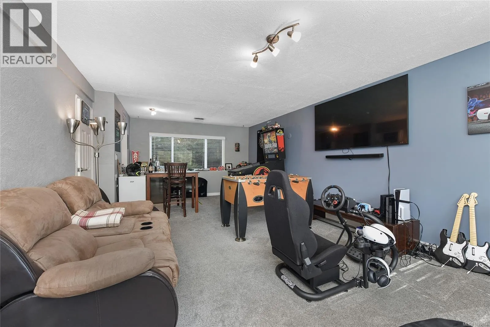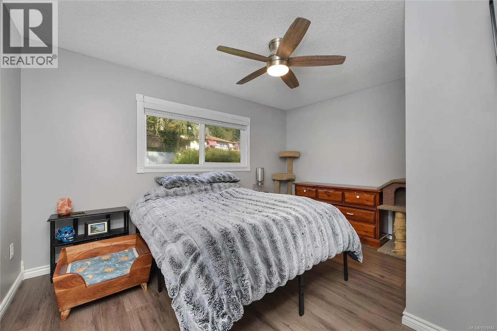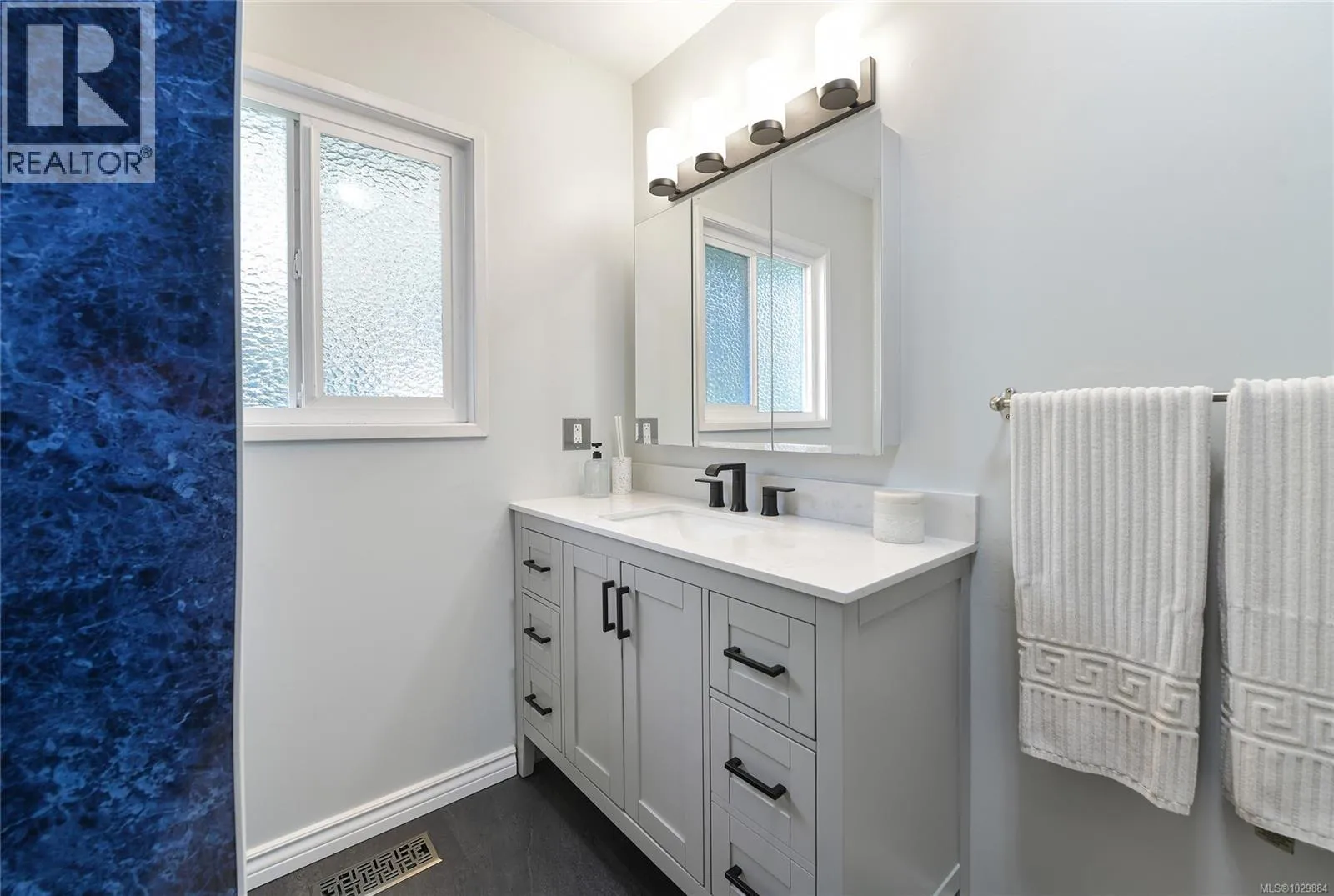 Welcome to this well-maintained 3 bed / 3 bath home in the highly sought-after family neighbourhood of Thetis Heights, tucked away on a quiet no-thru cul-de-sac, perfect for kids to ride bikes & play street hockey in a safe, low-traffic setting. Set on a large 9,147 sq ft private lot, this property offers beautifully terraced landscaping, mature trees & a park-like atmosphere with excellent outdoor living space for relaxing or entertaining. Inside, approx. 1,735 sq ft of living space offers a functional layout that feels both cozy & spacious, featuring a games room & versatile living areas. The home has been thoughtfully updated with flooring, lighting & fixtures throughout, creating a clean, modern feel. Enjoy year-round comfort with an efficient heat pump & A/C, plus electric furnace backup. Additional upgrades include a newer roof (2019), updated bathrooms & a stylish kitchen with stainless steel appliances. Motorized blinds add convenience, while the large crawl space provides ample storage. Garage plus plenty of parking, including RV or boat parking. Minutes to Thetis Lake, schools, trails, creeks & pedestrian bridges, with quick highway access & close to Costco & major amenities. Pride of ownership is evident throughout & priced competitively for a quick sale. (id:27476)