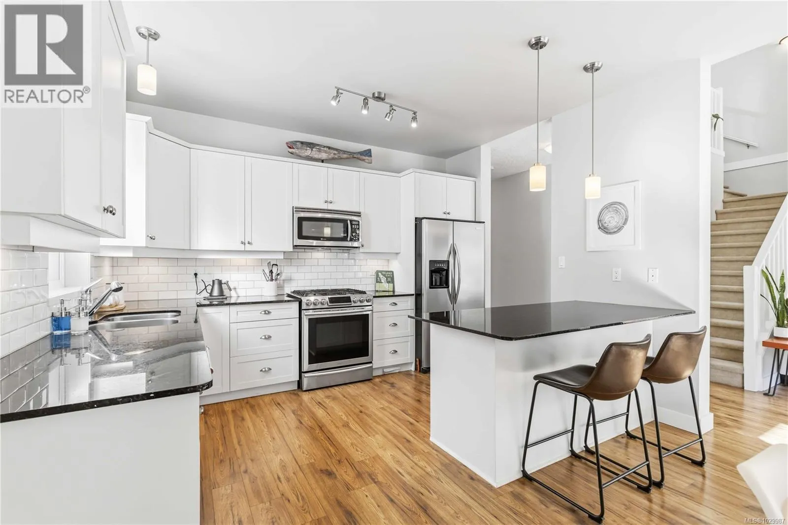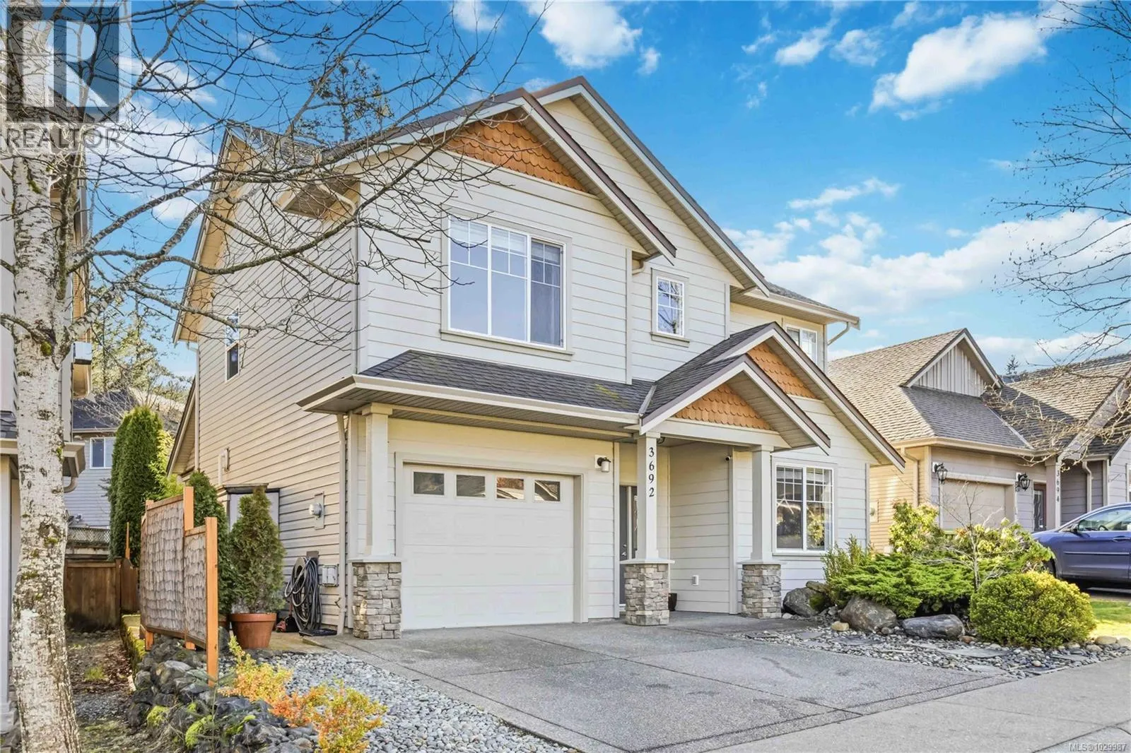 Welcome to this beautifully maintained home in a sought-after Happy Valley neighbourhood, perfect for young families or first-time buyers. Offering 3 bedrooms + den and 3 bathrooms, this home features a bright open-concept main floor with vaulted ceilings, cozy gas fireplace, and a well-appointed kitchen with lovely countertops, stainless steel appliances, and great flow for everyday living. The dining area opens to a private yard with sun-facing patioâideal for entertaining or relaxing. Upstairs, the spacious primary suite includes a walk-in closet and ensuite with soaker tub and separate shower. Set on a nicely landscaped lot and located just minutes to parks, trails, and Happy Valley Elementary. A fantastic opportunity in a family-friendly community! (id:27476)