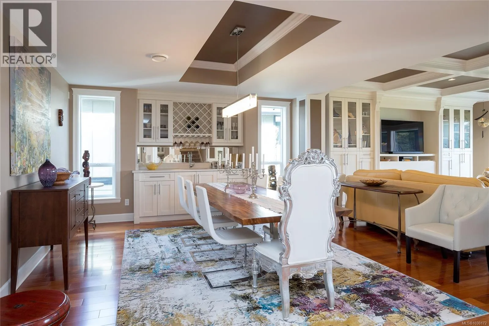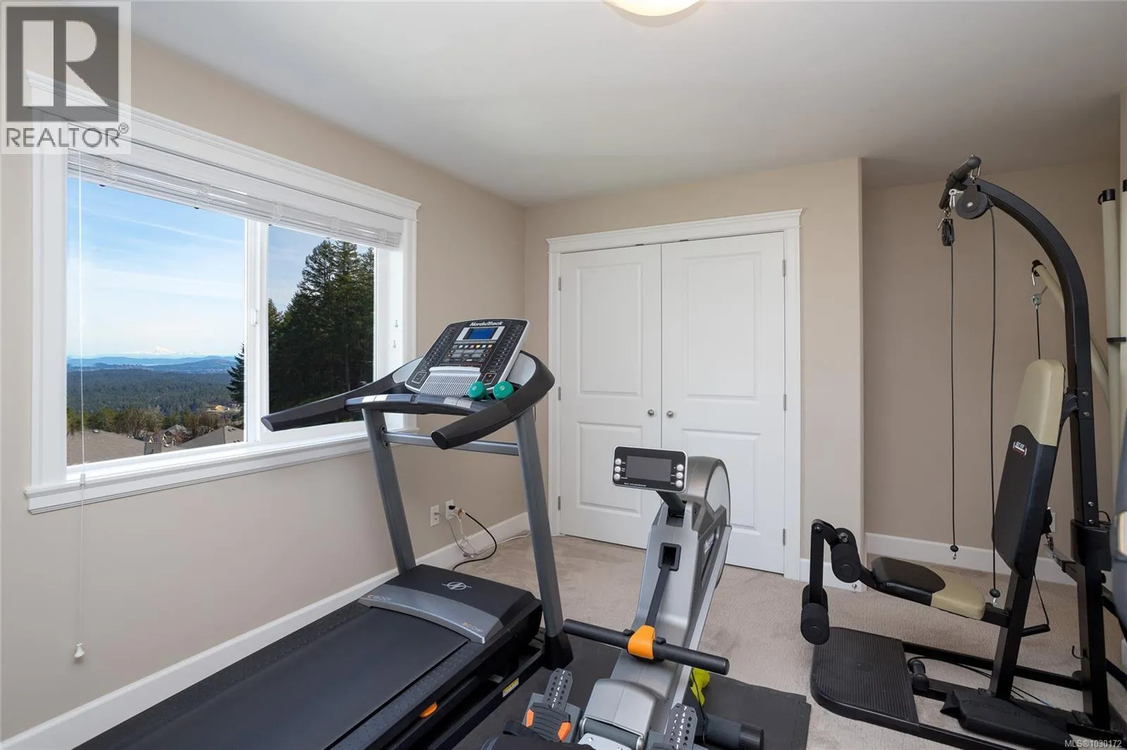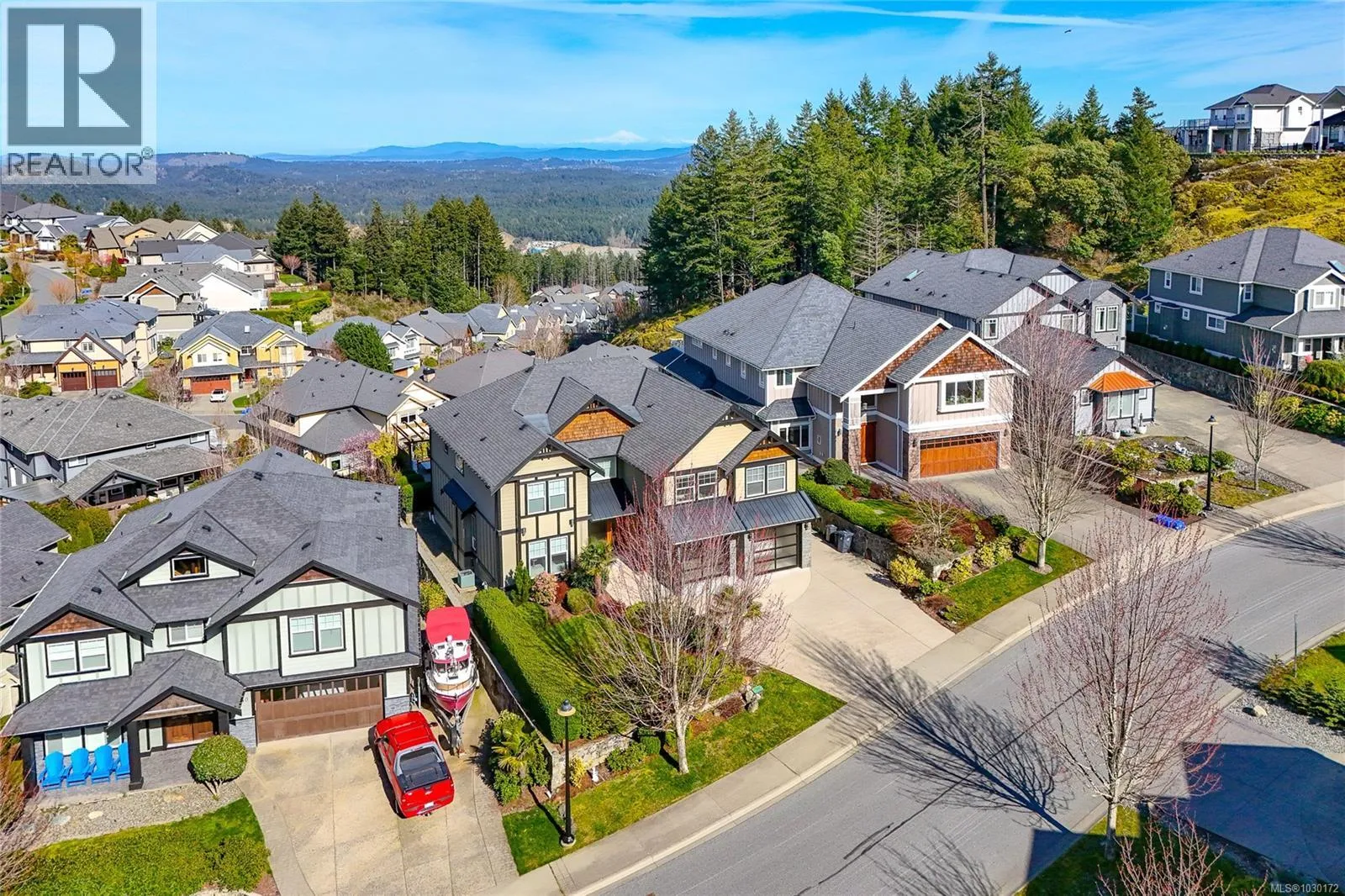 This immaculate two-story residence on Bear Mountain offers exceptional quality throughout and wonderful Views towards Mt. Baker with an open-concept floorplan perfect for modern living. Bright and roomy from the moment you enter the grand entrance and into the elegant living room to the spacious gourmet chefâs kitchen featuring custom cabinetry, high-end Jenn Air appliances, large eating island and a hidden pantry. Large office on main. Upstairs offers 5 bedrooms, including a luxurious primary retreat with private balcony, oversized walk-in closet, spa-like ensuite with jetted tub, dual sinks, and luxury glassed shower. Two cozy fireplaces, radiant in-floor heating, and heat pump elevate comfort and efficiency. Large double garage plus extra driveway parking along side. Legal 1 bdrm suite above garage. The private level backyard is an entertainerâs dream with barbeque area, gazebo with gas fire pit and wonderful views. 10 Minutes to Costco & Millstream Market, 30 minutes to Victoria. (id:27476)