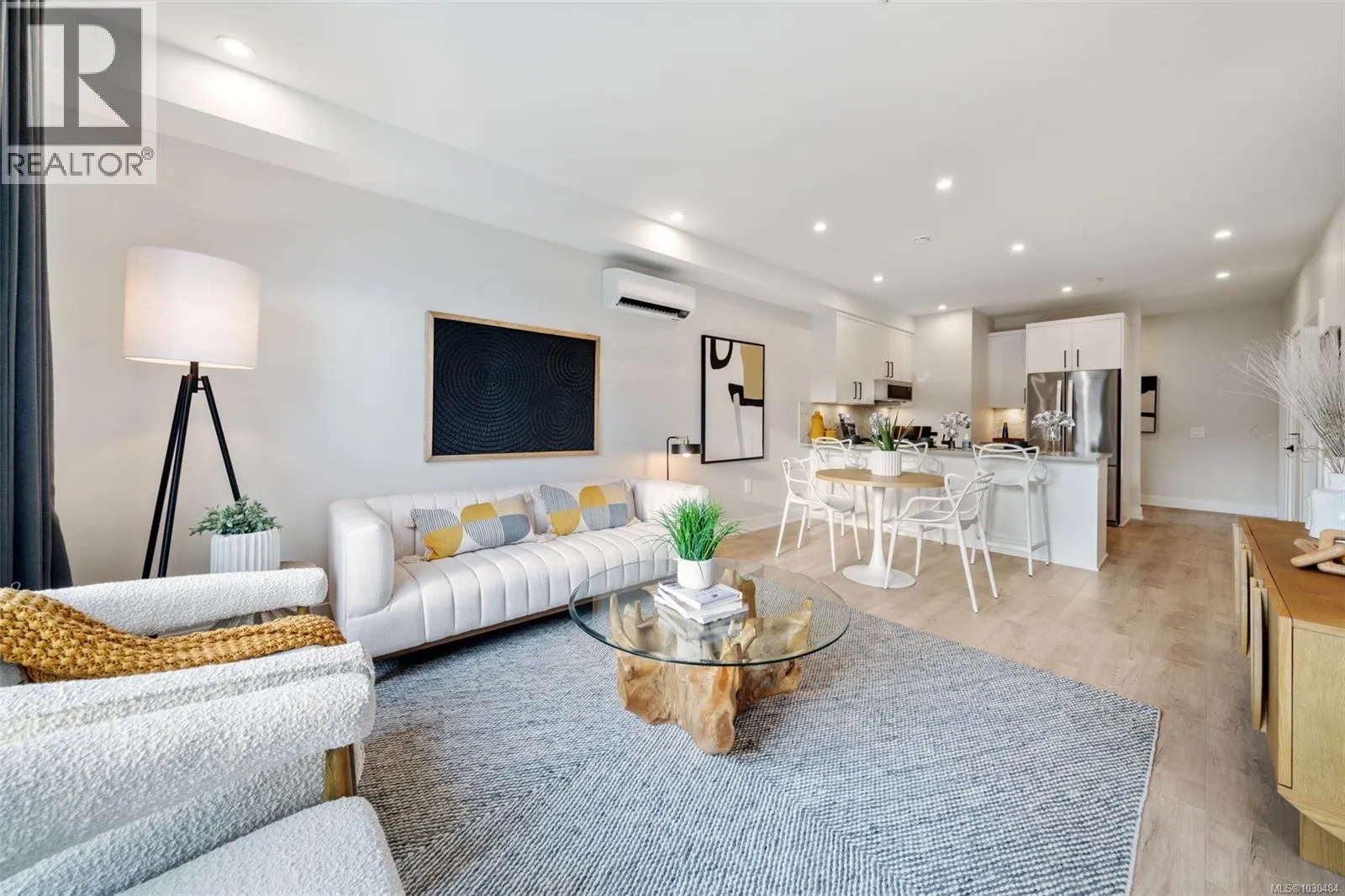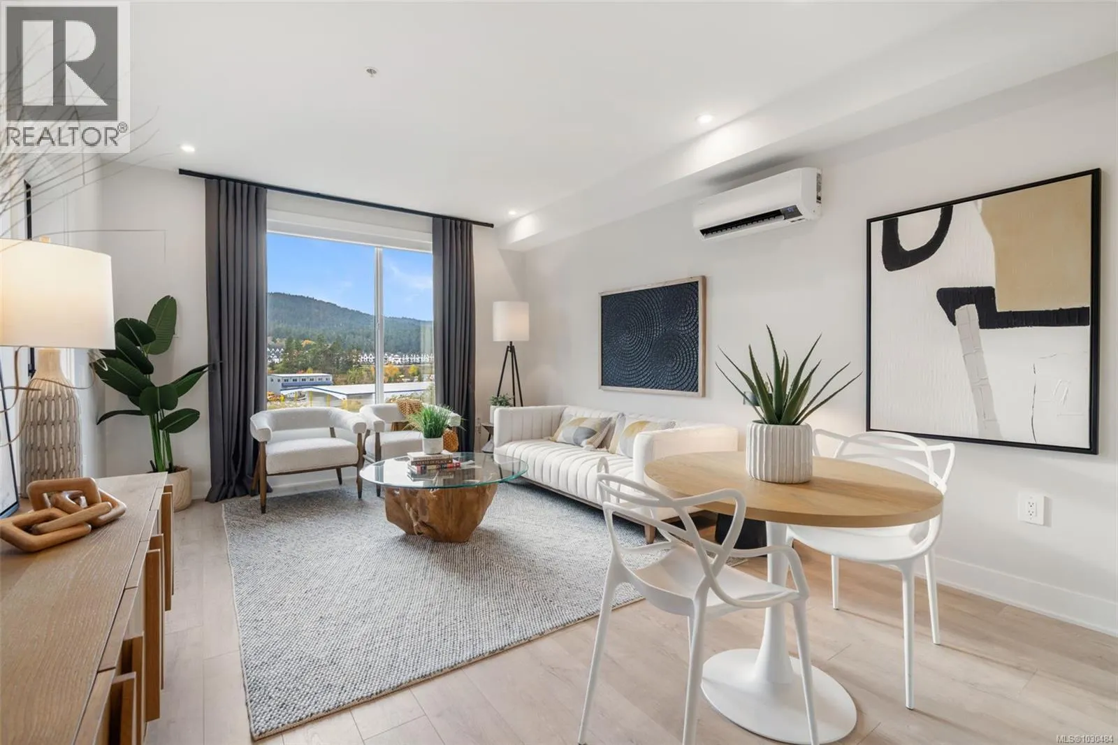 Private END unit, move in ready, with a park setting and water and nature outlooks from your living room and deck in this spacious 2 bed and 2 bath home. Ready for immediate possession, new construction with air conditioning, one (EV capable) parking space, and a convenient storage locker on your floor. Poised on the shores of Langford Lake, all homes at Trailside at the Lake come equipped with all the amenities for modern living. Bright and airy, including large windows to showcase the views, 9 ft ceilings, laminate flooring, spacious kitchens with quartz counters and a Whirlpool appliance package, window blinds and screens. Building amenities include cardio space, weight room, yoga space, lounge, & work from home office space. Just steps to the Ed Nixon trail and Langford Lake for outdoor adventures. You can also enjoy a short walk to YMCA, Eagle Ridge and City Center activity complex, as well as many amenities. (id:27476)