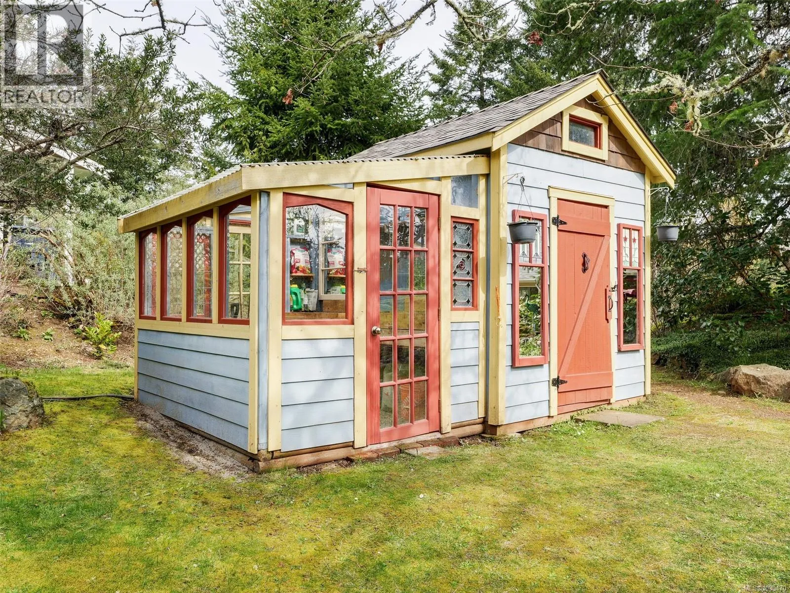 OPEN SAT. APRIL 4, 2:00-4:00pm. Backing onto parkland, this 2006-built home sits atop a level knoll with blue sky views. The simply magical yard full of fruit trees, veggie, herb & perennial gardens beckons you outdoors to play or relax in its many thoughtful spaces all soaked in afternoon sunshine. Shady spots to read, a greenhouse to nurture, a fire pit to sit around, good living to be had here. The spacious home is bathed in natural light & provides an open living area with a huge wrap around kitchen, cozy living room with fireplace and gracious dining room. A private Primary bedroom on its own level with walk in closet & ensuite, two additional bedrooms, a lower family room and a good-height crawl space with ample storage space. A legal & private 1-Bedroom suite over the double garage completes this stunning home. Brand new shingles & exterior paint, a heat pump, RV parking, steps to the Galloping Goose, bus, minutes to Langford's schools & amenities. Rural living close to town! (id:27476)