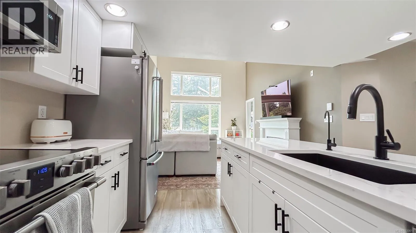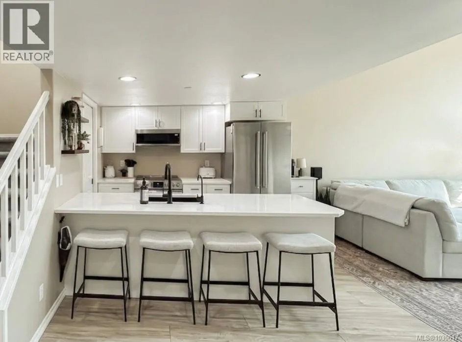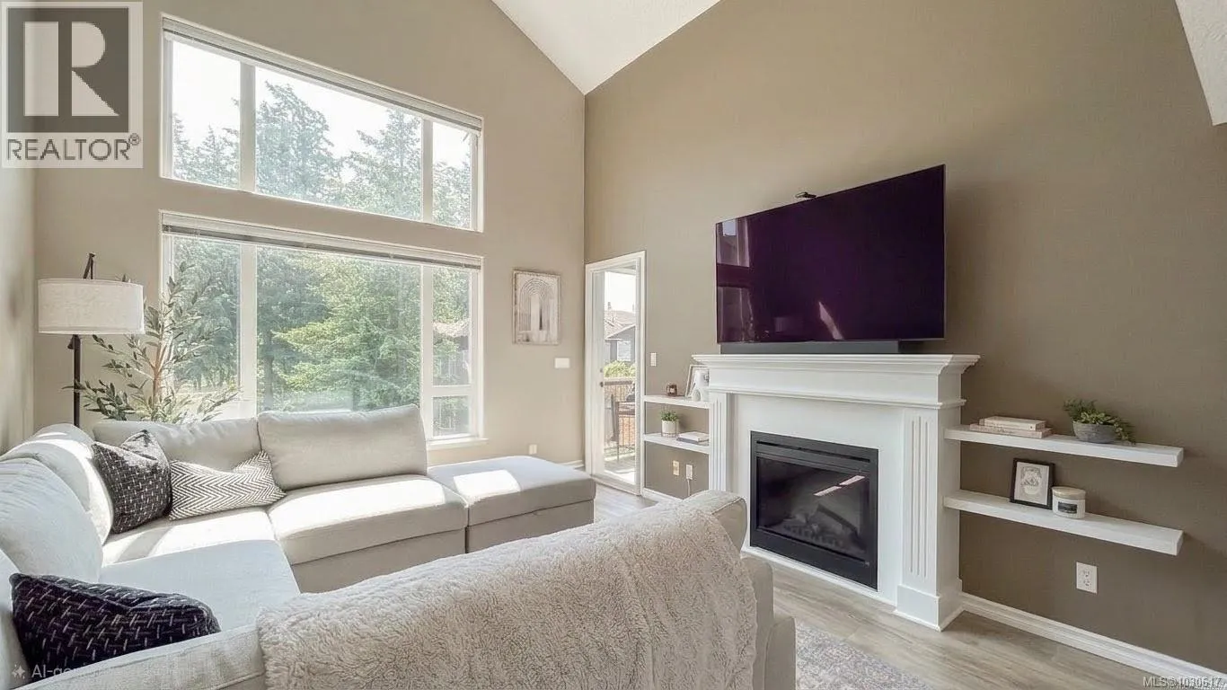 Best value per square foot in Langford! This top-floor 2 bed + loft condo offers over 1,100 sqft of living space, making it one of the largest units available in this price range. The spacious loft provides flexible space perfect for a home office, guest room, gym, or additional living area - a rare feature not found in most condos. The home features 17-foot vaulted ceilings, large windows, and a bright open-concept layout. Recent updates include new quartz countertops in the kitchen and bathrooms, updated appliances, new vinyl flooring, and new carpet and a brand-new fireplace, making this home move-in ready with modern finishes throughout. Located in the heart of Langford within walking distance to shopping, restaurants, transit, and everyday amenities. If you are comparing size, layout, and value, this is one of the best opportunities currently available in Langford for price per square foot. Top floor, loft space, large floor plan, and recent updates, all at an excellent price point. (id:27476)