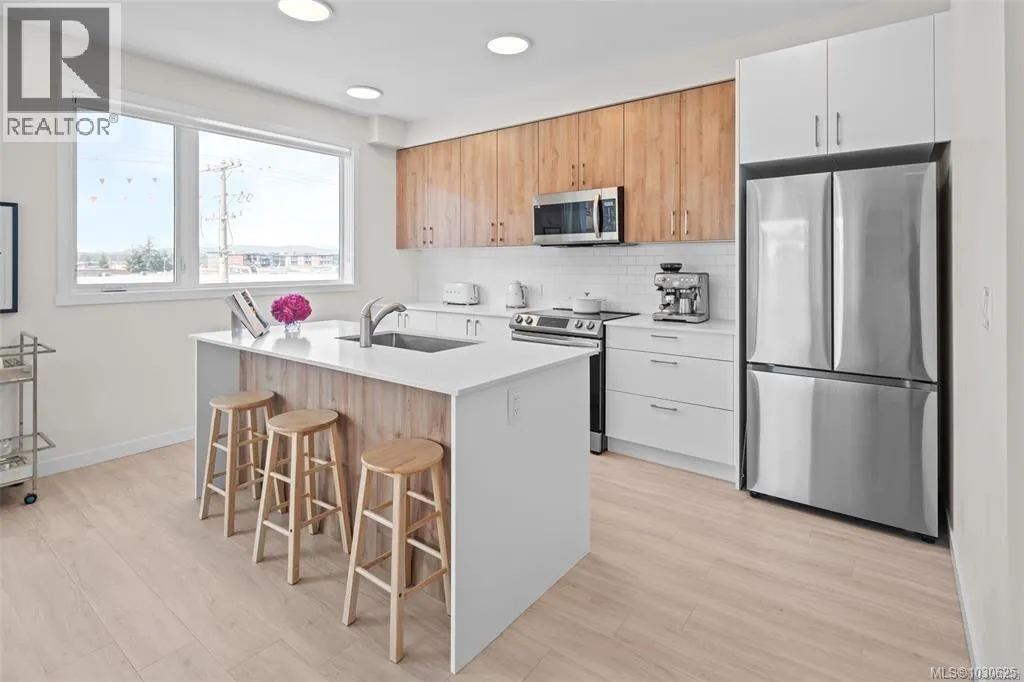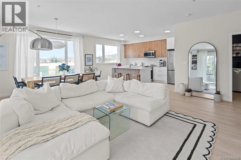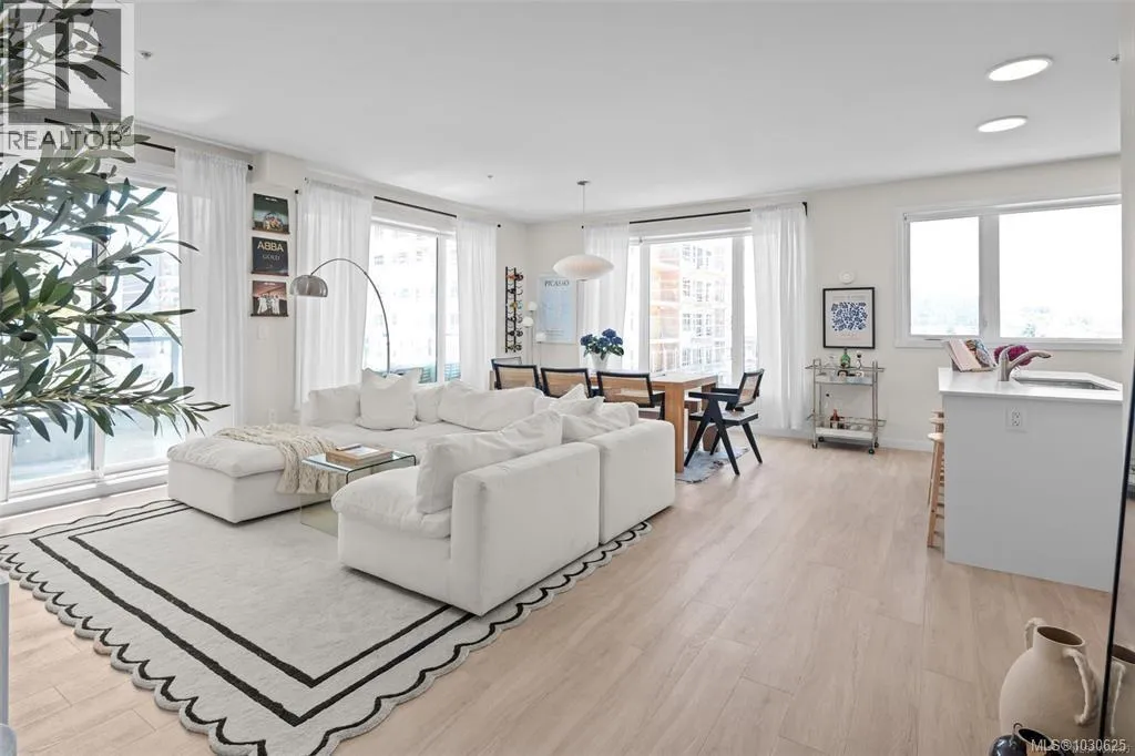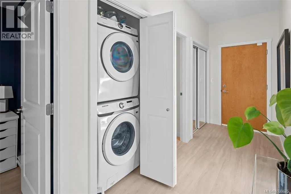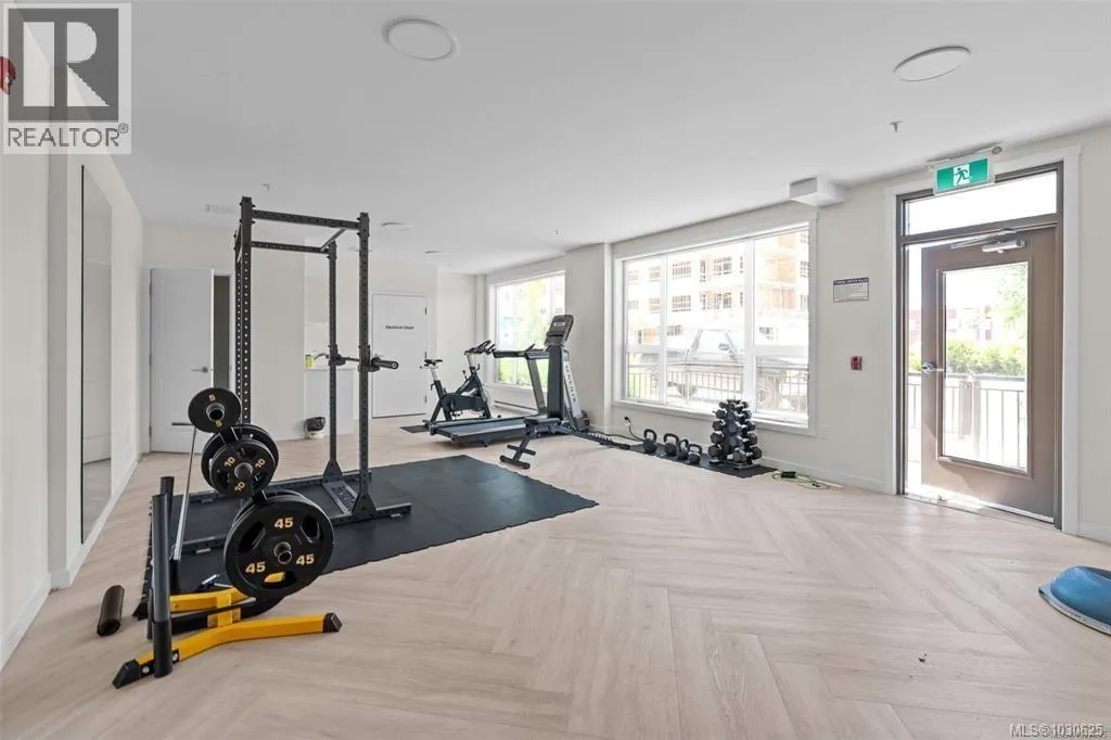 Experience exceptional space and natural light in this generous 916 sq ft 1 bed + den CORNER UNIT. Thoughtfully designed with modern, tasteful finishes, it features oversized south-facing windows and an open living/dining layout with room for full furniture sets. The stylish, functional kitchen offers two-tone cabinets, quartz counters, s/s appliances, and a large islandâgreat for daily use or entertaining. Enjoy 9-ft ceilings, A/C (heat pump), in-suite laundry, and a spacious balcony. Located in a prime Westshore spot steps to the lake, shopping, gyms, and top amenities. The secure, pet- and rental-friendly building includes a fitness centre, BBQ terrace, gated parking, a storage locker, and a bike room. As a newer build with no GST, itâs a smart, standout investment. Book your private showing today! (id:27476)