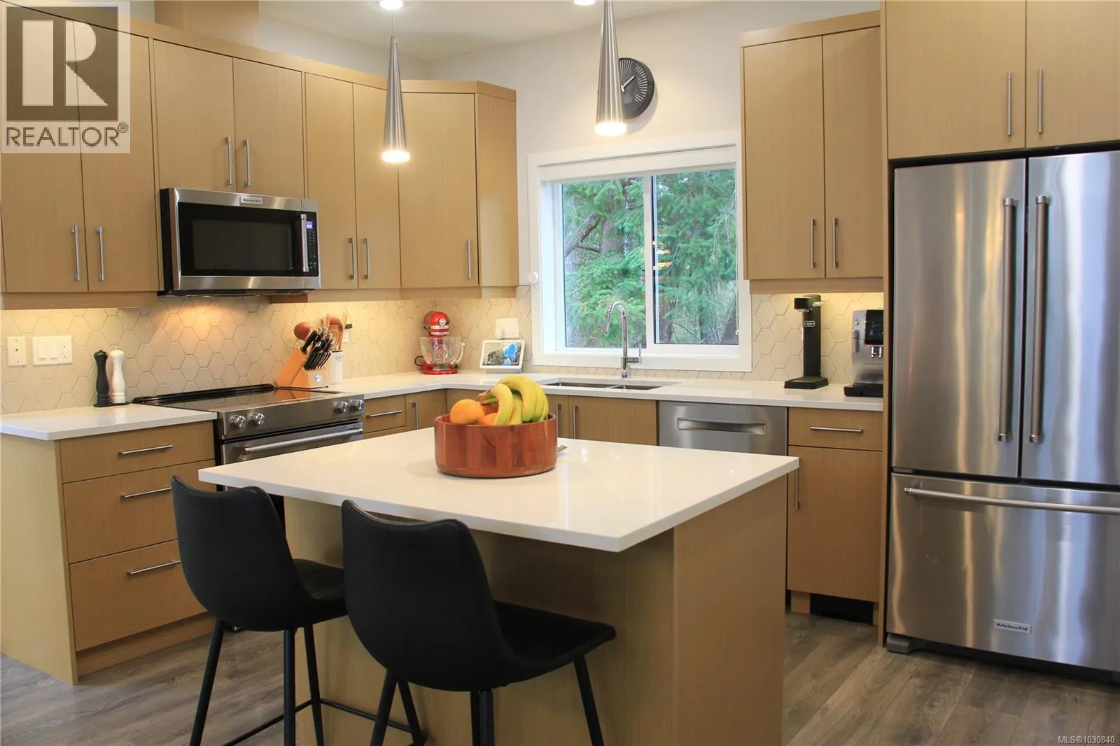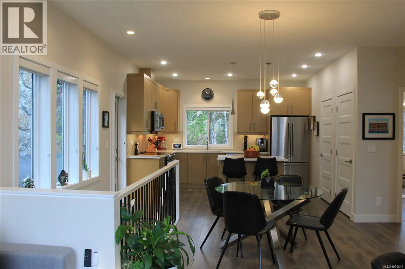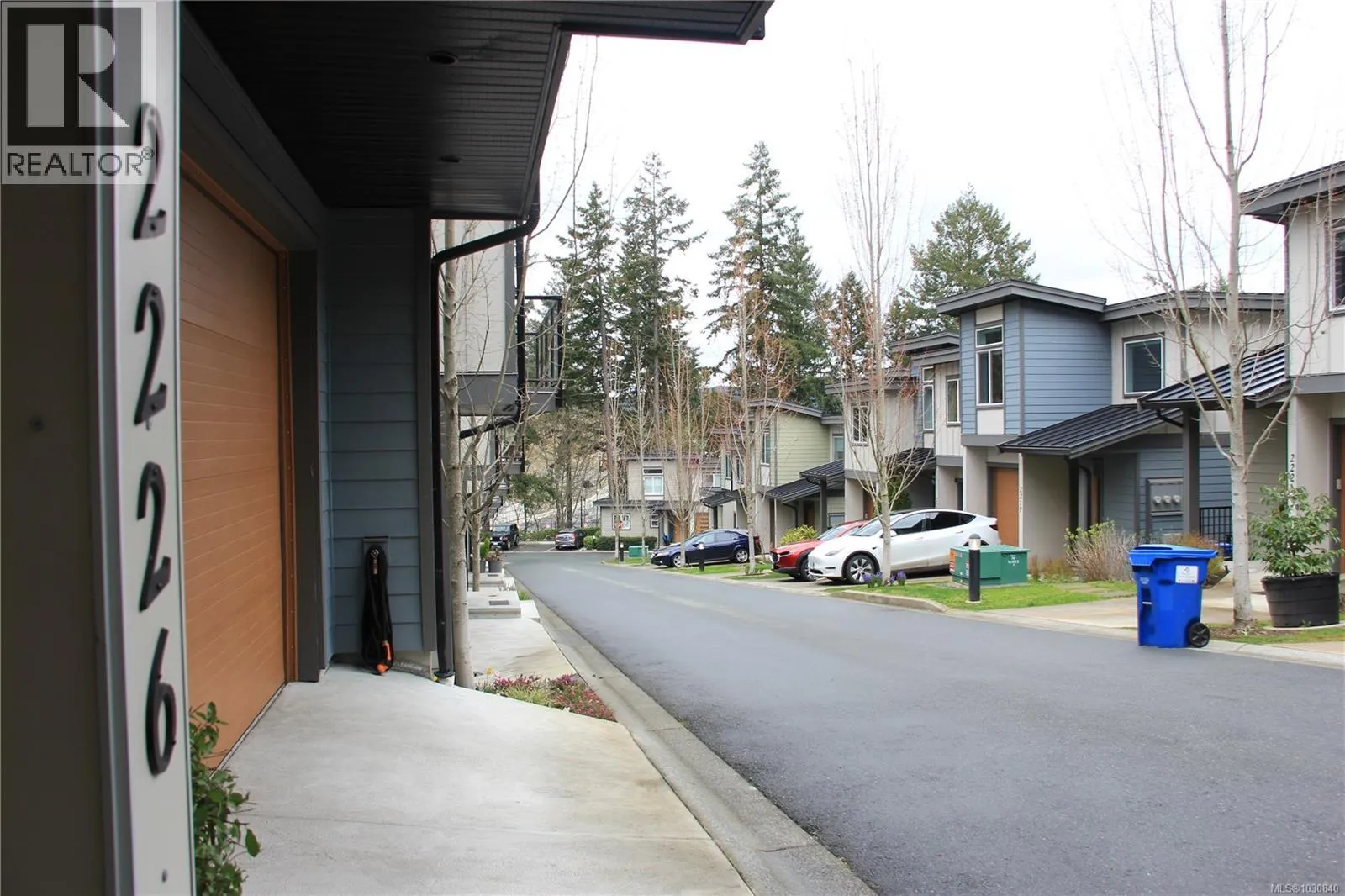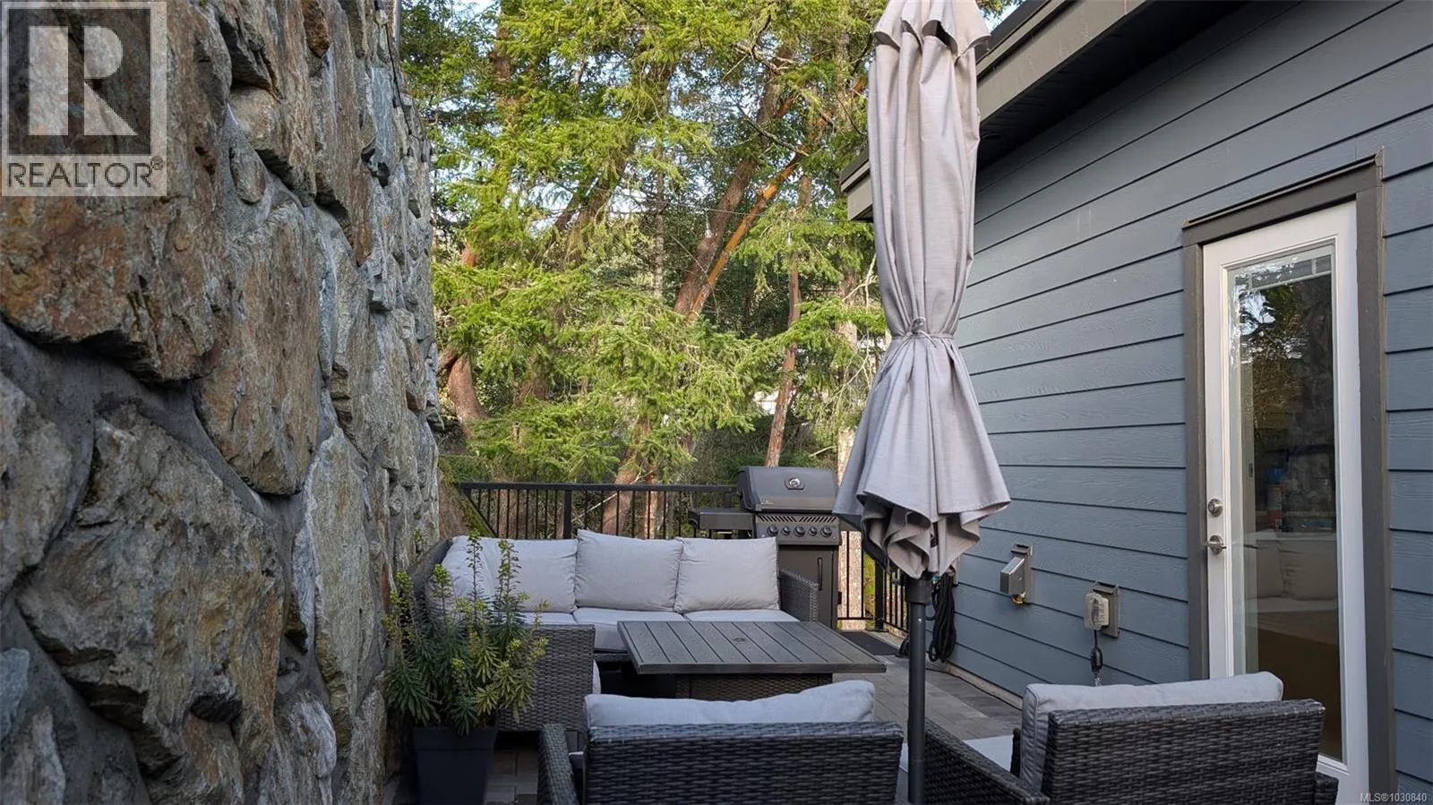 Welcome to this exclusive, fully detached townhome on Bear Mountain. Located at the top and end of Echo Valley Rise, this residence offers a rare sense of privacy, with no neighbors on one side or behind, and is surrounded by natural beauty. Designed with a modern contemporary style, the home features three generously sized bedrooms and two full bathrooms, complemented by stunning flooring and lighting throughout. The well-appointed kitchen and baths showcase quartz countertops, KitchenAid stainless steel appliances, a Bosch dishwasher, a pantry and small appliance garage, and designer modern finishes. Comfort is enhanced with gas-fired on-demand hot water, a gas fireplace in the living room, a ductless heat pump, and sleek roller blinds. Natural light fills the home through oversized west-, south-, and east-facing windows, while vaulted ceilings capture the sun throughout the day. Step outside to the expansive and private 300 sq. ft. sun-drenched patio off the kitchenâperfect for entertainingâwith a natural gas hookup ready for a BBQ or fire pit. A striking stone retaining wall adds both function and artistic appeal. Additional outdoor spaces include a front balcony with natural gas for BBQing and a rear lower-level patio off the main-level bedroom. The home also offers a full-sized double car garage, under-stair storage, low strata fees, and the peace of mind of a remaining new home warranty. Built to Green âGoldâ standards, this exceptional property is ideal for the most discerning buyers. You will not be disappointed. (id:27476)