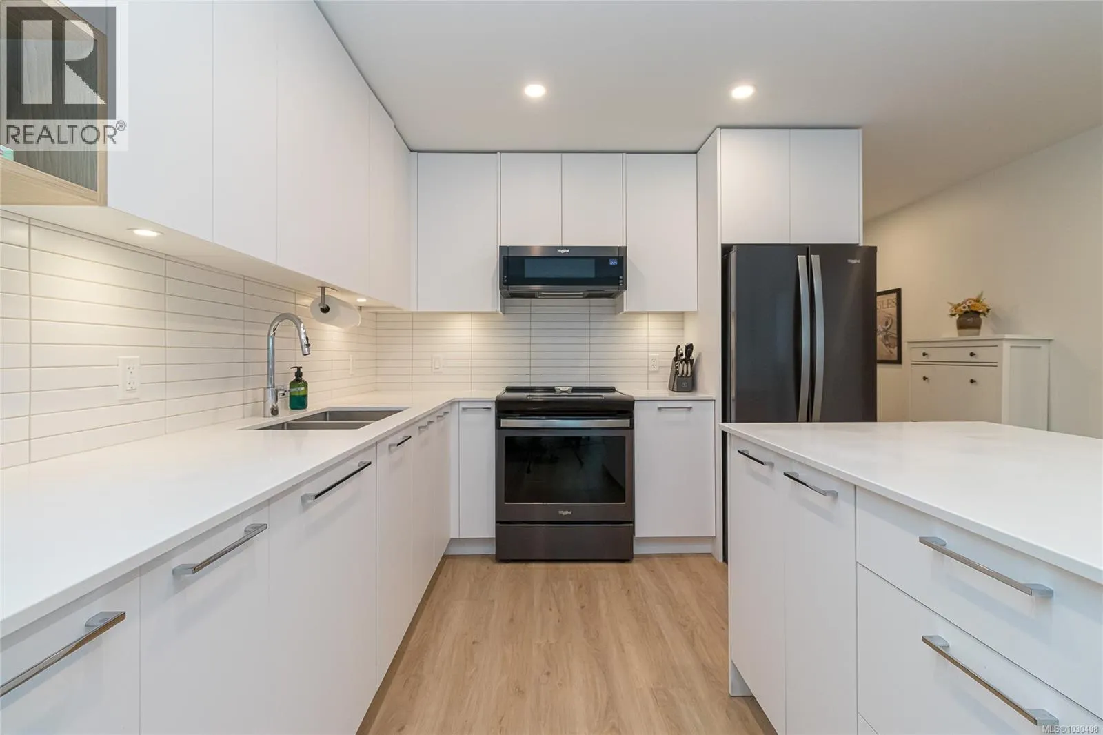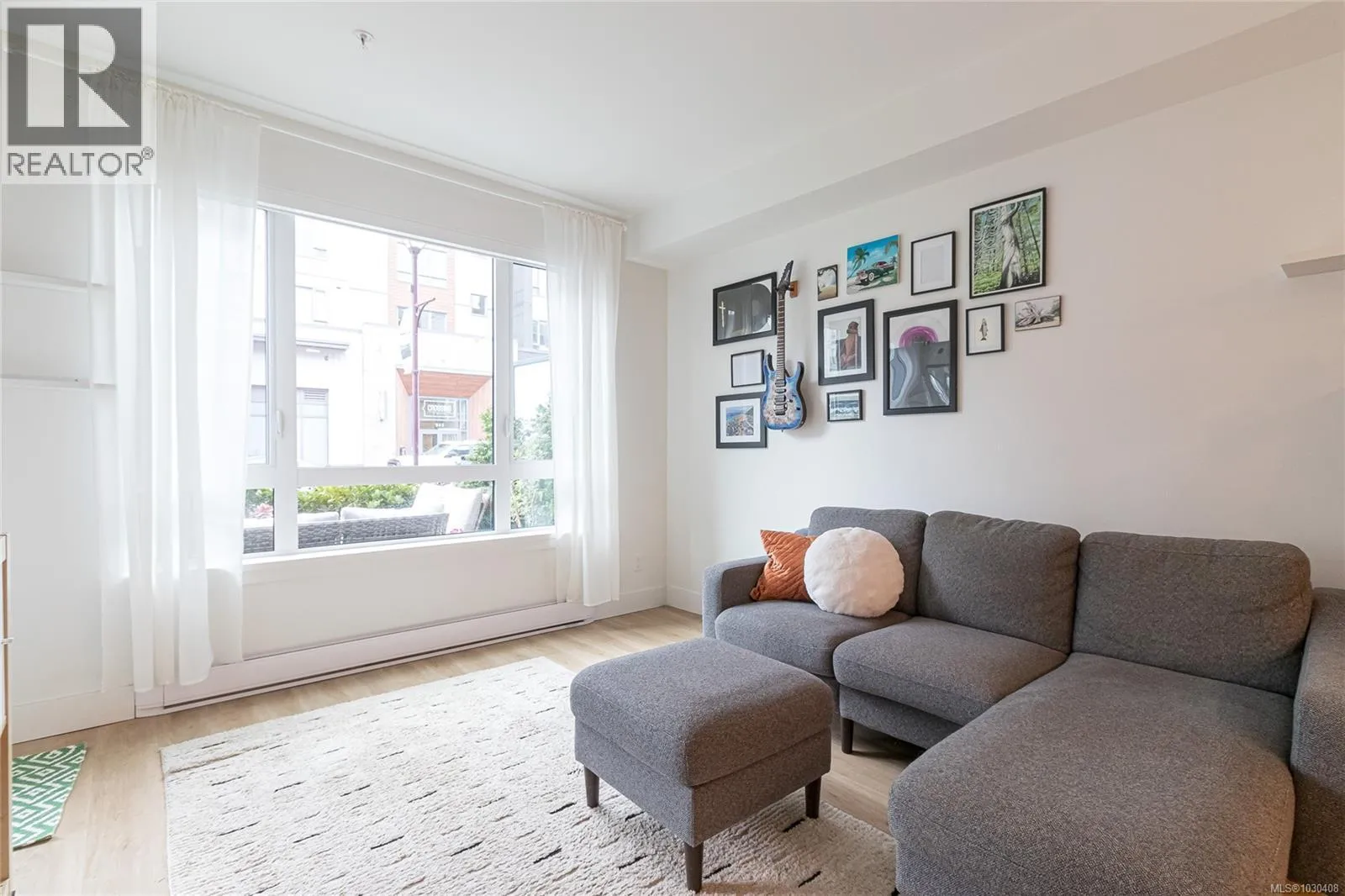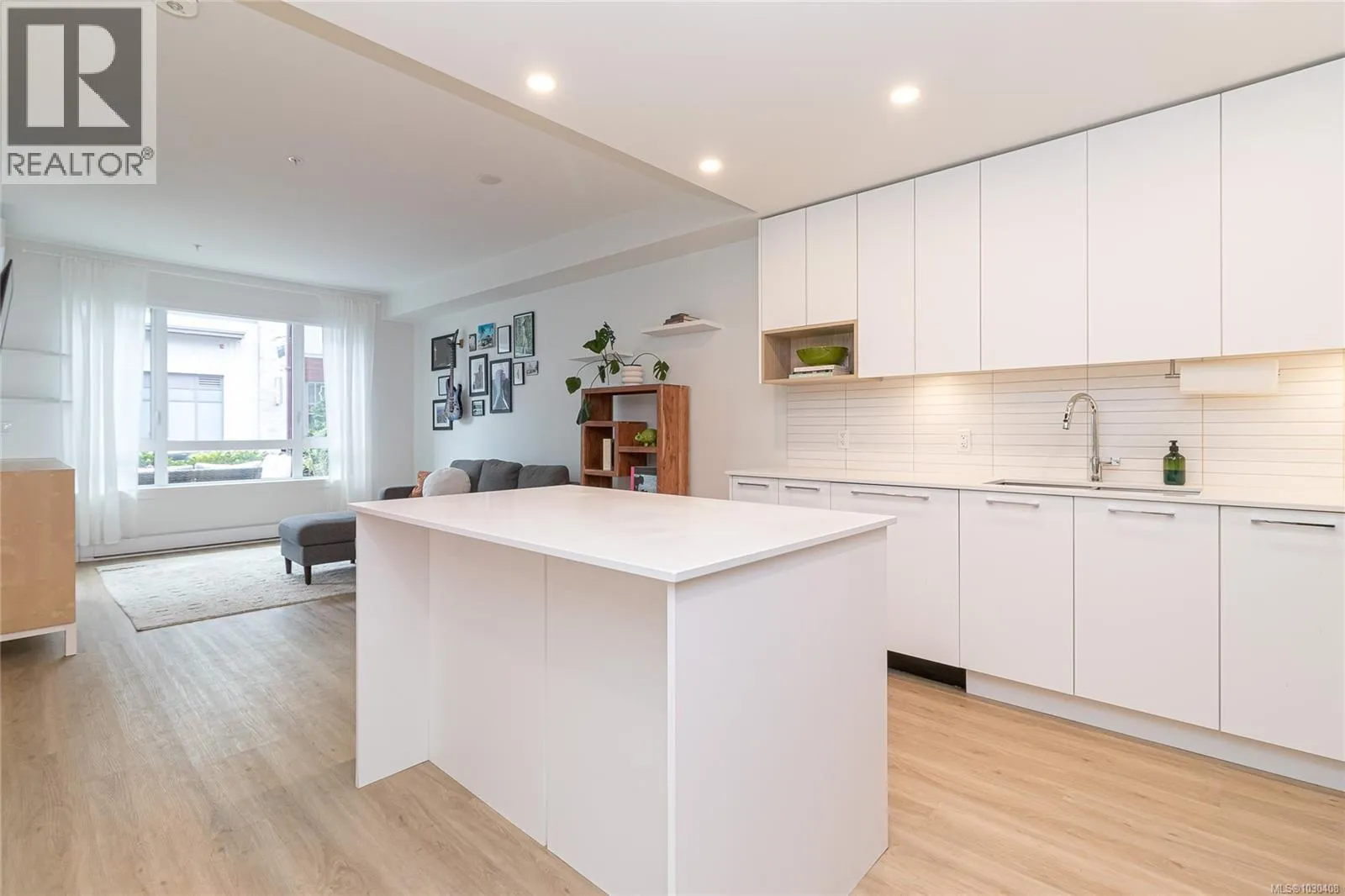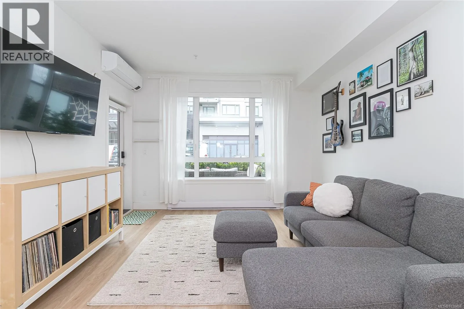 OPEN HOUSE Sat Apr 4 | 11â1 Welcome to modern, easy living in the heart of Langford! This stylish 1bd, 1bth ground-floor condo offers open-concept layout designed for comfort & convenience. The sleek kitchen has generous counter space, perfect for entertaining, while the spacious patio extends your living outdoorsâideal for morning coffee or evening wine. Ground-floor access allows for seamless indoor-outdoor living with no elevators. An efficient heat pump keeps things cool in summer & cozy in winter. Enjoy fantastic amenities including a community lounge w/kitchen, outdoor patio & BBQ, pet wash, workshop, bike repair station, & exclusive access to the Belmont Club w/entertaining space, music room, kidsâ play area & art studio.Pet-friendly (2dogs or 2 cats, no size limitârare!), rentable, w/secure underground parking w/dedicated EV charger, dog wash, storage locker & bike storage. Steps to groceries, shops, cafés, restaurants, parks & Galloping Goose Trailâthis is lifestyle living at its best! (id:27476)