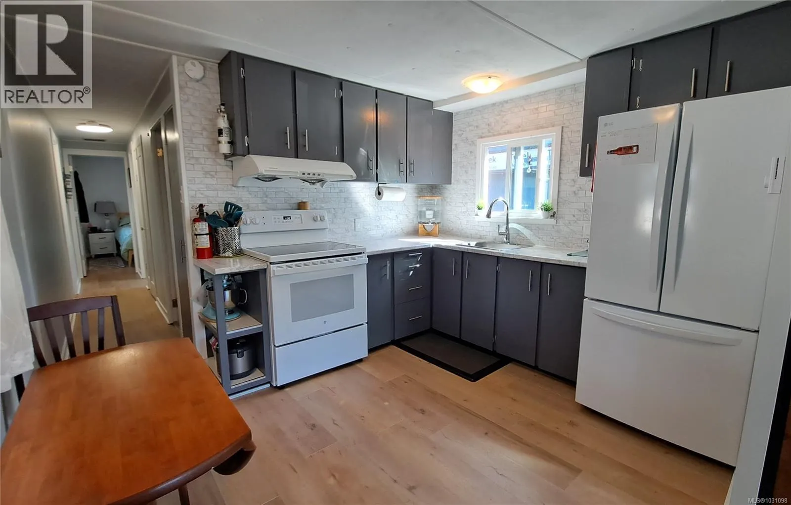 Experience the security of home ownership in a unique resident-owned Co-op where you own a share of the land. This rare find features an incredibly low $340/month fee that covers water, garbage, recycling, & yard waste. This home has been meticulously transformed with high-end upgrades completed in late 2025. The structure was professionally leveled & secured with new tie-downs & skirting. The exterior shines with new premium vinyl siding, new gutters, & a 25-year high-grade shingle roof. Inside, enjoy a fresh, modern aesthetic with new paint throughout & high-quality laminate flooring. The chefâs kitchen features all-new appliances, & the stunning new renovated bathroom has a stylish new tub, surround, vanity & flooring. Peace of mind a with a new 10-year warranty hot water tank & the complete removal of Poly-B plumbing, replaced entirely with new lines. The property offers a fully fenced yard with new 6ft cedar fencing & fresh landscaping. A turnkey gem offering land ownership & unmatched value. (id:27476)