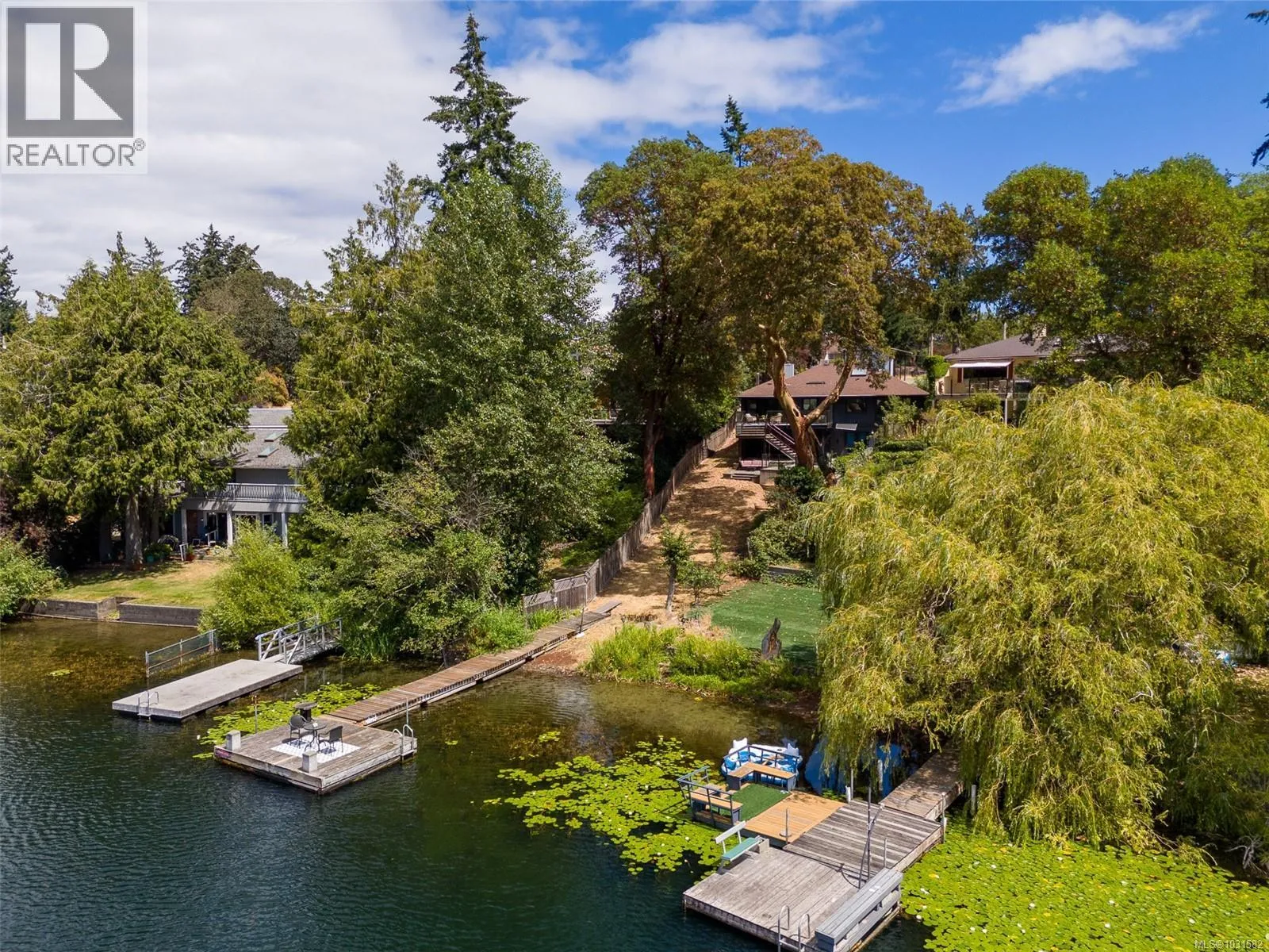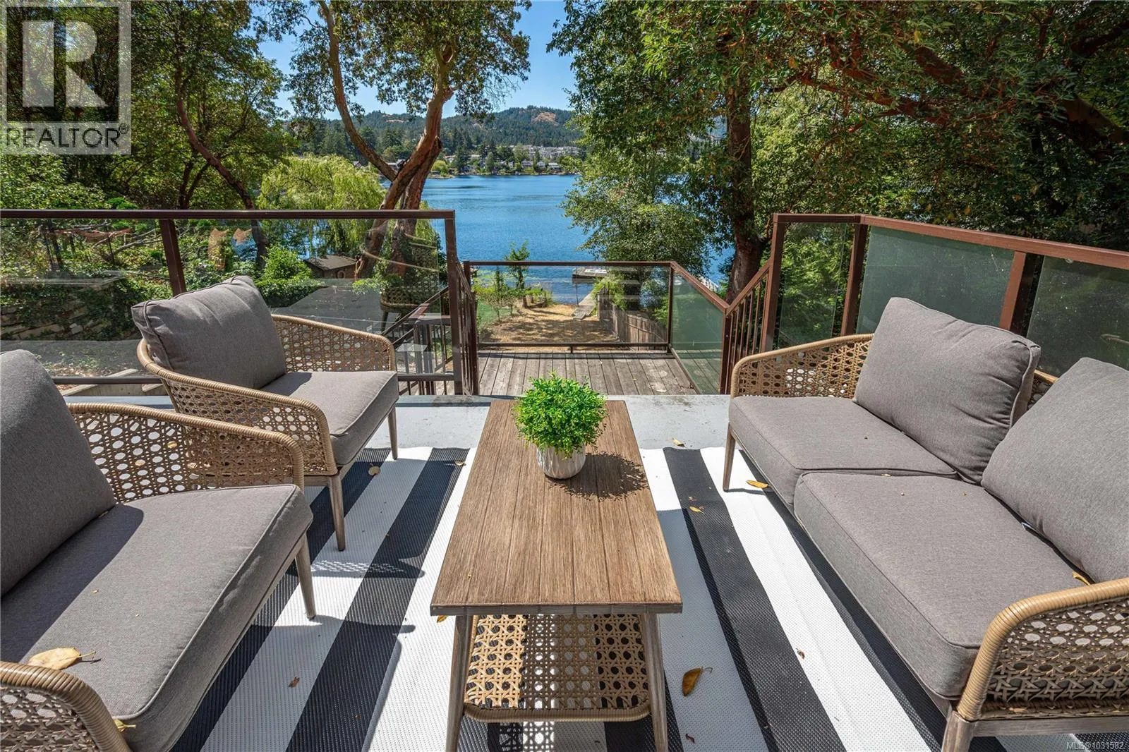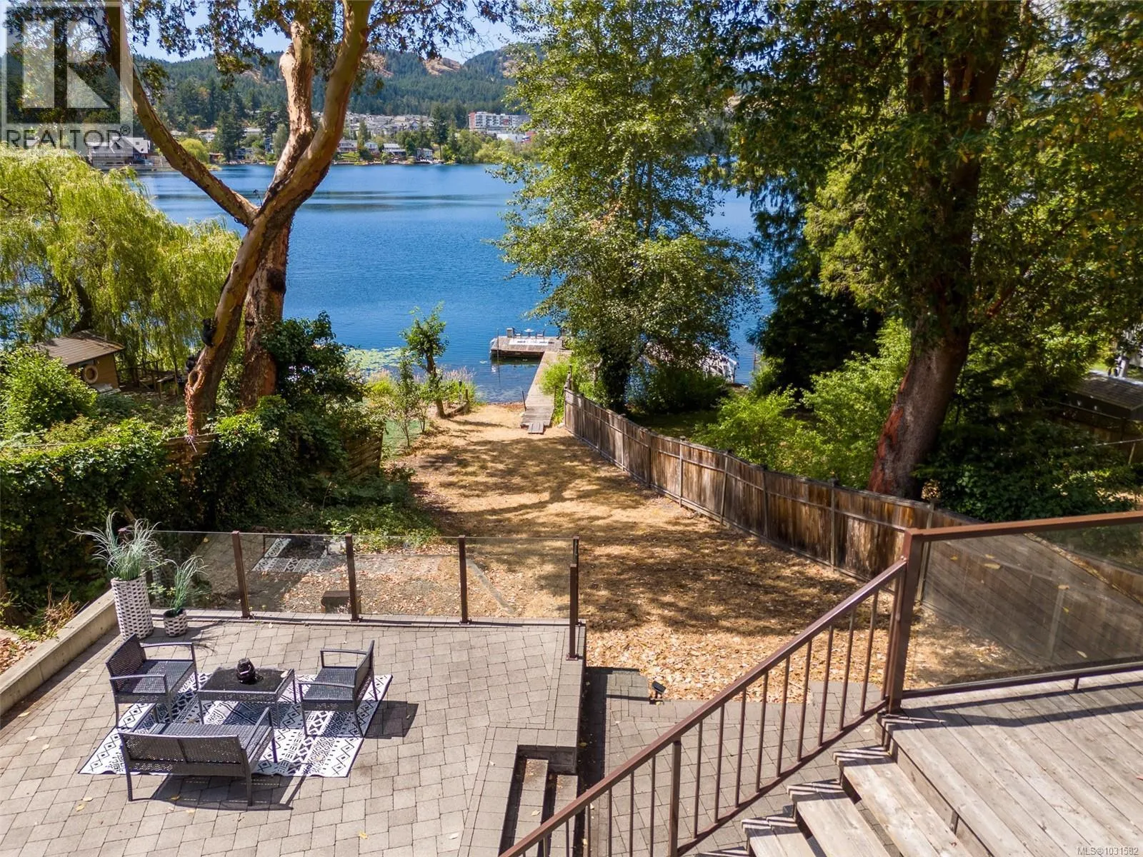 Lakefront living on Langford Lake this executive home is only second to the town centre yet offers full waterfront privacy. On an almost half an acre of land there is no need for a summer home when your main home can be both. The current owners have made many updates and upgrades to ensure luxury living. Situated well off the main road for total privacy this home offers a desirable floor plan with main level living and a suite below. With walls of glass towards the lake you will take in panoramic views from both the great room and the primary retreat. The large kitchen with updated appliances, shaker cabinets, large island, gas cooktop and also has a large window to bring in ample natural light from the lake beyond. The wide plank hardwood floors, board and batten ceiling, multiple skylights, wood fireplace and coved wood ceiling bring charm and ambiance warming the space and creating a relaxing environment. With three bedrooms up, a fourth down with a rec room and a separate suite this floor plan can accommodate a large family or provide income potential. The one bed and den suite is spacious and bright and is situated to also take in breathtaking sunsets and views of the lake. Loads of outdoor space with multiple patios, fire pit, green space, gardens, very large storage shed and a big dock with its own title. Swim all day long with ideal sun exposure to enjoy every last minute of day time. Double car garage, gated driveway, loads of parking and even covered RV parking. Langford lake is an electric motor only lake to ensure serenity and peace, residents putter around on their floating docks waving at one another creating a charming water community. You are steps to YMCA and very easy access to the highway, only seconds away from every amenity you could want or need. This home offers a lifestyle to be envied and is an extremely rare opportunity, call today for your private tour. (id:27476)