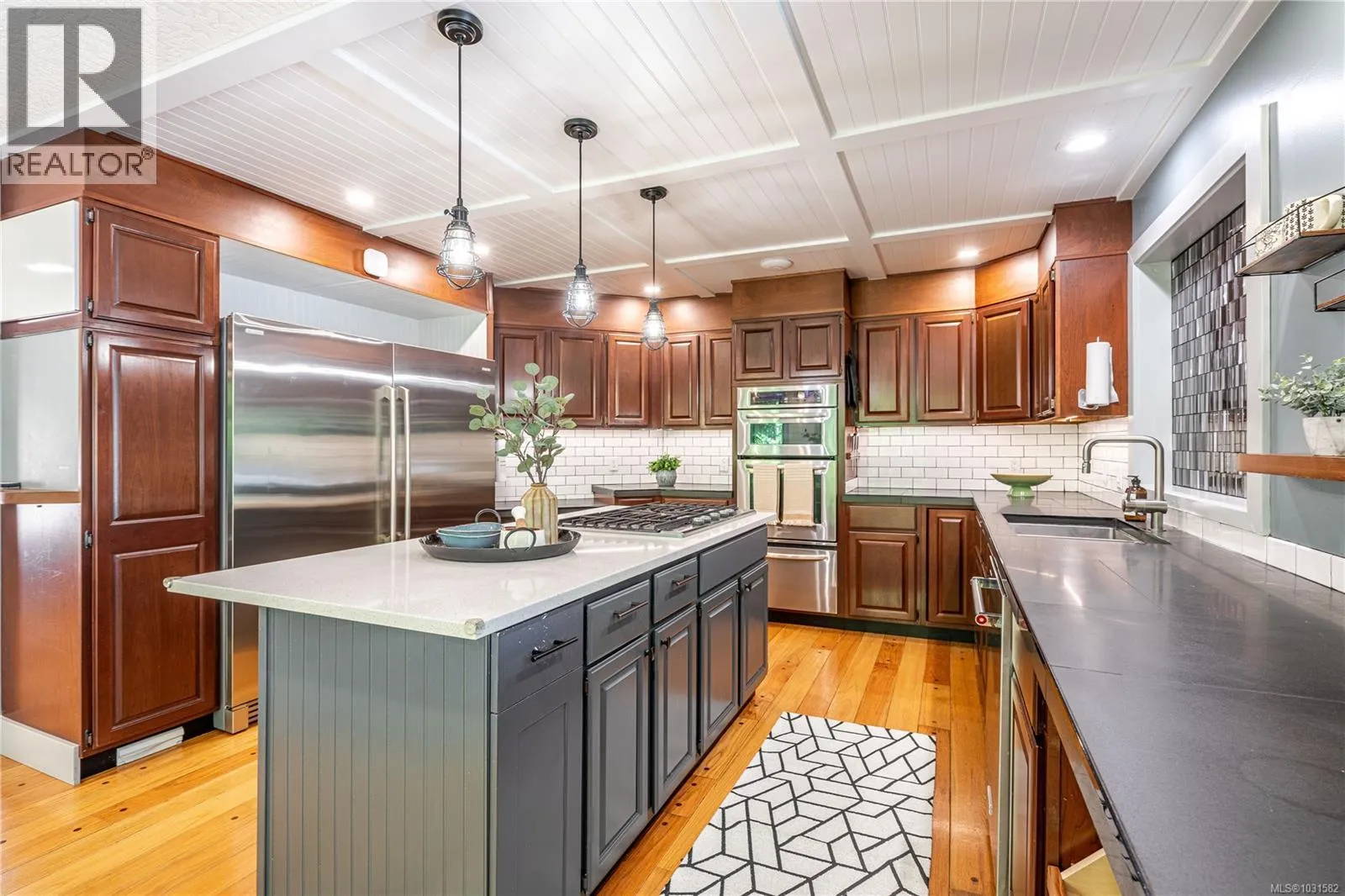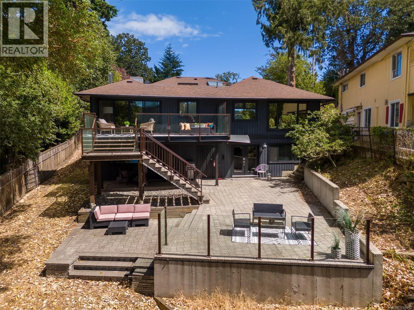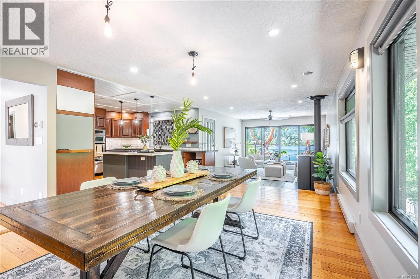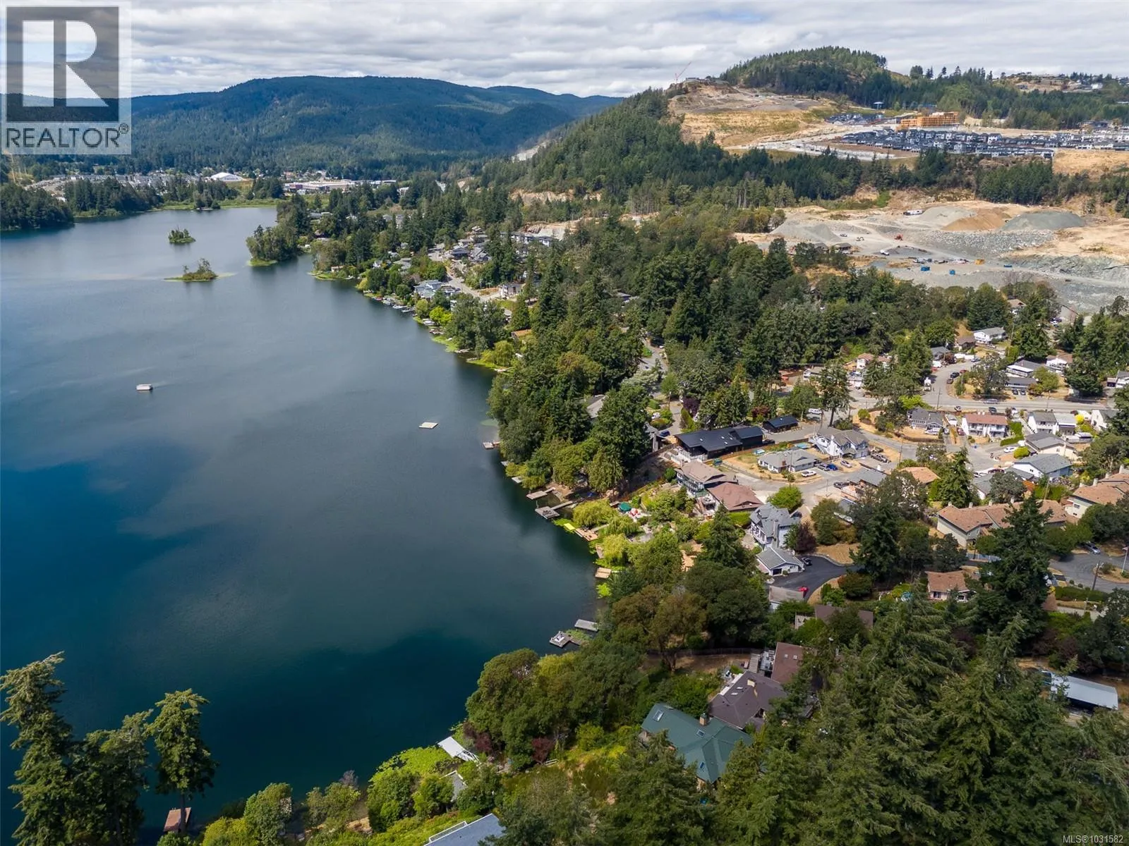 Lakefront living on Langford Lake this executive home is only second to the town centre yet offers full waterfront privacy. On an almost half an acre of land there is no need for a summer home when your main home can be both. The current owners have made many updates and upgrades to ensure luxury living. Situated well off the main road for total privacy this home offers a desirable floor plan with main level living and a suite below. With walls of glass towards the lake you will take in panoramic views from both the great room and the primary retreat. The large kitchen with updated appliances, shaker cabinets, large island, gas cooktop and also has a large window to bring in ample natural light from the lake beyond. The wide plank hardwood floors, board and batten ceiling, multiple skylights, wood fireplace and coved wood ceiling bring charm and ambiance warming the space and creating a relaxing environment. With three bedrooms up, a fourth down with a rec room and a separate suite this floor plan can accommodate a large family or provide income potential. The one bed and den suite is spacious and bright and is situated to also take in breathtaking sunsets and views of the lake. Loads of outdoor space with multiple patios, fire pit, green space, gardens, very large storage shed and a big dock with its own title. Swim all day long with ideal sun exposure to enjoy every last minute of day time. Double car garage, gated driveway, loads of parking and even covered RV parking. Langford lake is an electric motor only lake to ensure serenity and peace, residents putter around on their floating docks waving at one another creating a charming water community. You are steps to YMCA and very easy access to the highway, only seconds away from every amenity you could want or need. This home offers a lifestyle to be envied and is an extremely rare opportunity, call today for your private tour. (id:27476)
