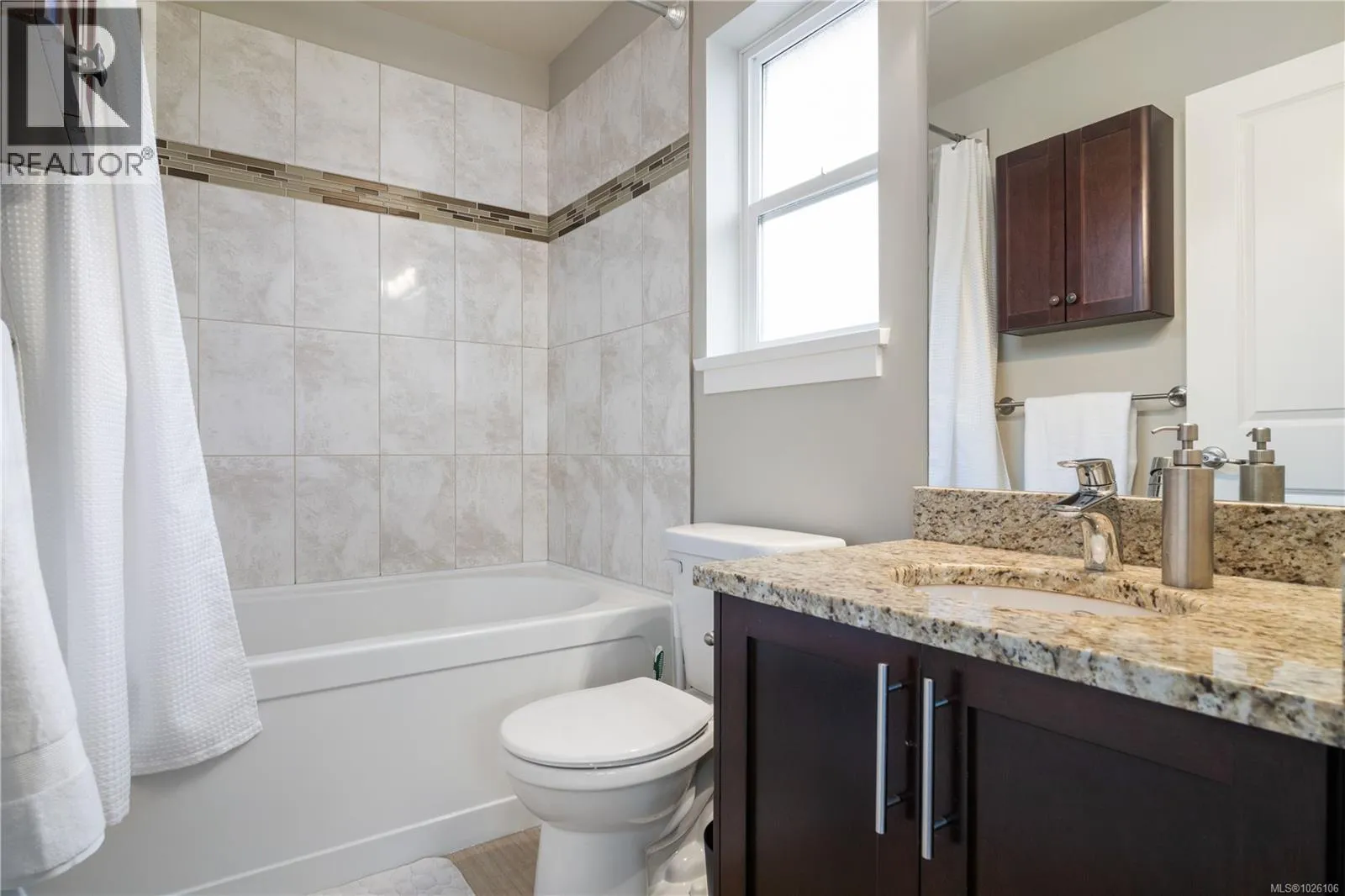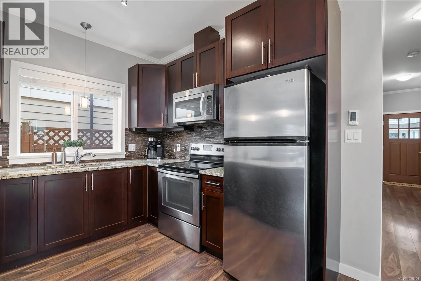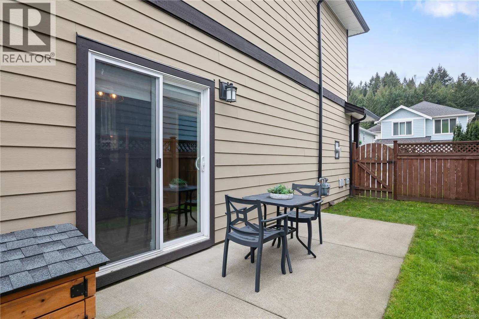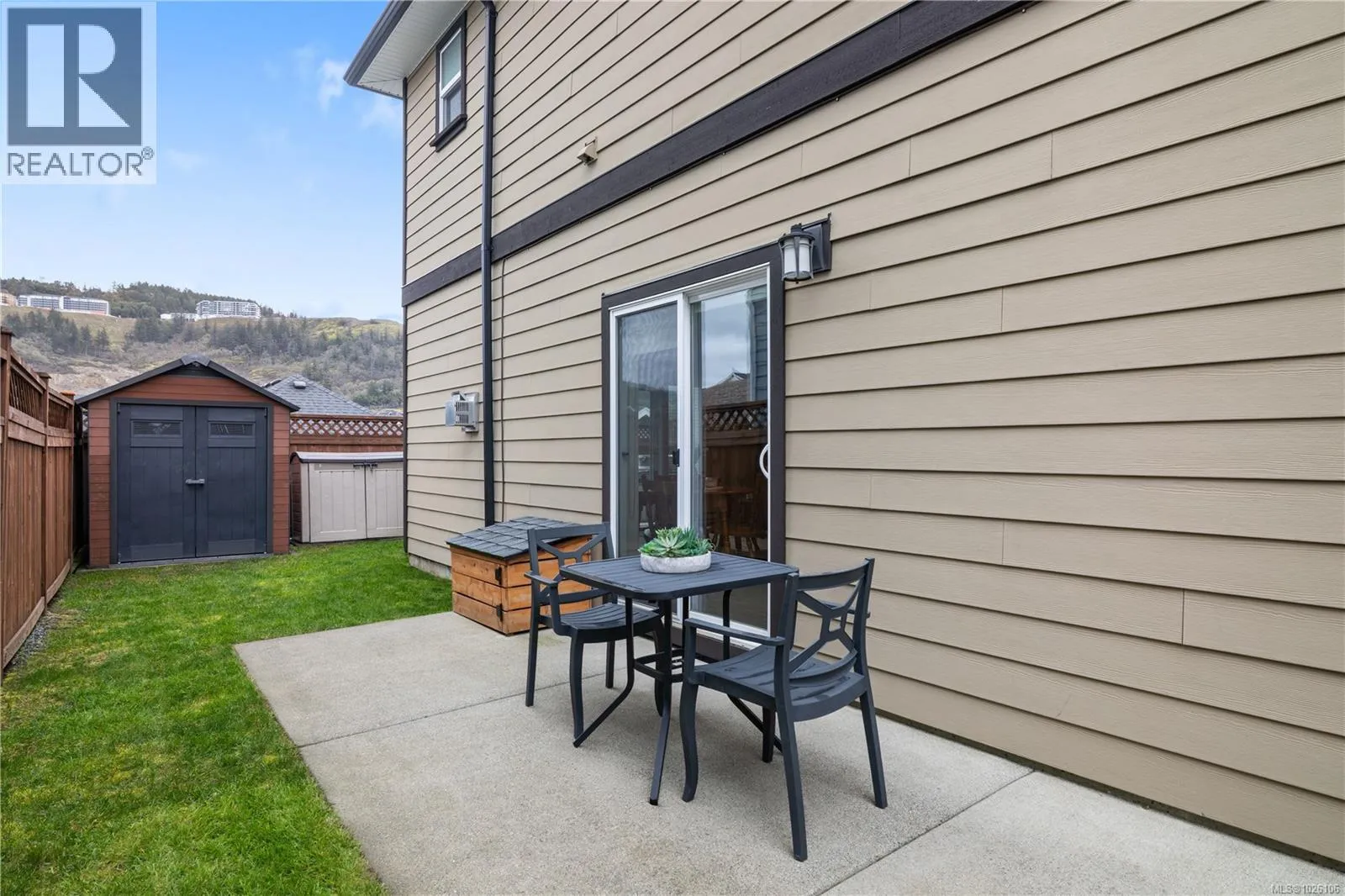 Welcome to 2952 Trestle Place. This well-cared-for Kettle Creek home offers just over 1,300 sq. ft. with 3 bedrooms, 3 bathrooms, an open-concept kitchen/living area, single garage, and a fully fenced yard. The main level features a bright inviting kitchen with granite countertops, wood cabinetry, stainless steel appliances, and a built-in garburator, complemented by engineered hardwood flooring. Step into your private yard with two patios, a custom timber-framed awning, and two garden sheds. Upstairs includes laundry, two full baths, and all bedrooms, including a generous primary with walk-in closet and ensuite. Additional features include central vacuum, 200-amp electrical, and underground sprinklers. Located in a family-oriented neighbourhood walking distance to Pexsisen Elementary & Centre Mountain Lellum Middle Schools close to Langford Lake, trails, the YMCA, and amenities. Truly a wonderful home. (id:27476)