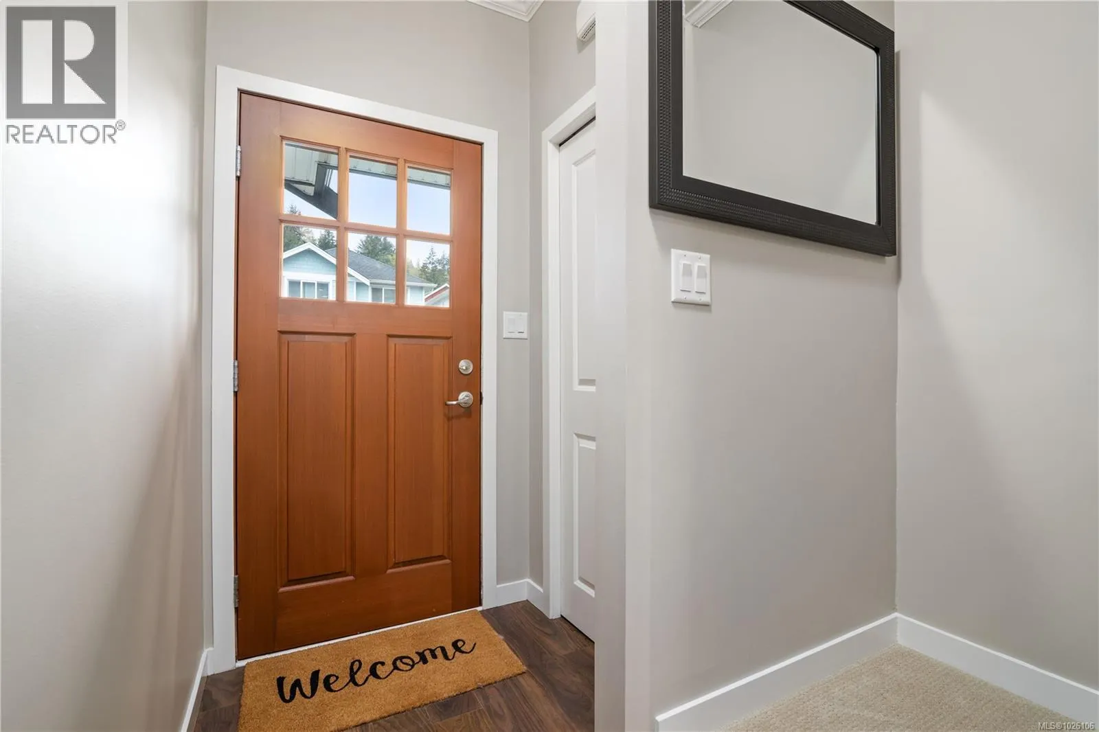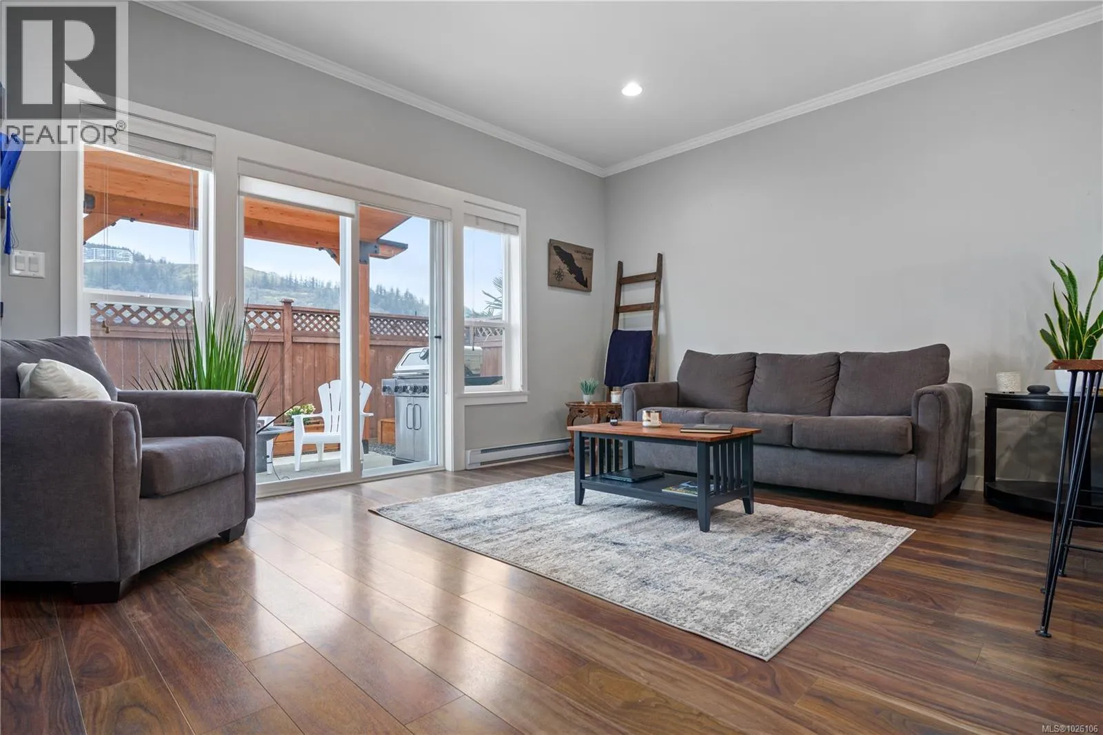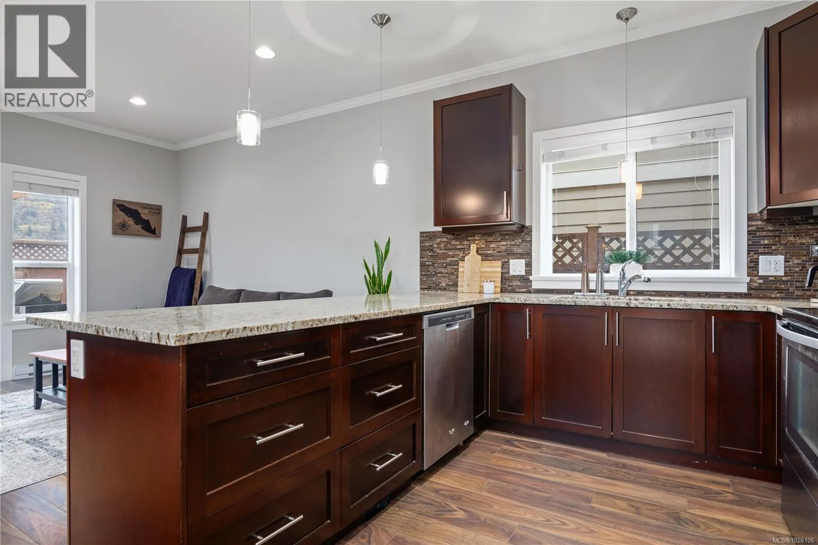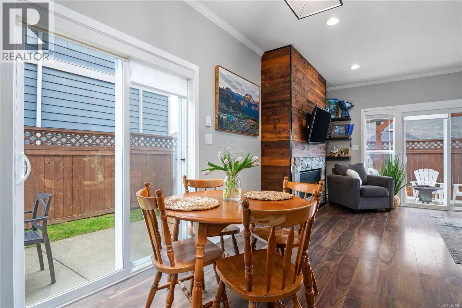Welcome to 2952 Trestle Place. This well-cared-for Kettle Creek home offers just over 1,300 sq. ft. with 3 bedrooms, 3 bathrooms, an open-concept kitchen/living area, single garage, and a fully fenced yard. The main level features a bright inviting kitchen with granite countertops, wood cabinetry, stainless steel appliances, and a built-in garburator, complemented by engineered hardwood flooring. Step into your private yard with two patios, a custom timber-framed awning, and two garden sheds. Upstairs includes laundry, two full baths, and all bedrooms, including a generous primary with walk-in closet and ensuite. Additional features include central vacuum, 200-amp electrical, and underground sprinklers. Located in a family-oriented neighbourhood walking distance to Pexsisen Elementary & Centre Mountain Lellum Middle Schools close to Langford Lake, trails, the YMCA, and amenities. Truly a wonderful home. (id:27476)