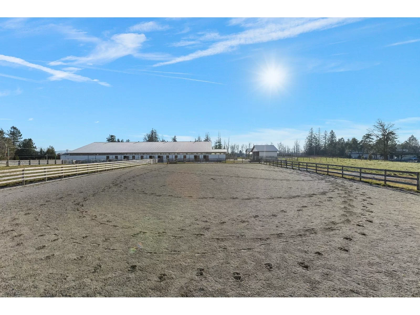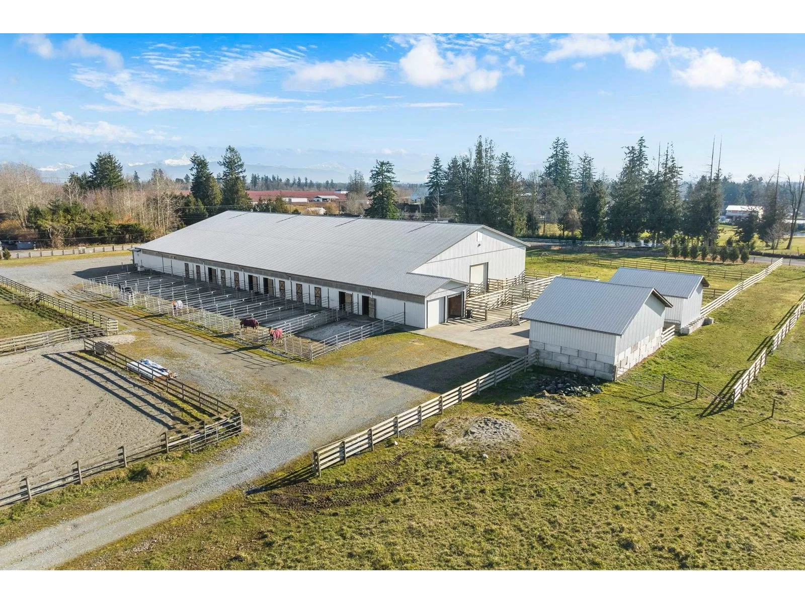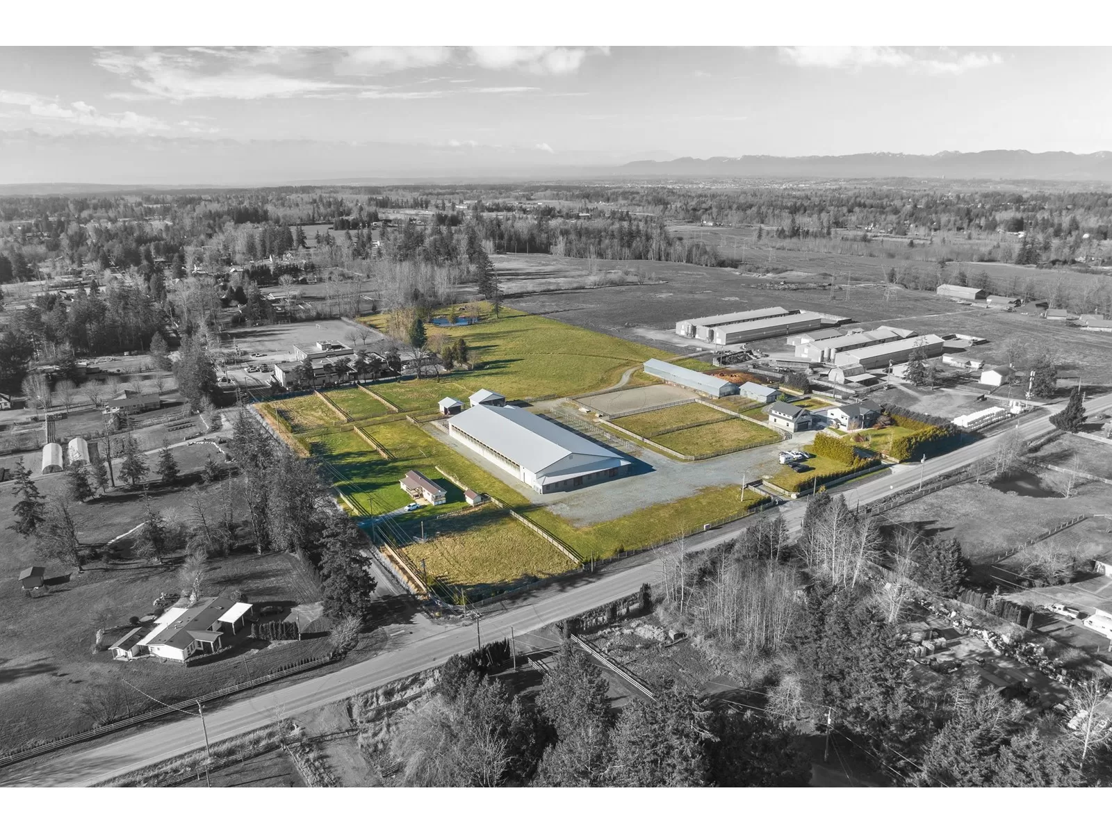 Exceptional Langley Equestrian Estate on 13.5 Acres! Frontage along 240th St. & 24th Ave, this custom-built facility features a 104' x 232' barn (2018) with an 80' x 200' indoor arena, 12 stalls (12' x 12'), heated tack rooms (1 public, 2 private), LED lighting, wash & grooming bays, washrooms, mechanical room, custom lounge & more. Each stall has split outside access to turnout pens. The 3,600 sq. ft. updated home boasts a pool & hot tub, plus a single-wide mobile home with private driveway. A 30' x 40' two-storey shop awaits your ideas. Additional barns provide extra space for horses and cattle, and two bunkers provide storage for manure and sawdust. Natural gas, electricity & a high-producing well (50+ GPM) service the property. You don't want to miss this one - call today! (id:27476)