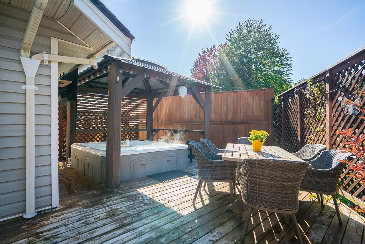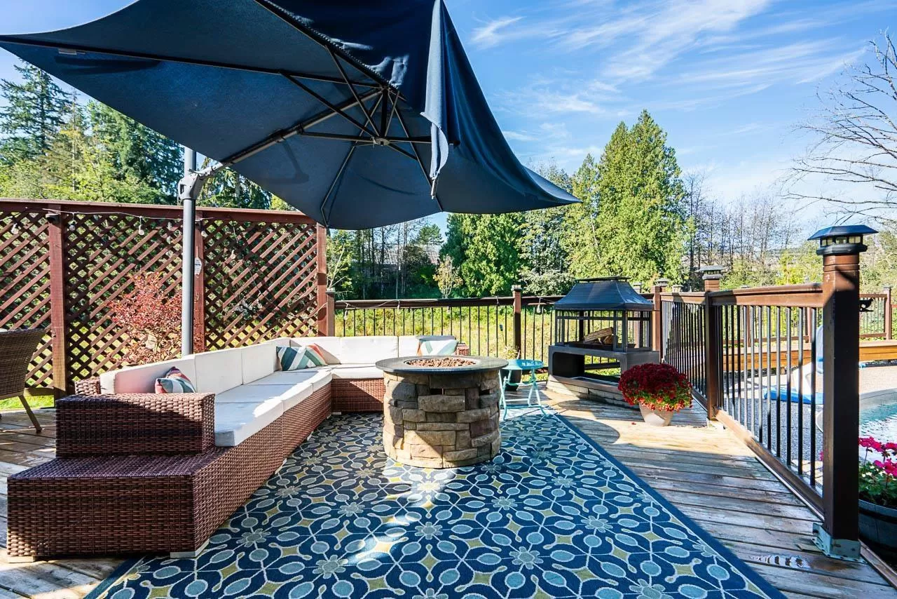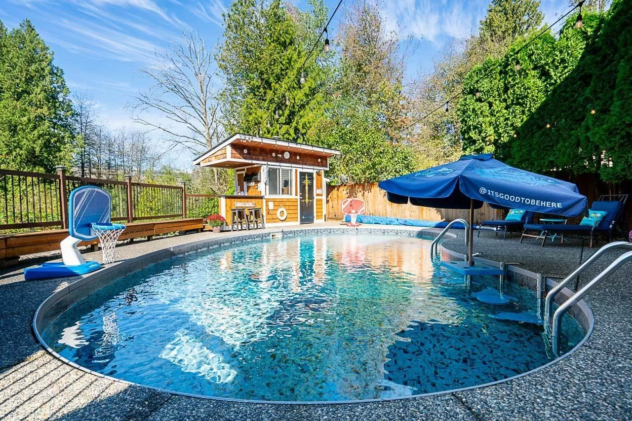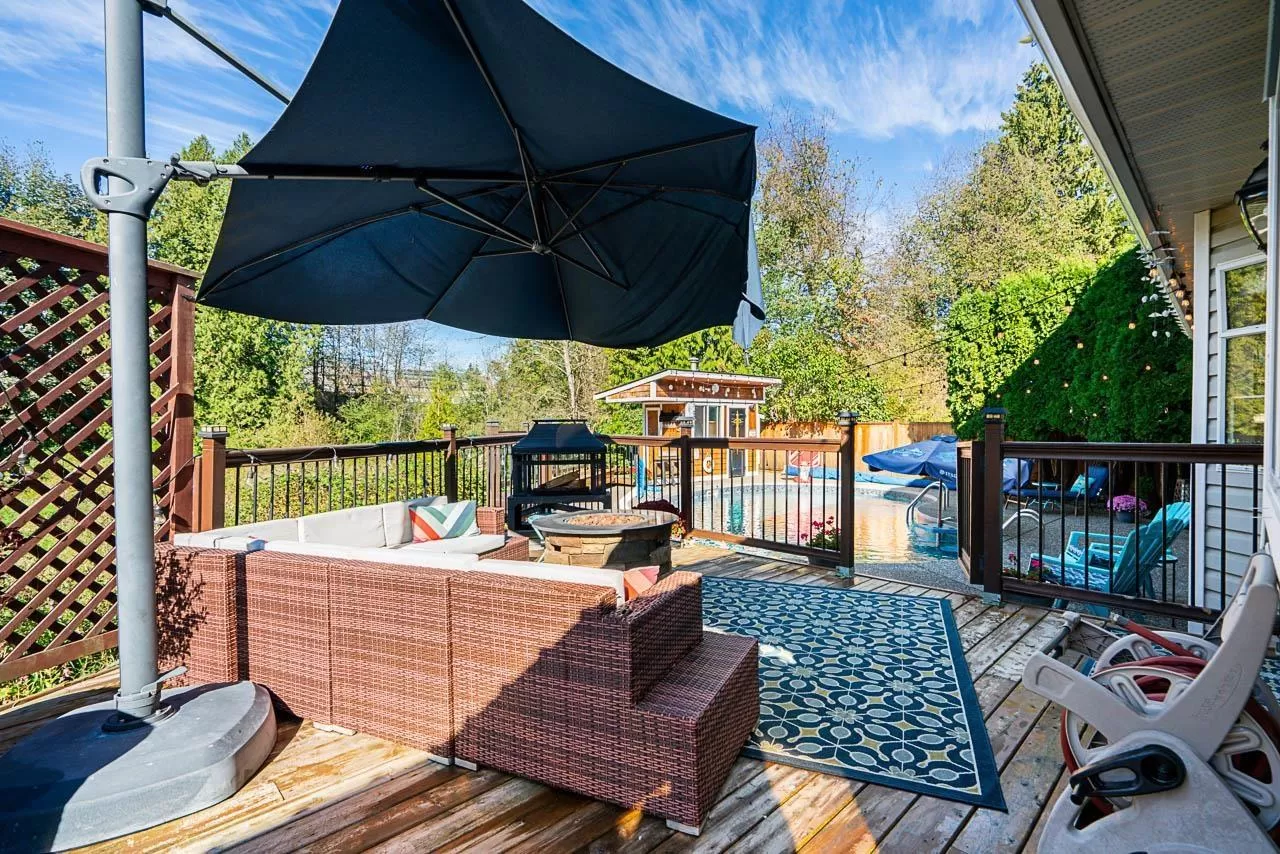 Entertainers Dream! Properties like this one rarely come on the market in Langley! This amazing 7079 sq ft cul-de-sac lot is backing onto picturesque greenbelt in desirable Walnut Grove with a beautiful open view of the creek. Private fully fenced backyard is completely redone with a resort like setting complete with 18x36 kidney shaped INGROUND POOL with a BRAND NEW LINER, newer HOT TUB and GAZEBO with built in bar, TV and huge wrap around deck. Sundeck is spacious with custom made benches by the pool and second BAR with built-in fridge & seating area. This beautiful and spacious family home is freshly renovated with 4 bedrooms up, large master bedroom has brand new spa like master bath, custom made kitchen with tons of storage, SS appliances and Air Conditioning. This house has it all! (id:27476)