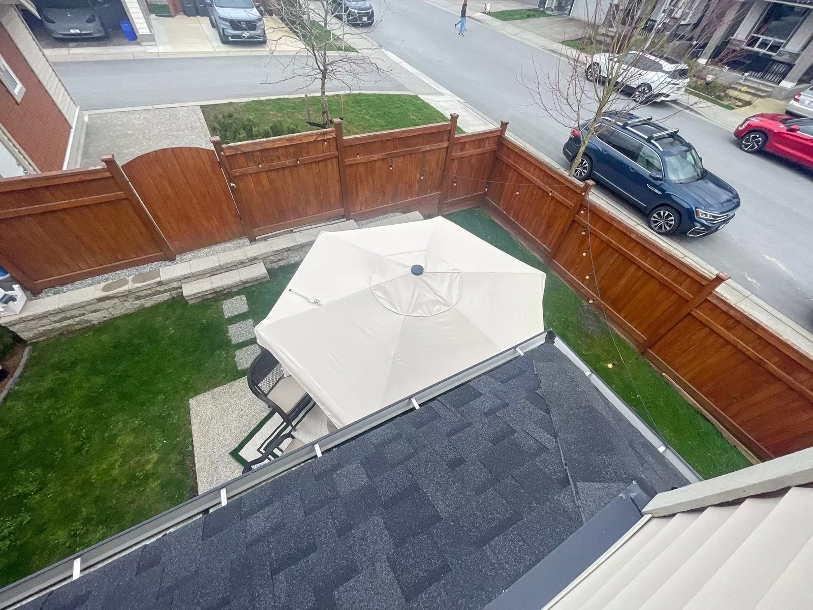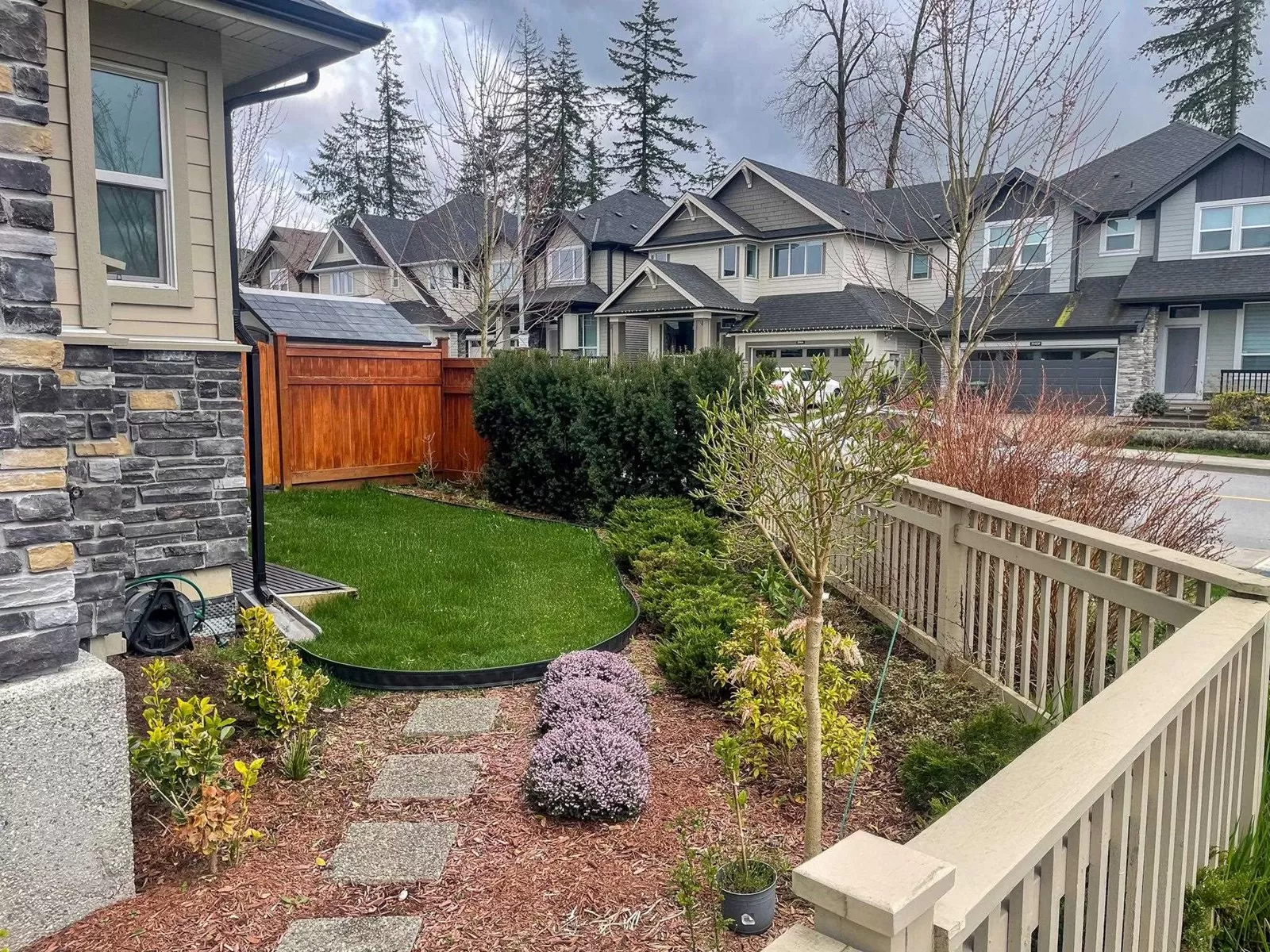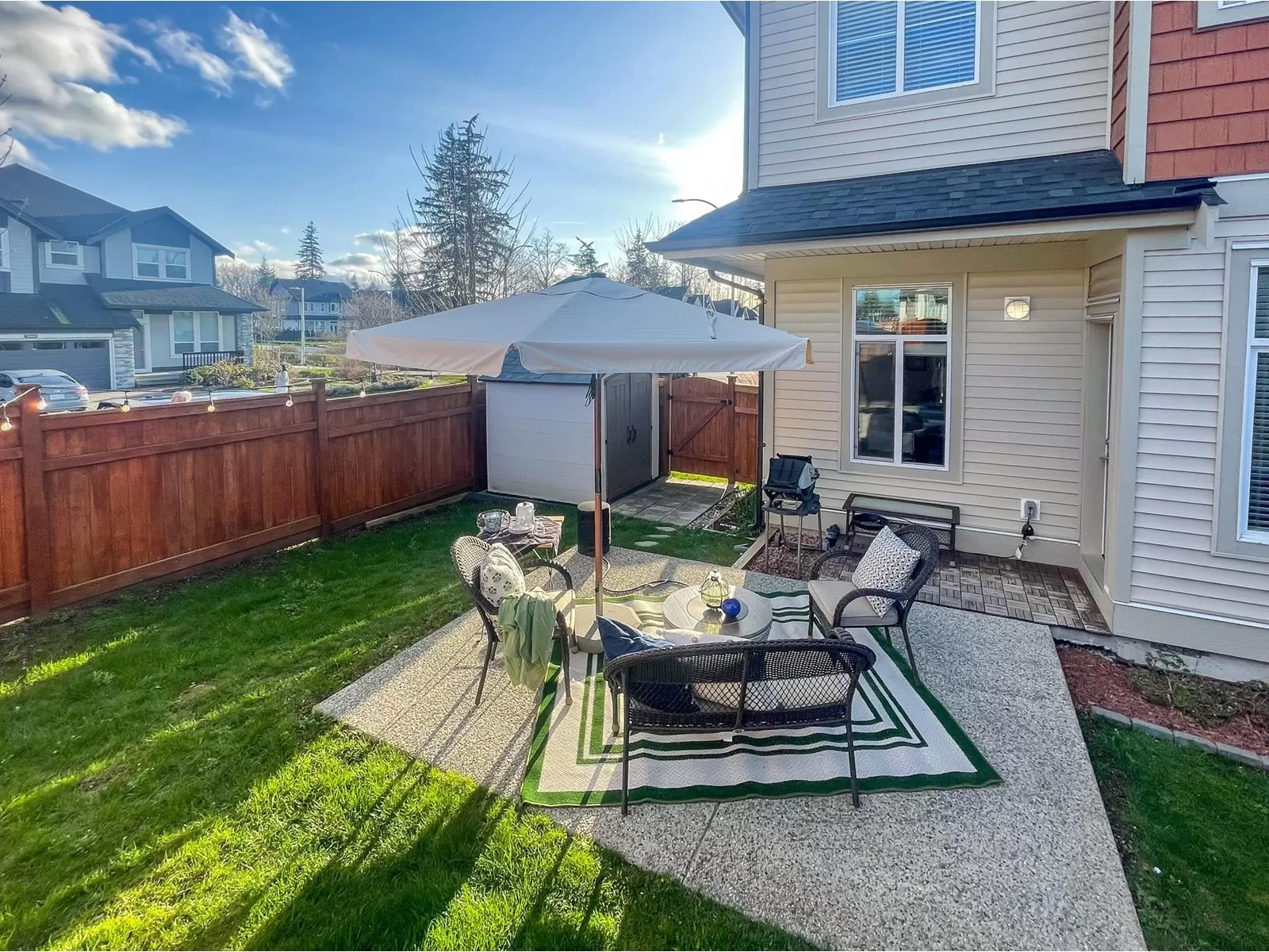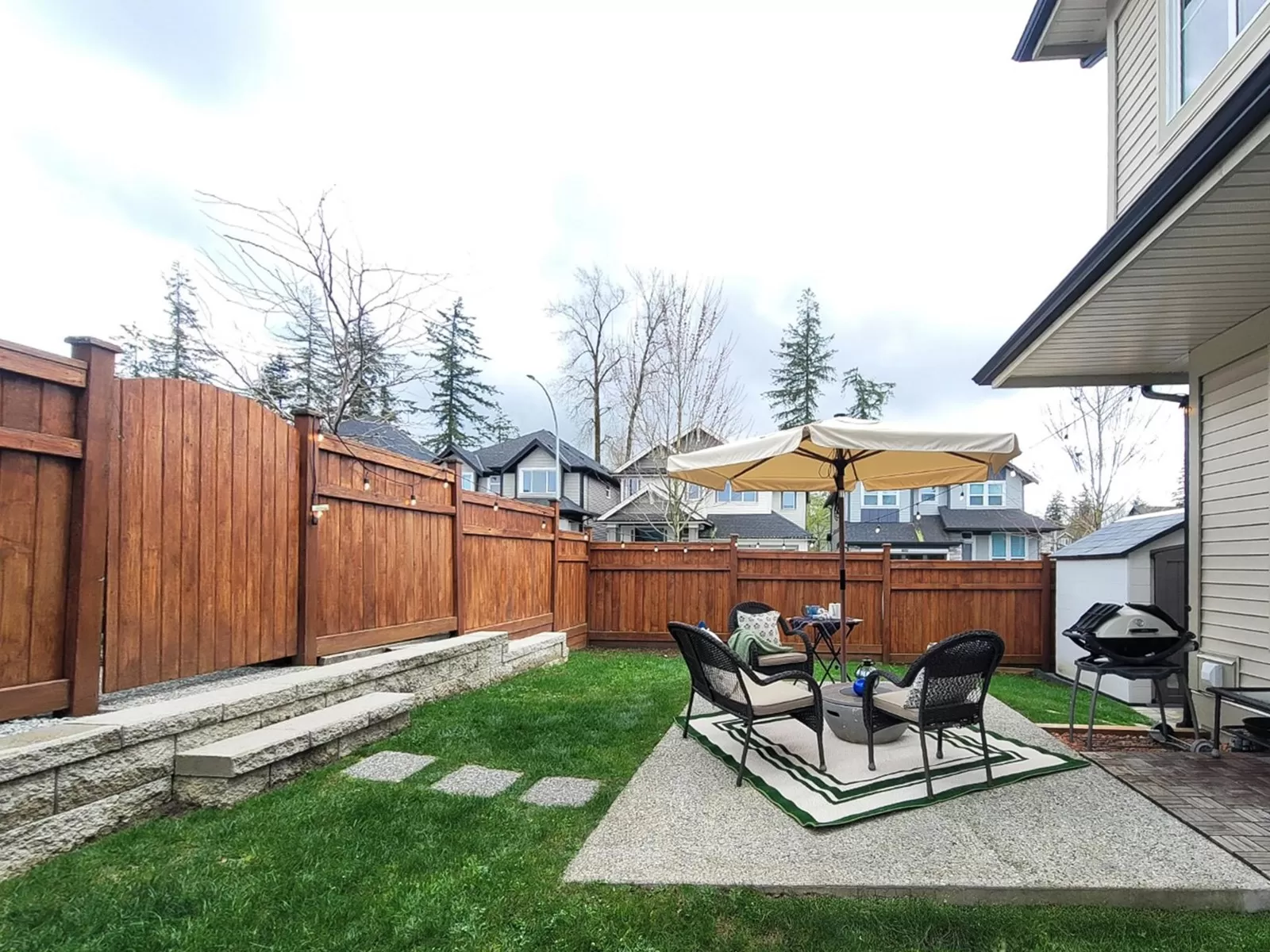 Charming Non-Strata FOXRIDGE Duplex Home. Luxury private Duplex home offers "RARE Huge! private backyard" on 3454sf lot like detached house!! featuring 4 spacious bedrooms, 3.5 bathrooms over 2,200 sqft floor space. Bright, open-concept gourmet kitchen, adorned with quartz countertops, a gas stove, sleek stainless steel appliances, a pantry. Year-round comfort with high powered air conditioning. Well-landscaped big backyard offers relaxing country style setting without obstruction with neighbors, completed with patio and storage shed. . Good size basement is a true gem, showcasing a large recreational room, an additional bedroom, a full bath, and storage. Many upgrades purchased directly from the builder. Just steps from schools,shopping and community center. Open House 11/8 (Sat) 2-4PM. (id:27476)
