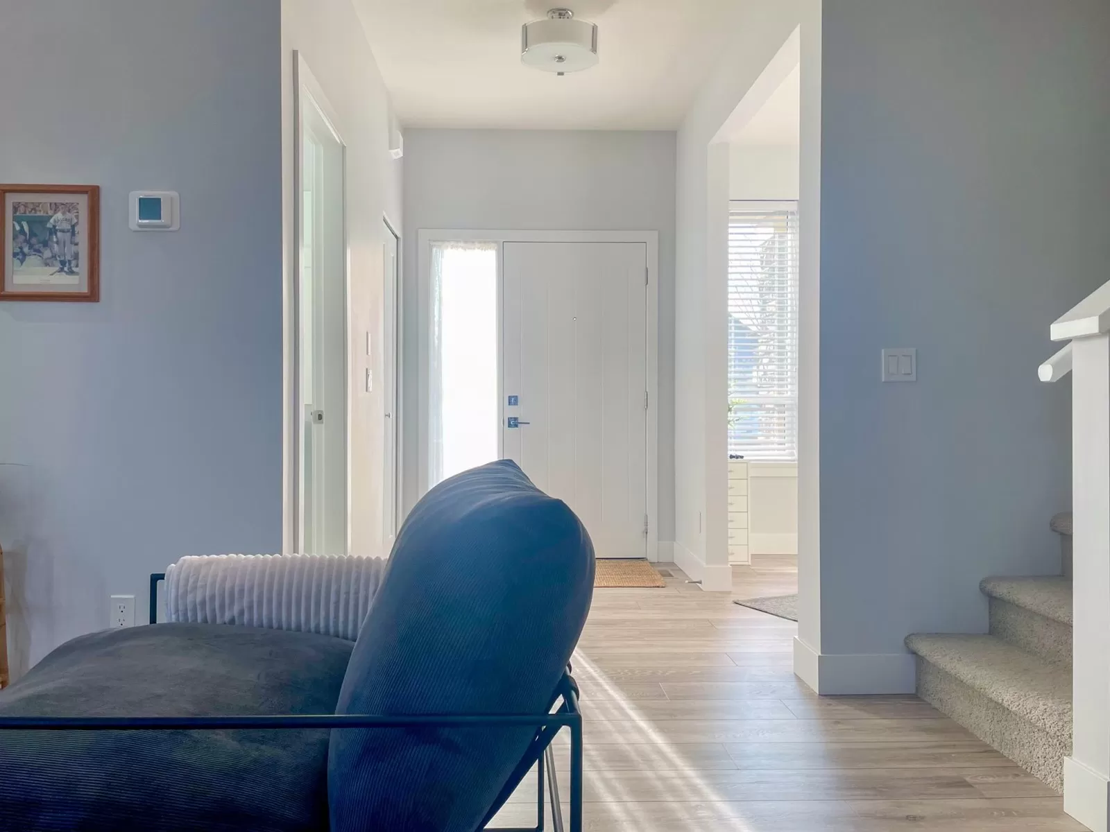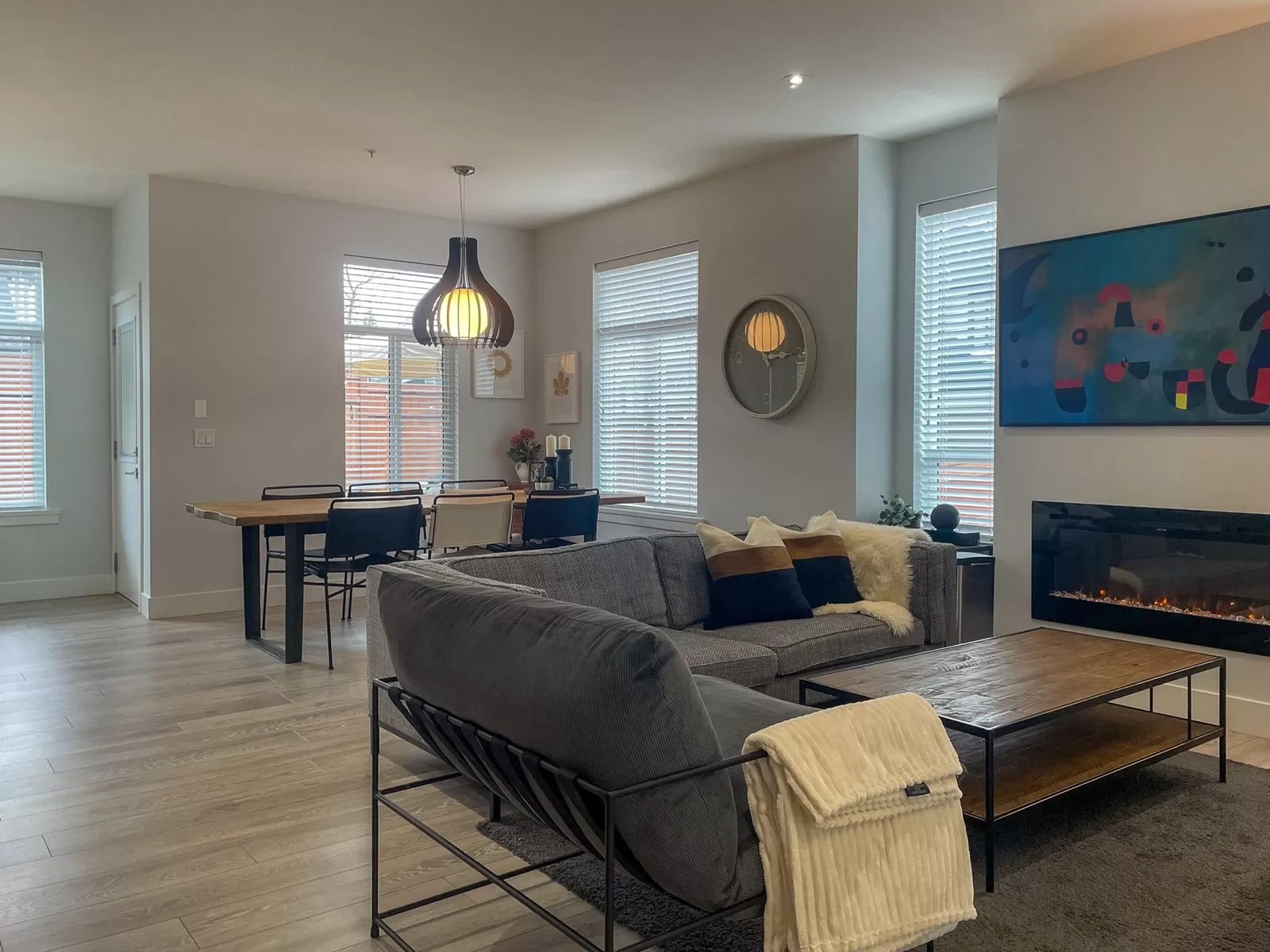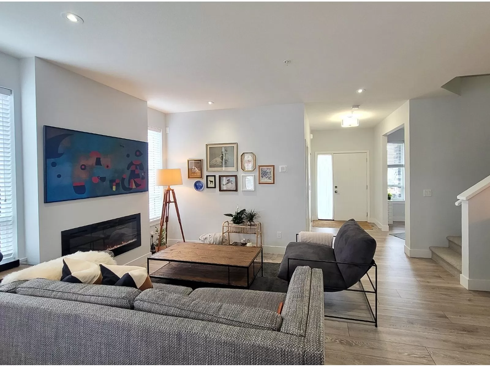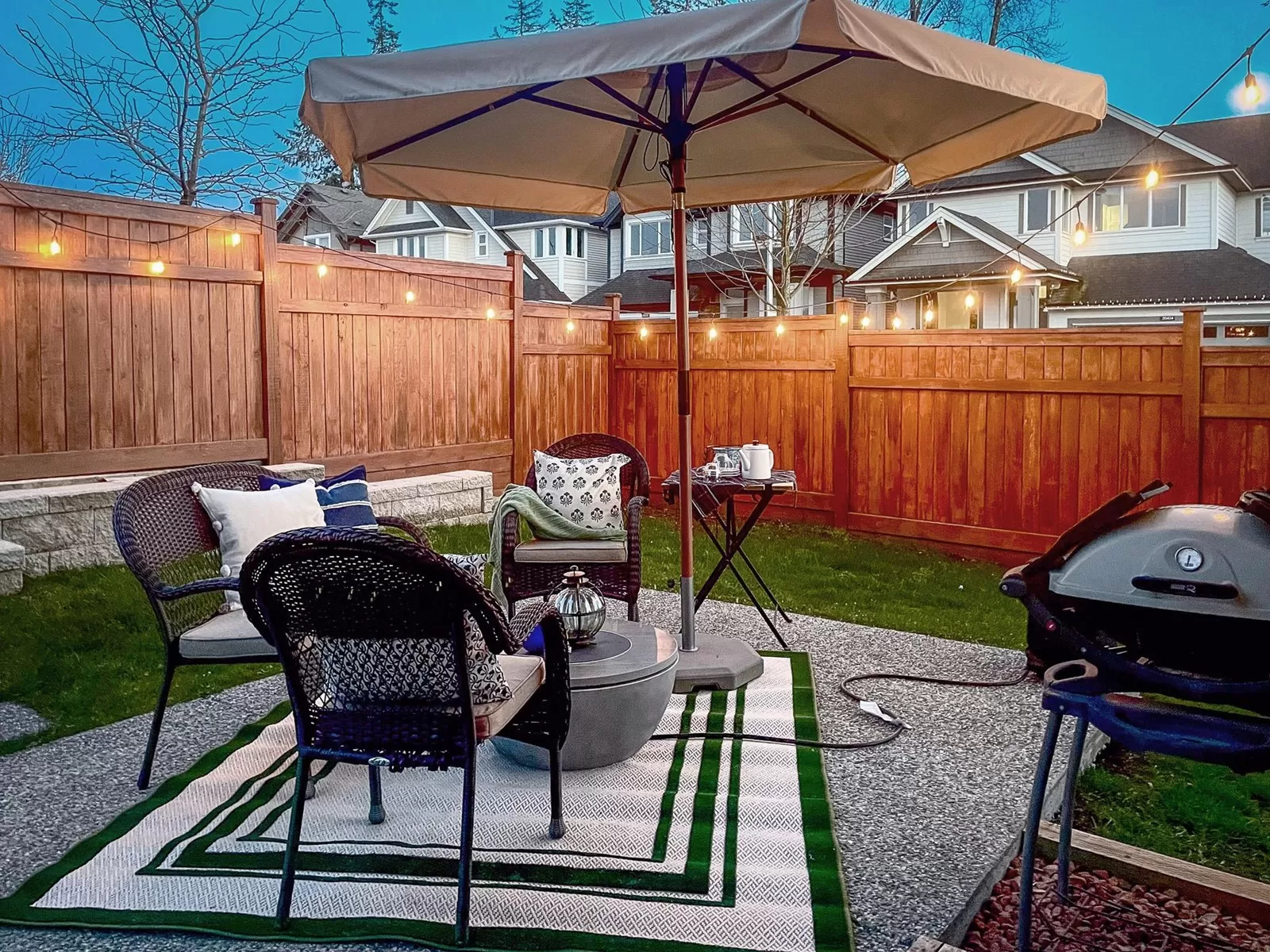 Charming Non-Strata FOXRIDGE Duplex Home. Luxury private Duplex home offers "RARE Huge! private backyard" on 3454sf lot like detached house!! featuring 4 spacious bedrooms, 3.5 bathrooms over 2,200 sqft floor space. Bright, open-concept gourmet kitchen, adorned with quartz countertops, a gas stove, sleek stainless steel appliances, a pantry. Year-round comfort with high powered air conditioning. Well-landscaped big backyard offers relaxing country style setting without obstruction with neighbors, completed with patio and storage shed. . Good size basement is a true gem, showcasing a large recreational room, an additional bedroom, a full bath, and storage. Many upgrades purchased directly from the builder. Just steps from schools,shopping and community center. Open House 11/8 (Sat) 2-4PM. (id:27476)
