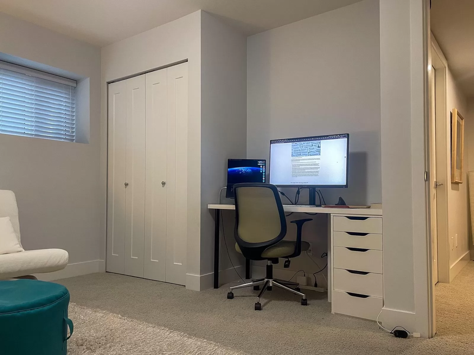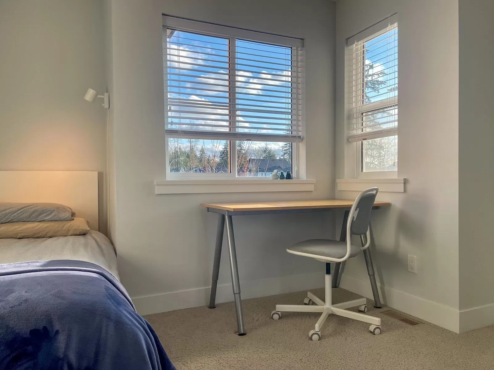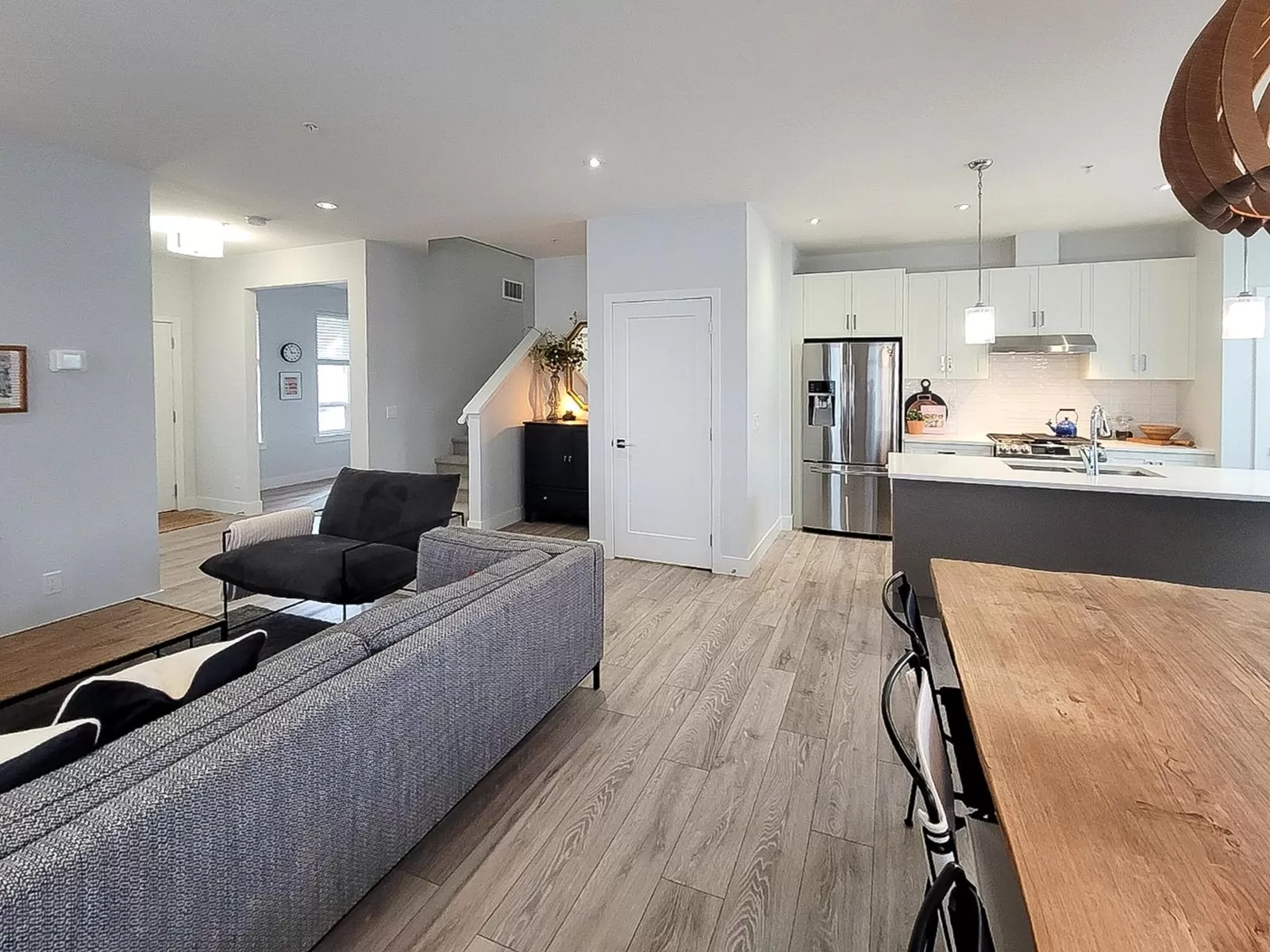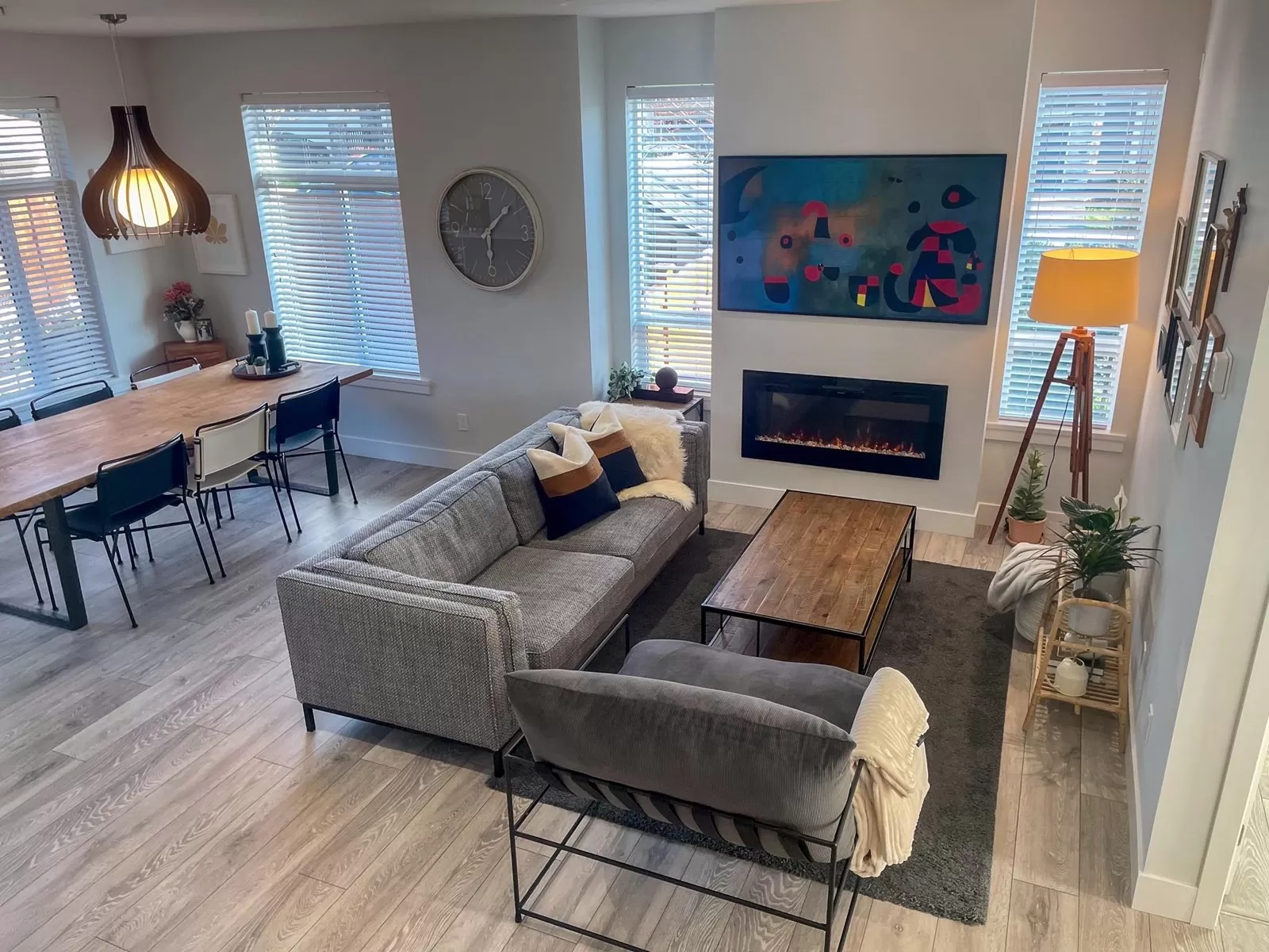 Charming Non-Strata FOXRIDGE Duplex Home. Luxury private Duplex home offers "RARE Huge! private backyard" on 3454sf lot like detached house!! featuring 4 spacious bedrooms, 3.5 bathrooms over 2,200 sqft floor space. Bright, open-concept gourmet kitchen, adorned with quartz countertops, a gas stove, sleek stainless steel appliances, a pantry. Year-round comfort with high powered air conditioning. Well-landscaped big backyard offers relaxing country style setting without obstruction with neighbors, completed with patio and storage shed. . Good size basement is a true gem, showcasing a large recreational room, an additional bedroom, a full bath, and storage. Many upgrades purchased directly from the builder. Just steps from schools,shopping and community center. Open House 11/8 (Sat) 2-4PM. (id:27476)