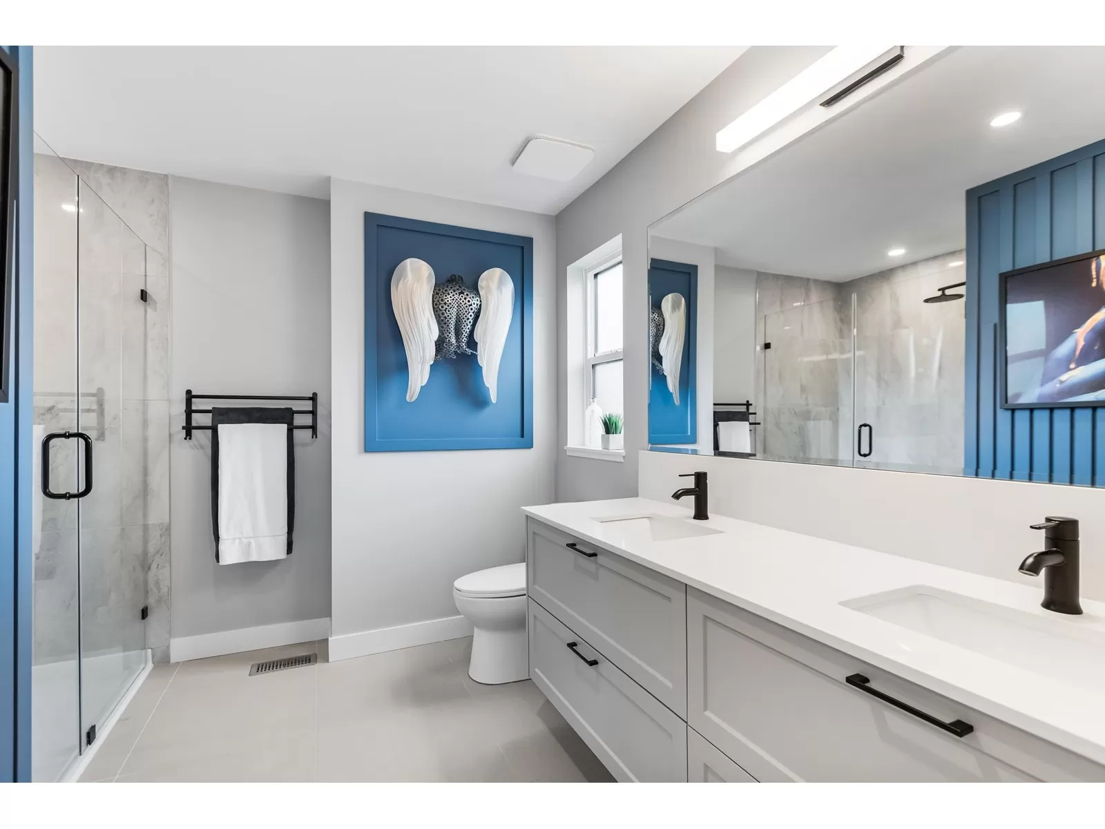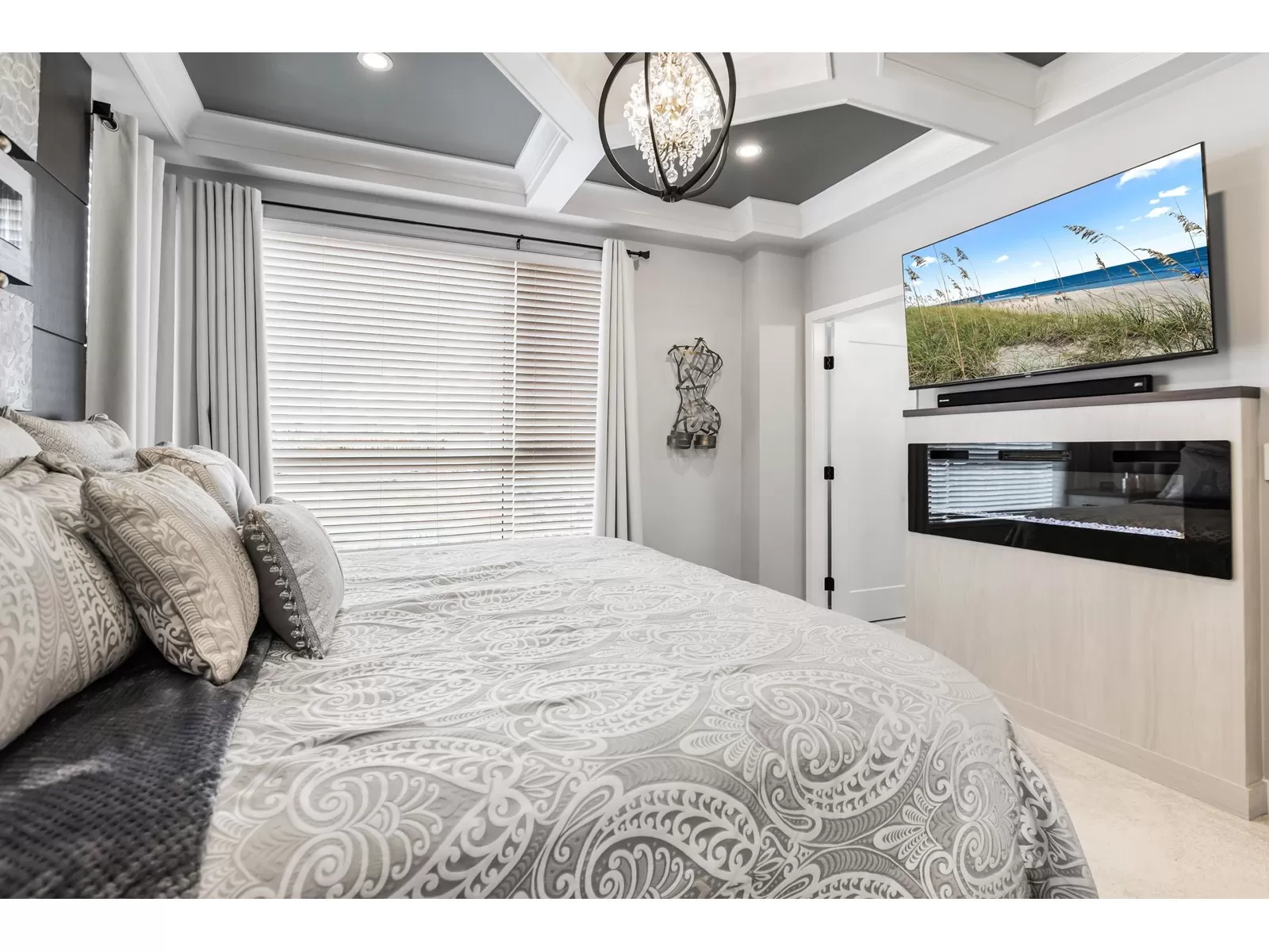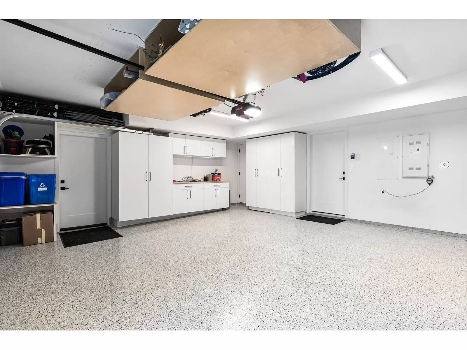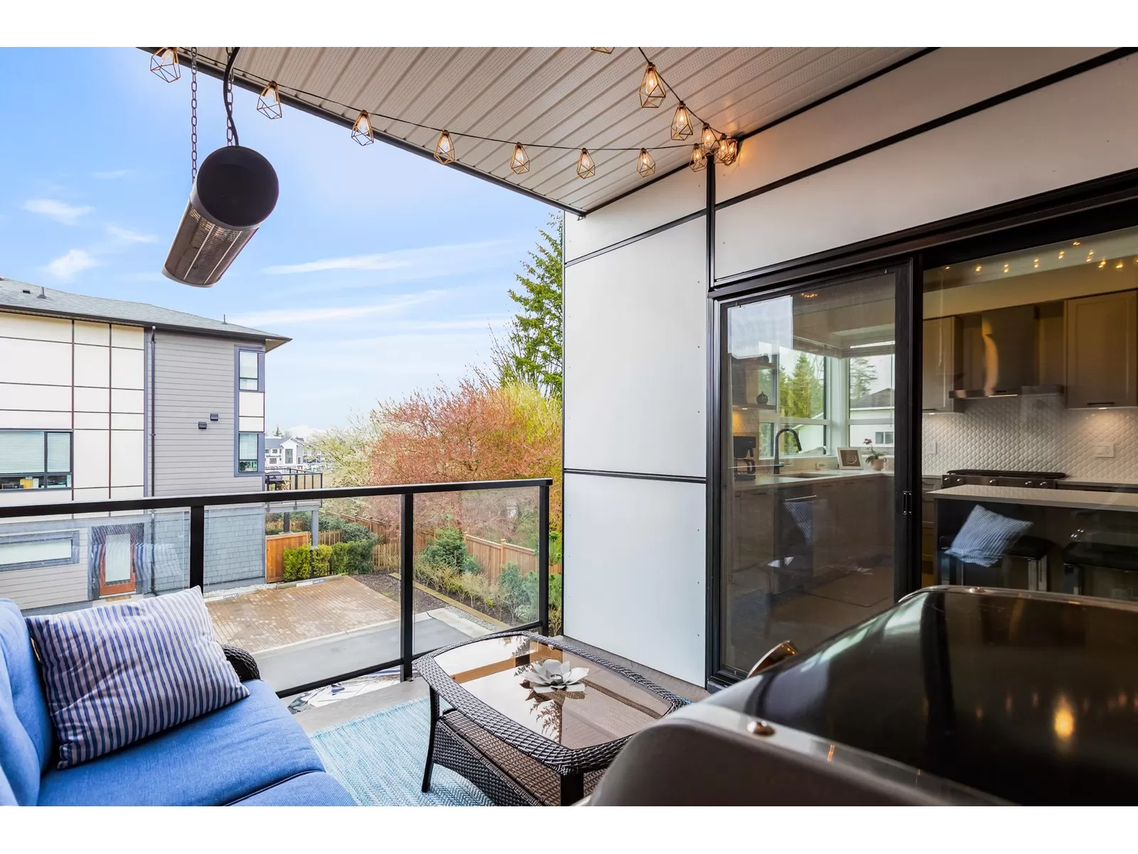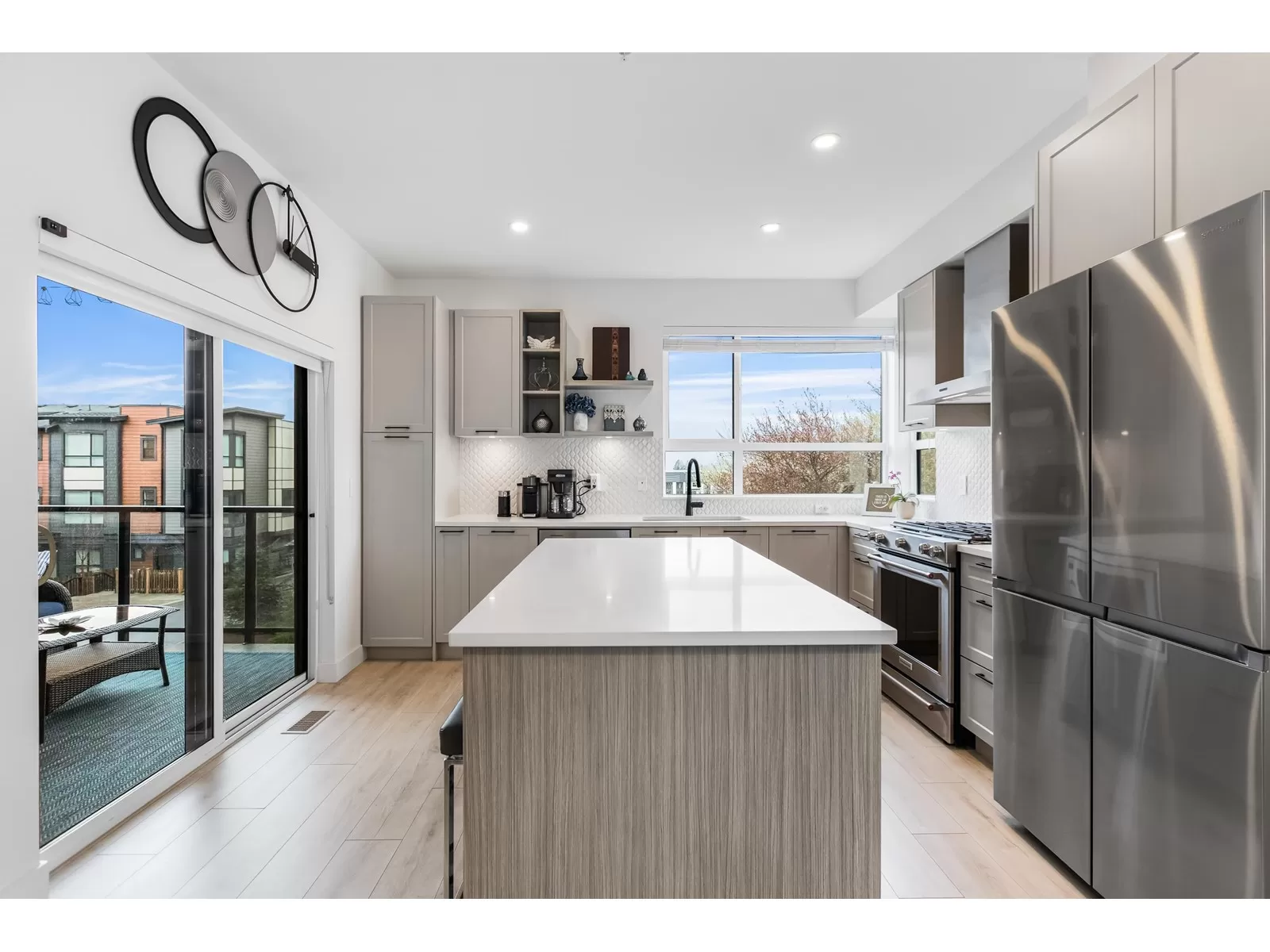 Welcome to Verge, a stunning end-unit townhouse built in 2023, offering show home quality finishes throughout. This 3-bedroom home features air conditioning and a lower-floor office complete with built-in desk and cabinetry. The open-concept main floor boasts a gourmet kitchen with a large island, built-in microwave, gas stove, stainless steel appliances, and abundant cabinetry & counter space. The dining area is enhanced with built-in cabinetry and a light-up wine display, while the living room showcases a feature wall and electric fireplace. Upstairs, the primary bedroom exudes elegance with a coffered ceiling, wall paneling, chandelier, electric fireplace, and a walk-in closet with full cabinetry. The luxurious 4-piece ensuite includes double sinks and a large stand-up shower. Two additional generous-sized bedrooms and a 4-piece bathroom with tub complete the upper level. The large double garage offers textured flooring, cabinetry, and shelving. Ideally located in Langley, close to all amenities (id:27476)
