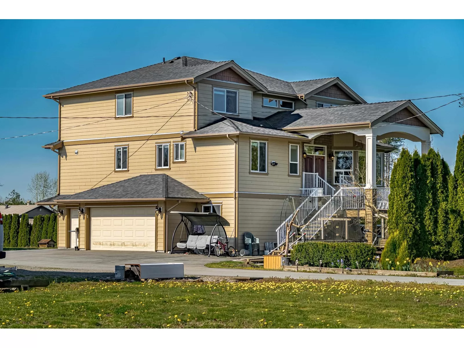 A stunning 3 storey home, last of its kind, located in the heart of Langley. Built with the finest craftsmanship. Designed for complete usability, bright & open concept, crafted to be roomy & comfortable with practicality in mind. The amazing home is nestled on flat 5+ acres of beautiful land, offering top quality soils allowing unlimited potentials as a hobby farm/ the perfect location for some serious farming. The property has plenty of fruit trees/ vegetables, & perfect location to raise farm animals. The property offers abundances of both indoor/outdoor space. Comes with 4800sqft recently built workshop constructed with the finest materials/ design. Property also has a Greenhouse, carport/ detached storage & much more! Close to shopping, schools, easy highway access. Don't Miss Out! (id:27476)