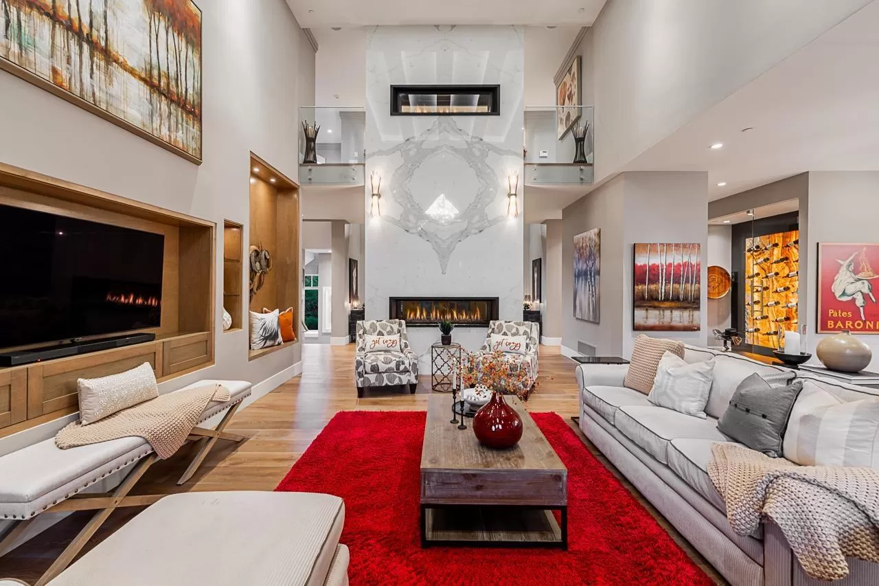 Magnificent custom-built 8,000sqft High Point Estates residence with panoramic Mountain Views. Custom designed gates and a resort-style entrance welcome the most discerning buyer to this 6-bedroom residence, including 2 opulent primary suites. Featuring a dream kitchen with spice/prep areas, walk-in pantry, glowing wine wall, and a dramatic great room with double-stacked fireplaces opening to a private backyard oasis with rooftop putting green. Upstairs offers 4-ensuited bedrooms including a luxurious primary suite and sunset balcony. Impressive lower level with theatre, gym, recreation and game rooms, sports bar, sauna, and bedroom with suite potential. Control4, A/C, dual radiant/forced air heat, generator plus double+triple garages complete this exceptional home. (id:27476)