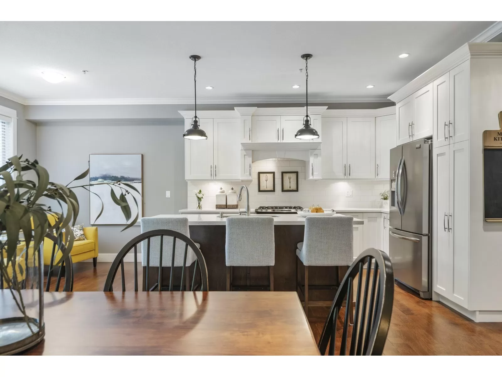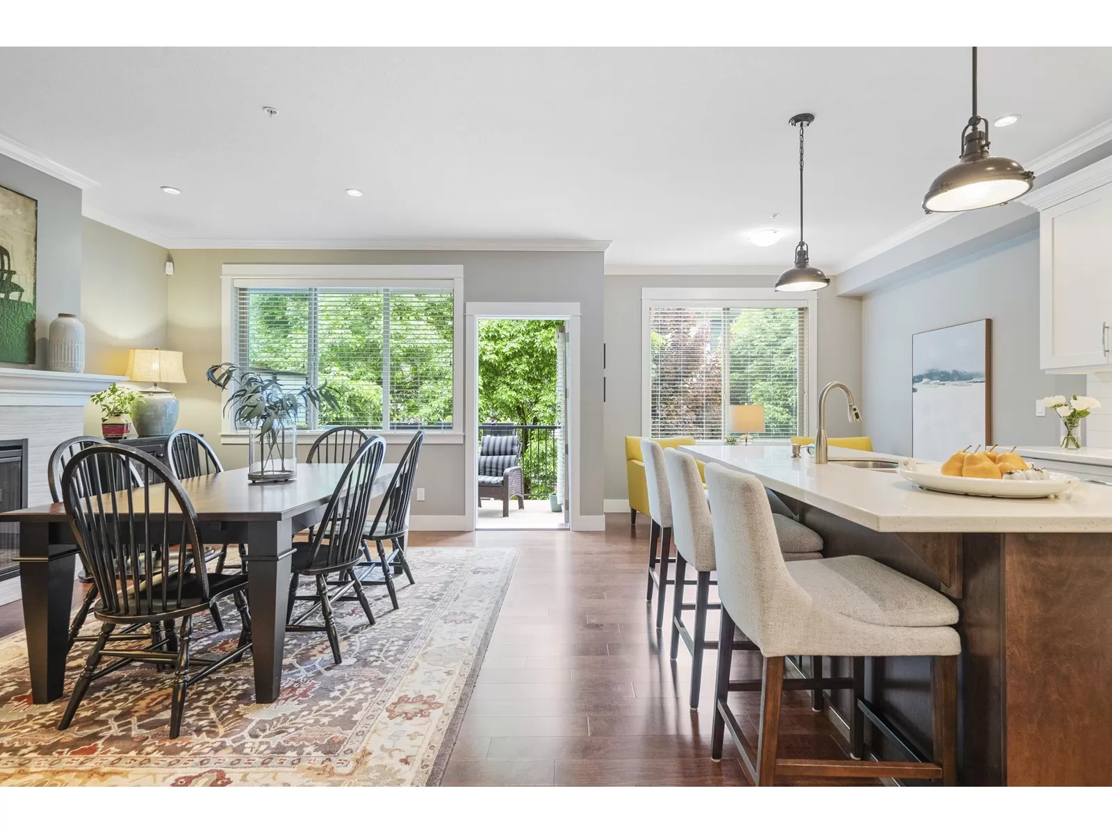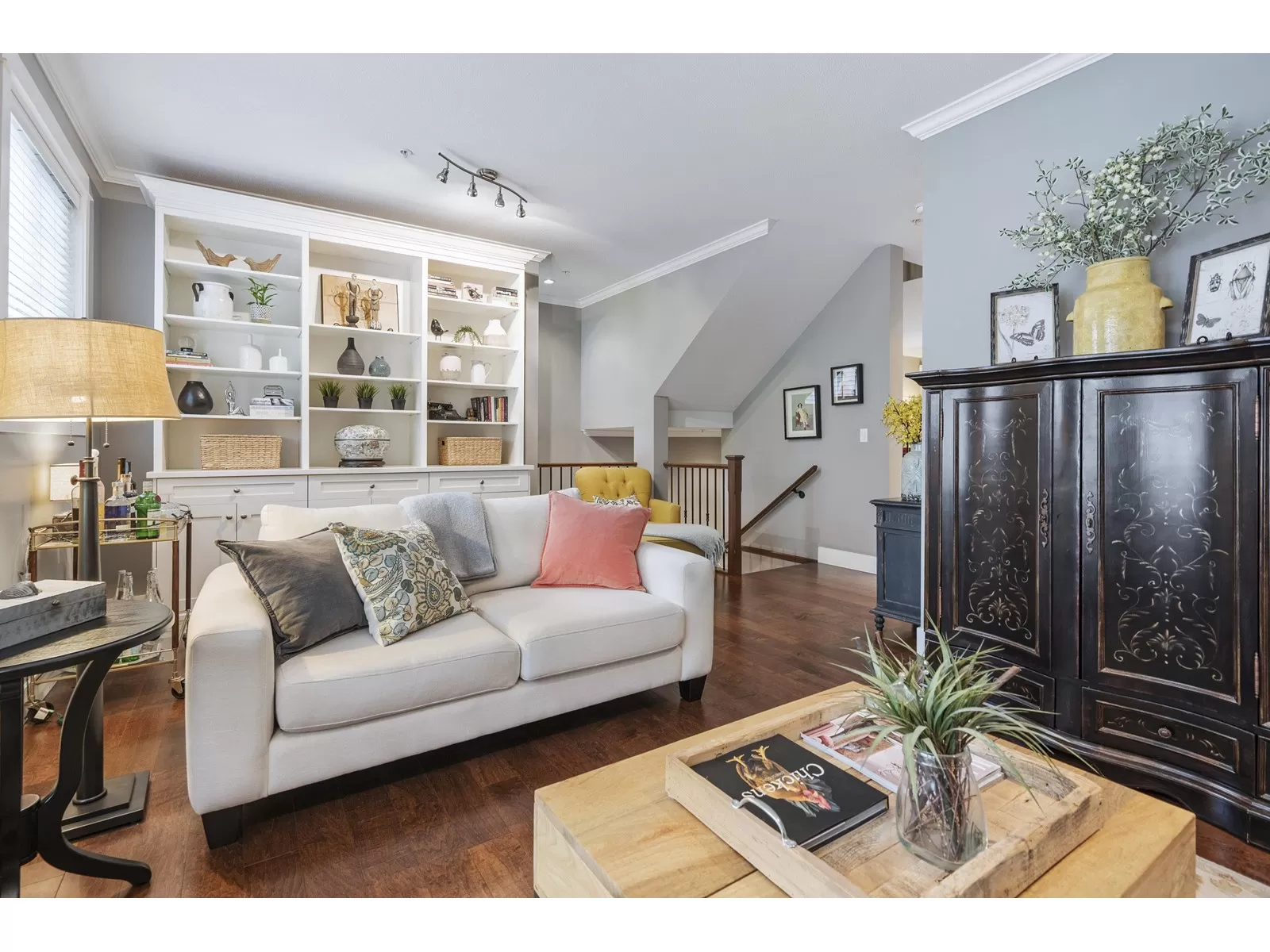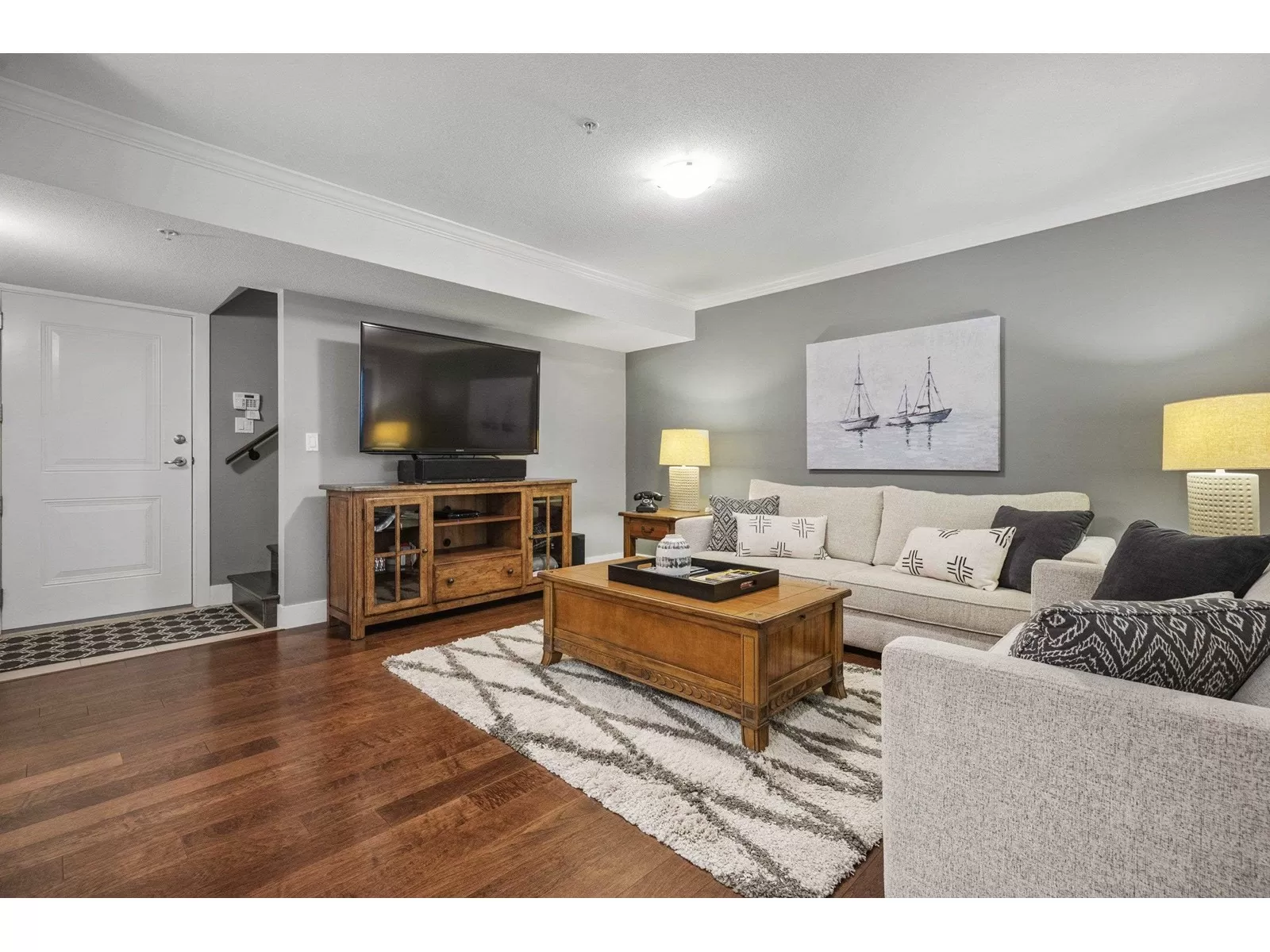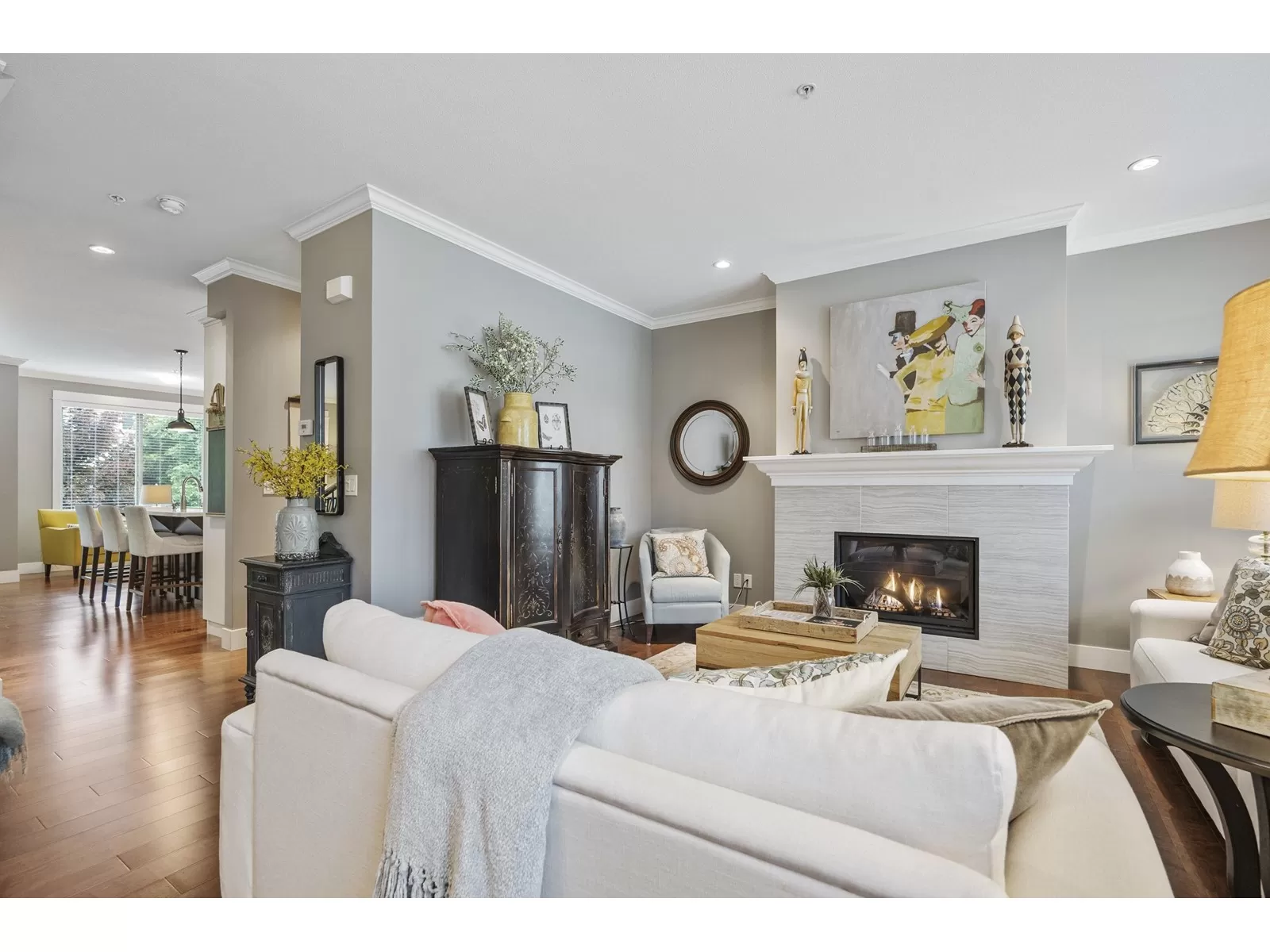 WELCOME HOME to this executive townhouse, 2300+ sq ft, located in Woodrow Lane, built by Lanstone Homes, lovingly maintained and meticulously updated with hi-end finishings. This 3-level, 3 bedroom, 4 bathroom home boasts stunning hardwood flooring, crown molding, built in units and stainless steel appliances, along with quartz counters. Enjoy the 2 cozy gas fireplaces and flexible space in the basement with the option to add a wall and create a 4th bedroom. Upstairs features a large primary bedroom with luxury en-suite and a spacious walk in closet; and a laundry room is located on the top floor for ease. Enjoy the deck off the main floor or the fully fenced backyard accessed from the basement family room. DOUBLE SIDE BY SIDE GARAGE + 2 spots on driveway. 5 mins to Fort Langley! (id:27476)
