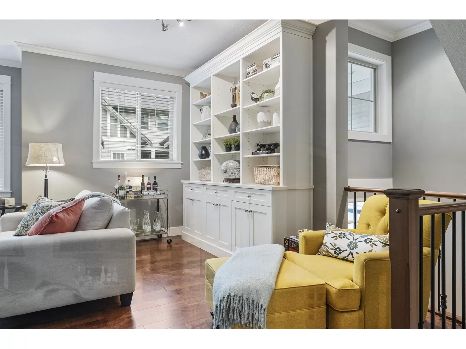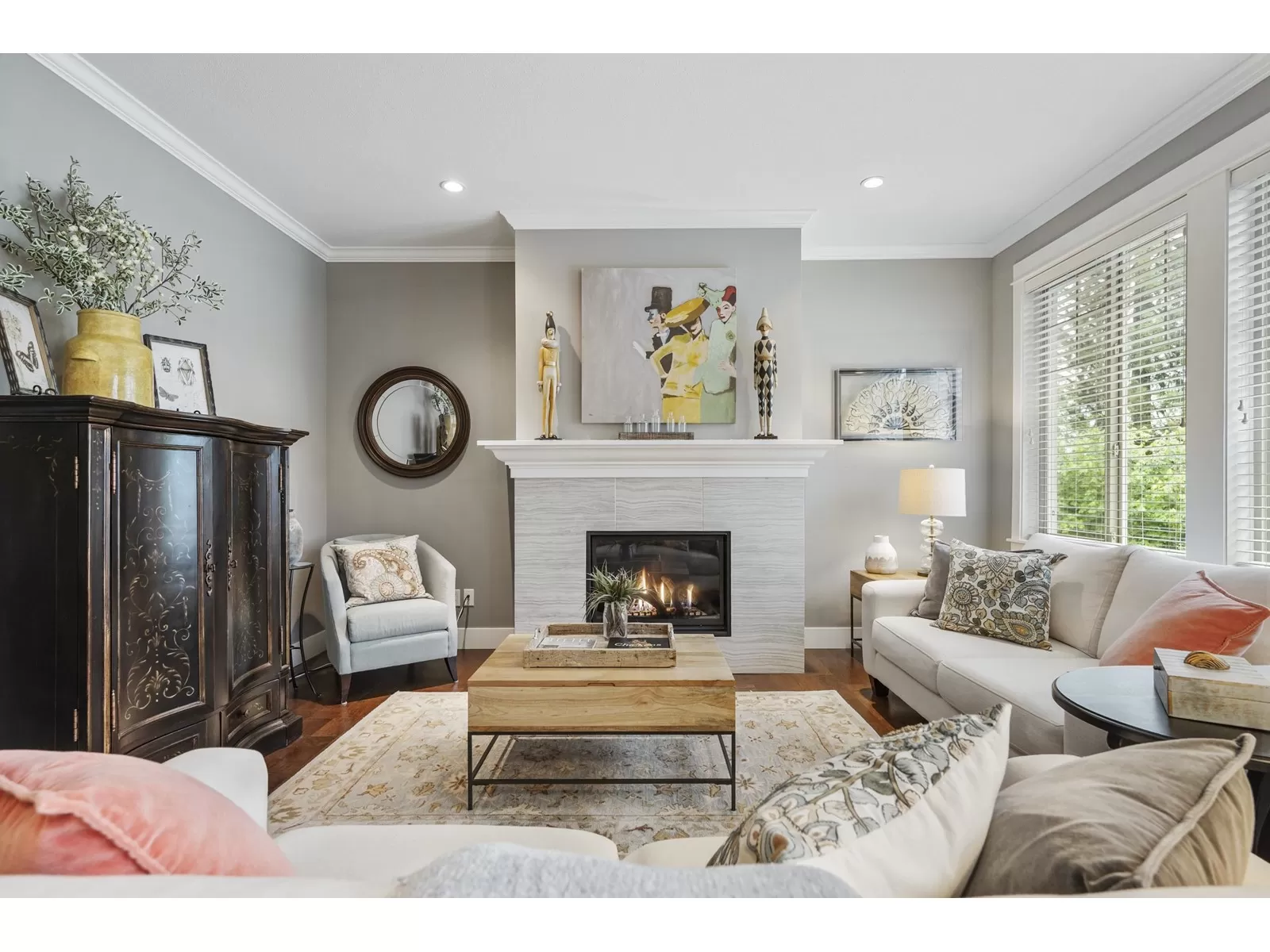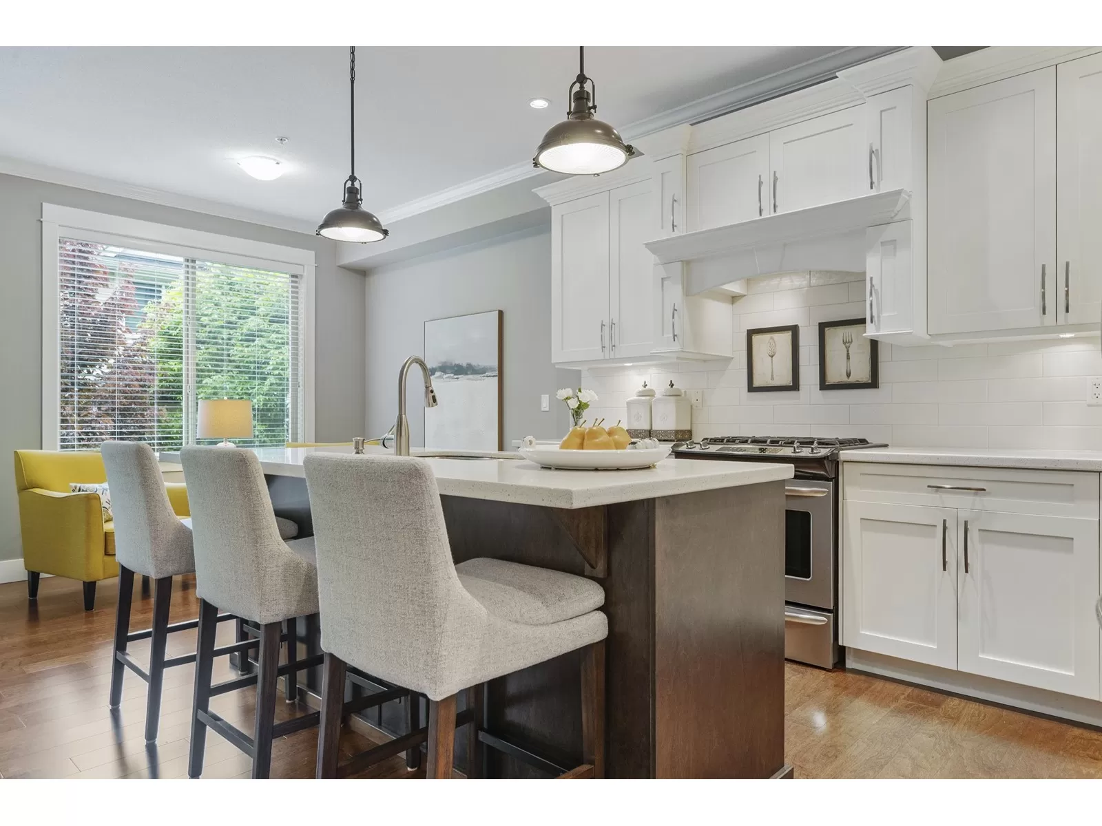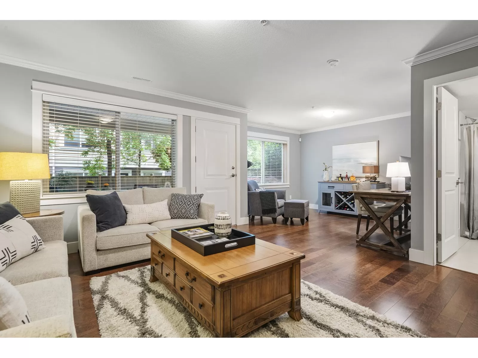 WELCOME HOME to this executive townhouse, 2300+ sq ft, located in Woodrow Lane, built by Lanstone Homes, lovingly maintained and meticulously updated with hi-end finishings. This 3-level, 3 bedroom, 4 bathroom home boasts stunning hardwood flooring, crown molding, built in units and stainless steel appliances, along with quartz counters. Enjoy the 2 cozy gas fireplaces and flexible space in the basement with the option to add a wall and create a 4th bedroom. Upstairs features a large primary bedroom with luxury en-suite and a spacious walk in closet; and a laundry room is located on the top floor for ease. Enjoy the deck off the main floor or the fully fenced backyard accessed from the basement family room. DOUBLE SIDE BY SIDE GARAGE + 2 spots on driveway. 5 mins to Fort Langley! (id:27476)