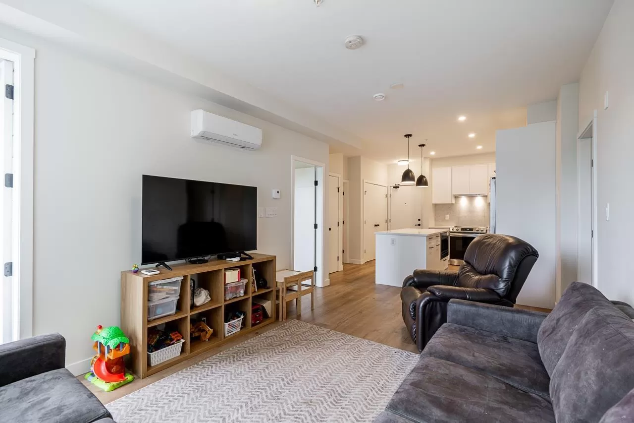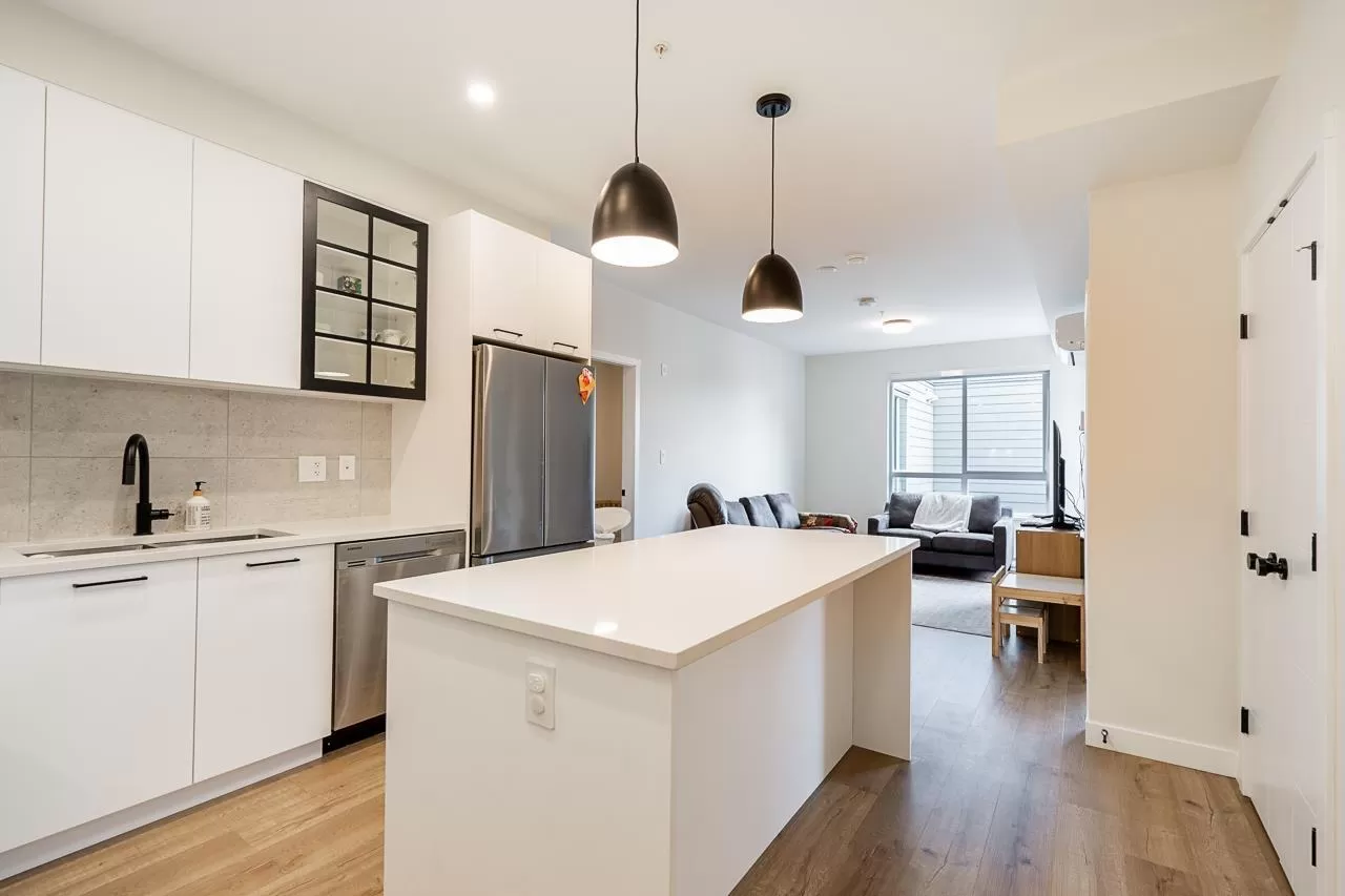 Eastin by Essence Properties is located in the heart of Langley's Willoughby neighborhood & offers modern features like an automated locker system for Amazon deliveries & "1Valet" enter phone system w/ facial recognition! The timeless classic brick, concrete & cedar exterior has a true West coast vibe. This 2 bedrooms & 1 bathroom will give you everything you are looking for. The Kitchen comes with rarely seen huge island and tons of cabinet storage. The stylish design including quartz counters, accent glass cabinets, matte black hardware. Two spacious bedrooms. 1 PARKING 1 LOCKER included. (id:27476)
