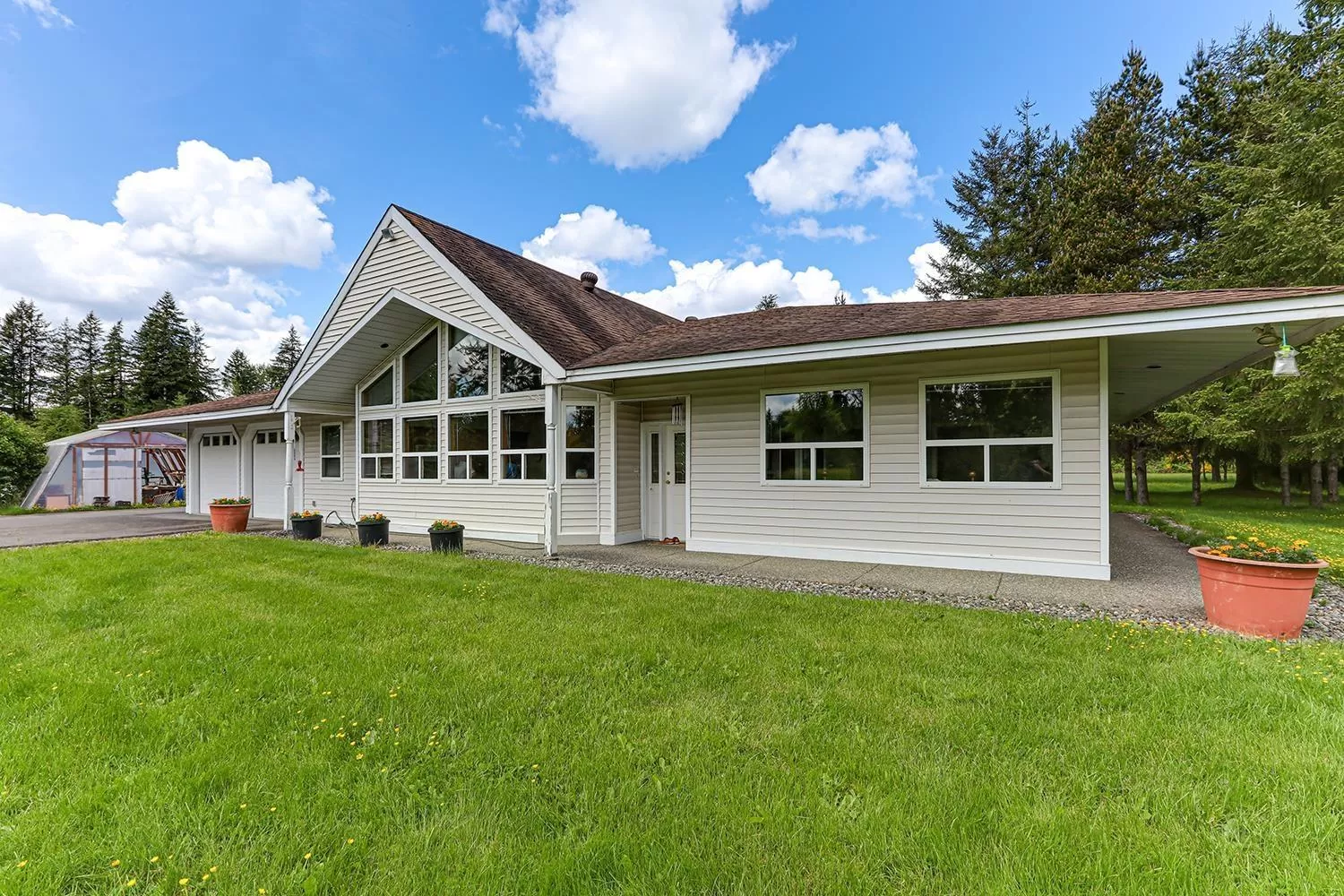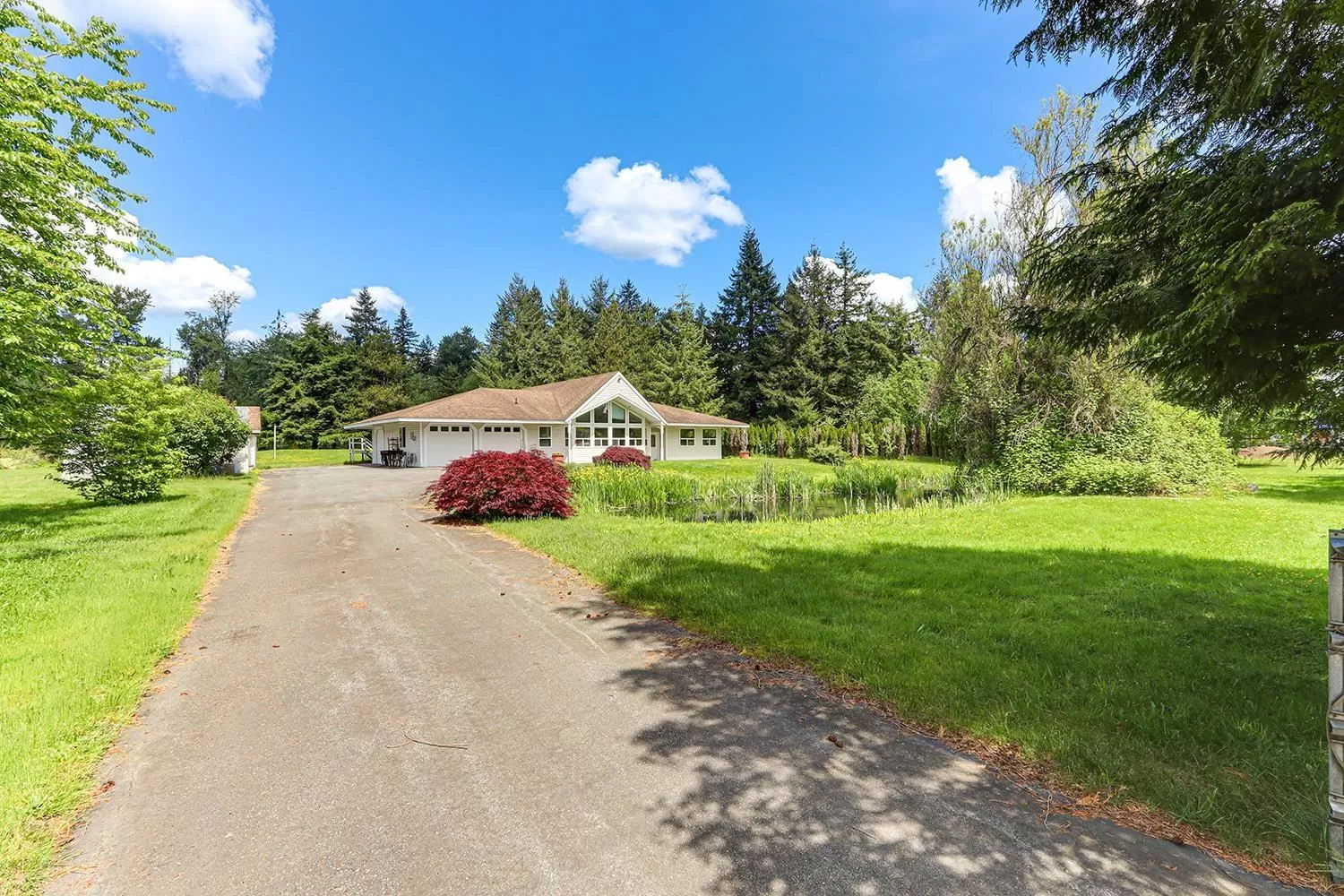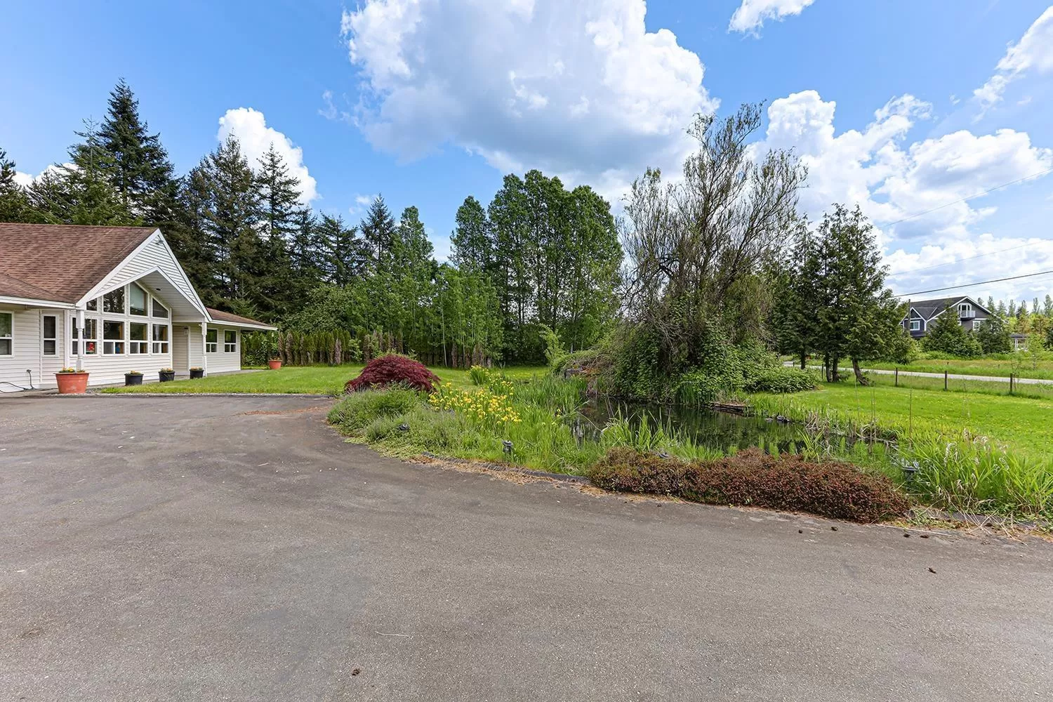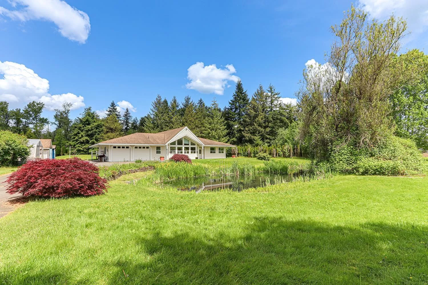 First time on Market in 50 years! 10.7 Acres only blocks from Downtown Langley, schools, shopping and more. This 2,026 sq ft rancher was custom built in 1997 for this owner. It features large vaulted ceilings, huge great room with floor to ceiling windows, open kitchen/dining concept and cozy fireplace. 3 bedrooms including large primary bedroom and ensuite. Huge double garage/workshop attached. The property has 312 ft of frontage by 1480 ft deep and has approx 3 acres of cleared area with lawn and field, a small pond in front and a small stream runs across the property where local waterfowl and wildlife can be seen. Treed back section creates privacy and provides many options for the next owner. (id:27476)