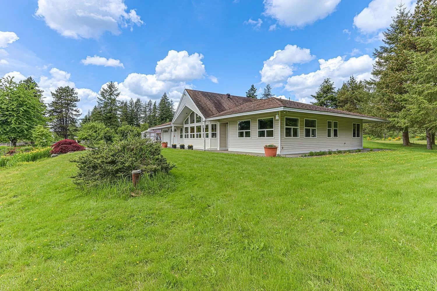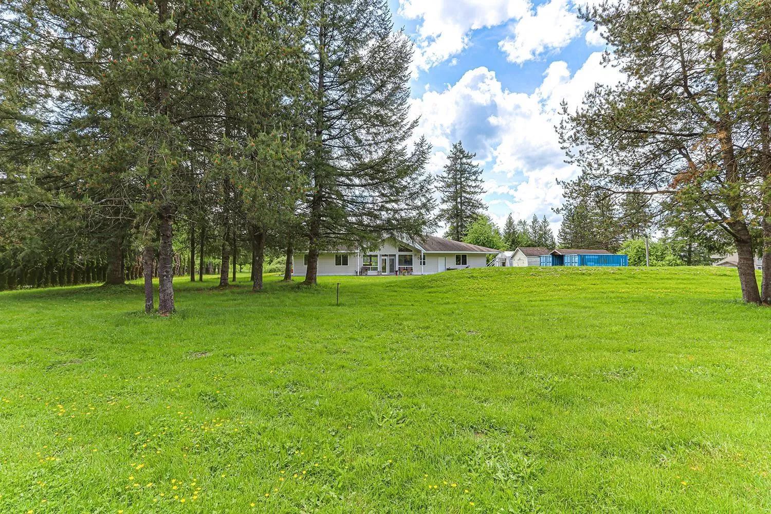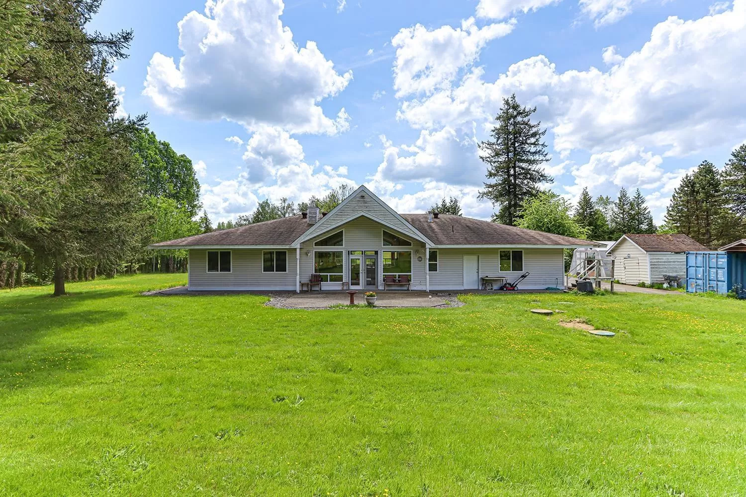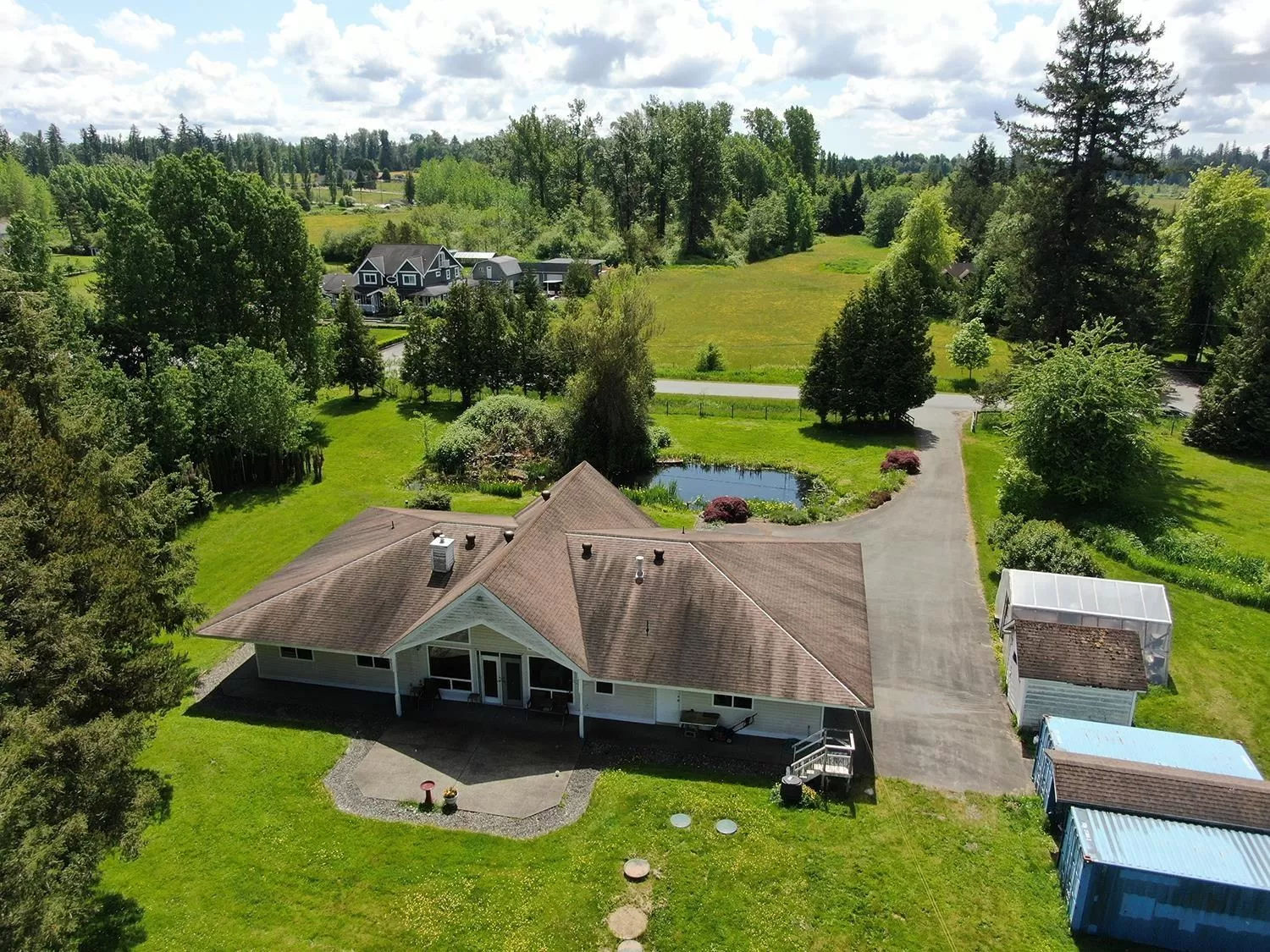 First time on Market in 50 years! 10.7 Acres only blocks from Downtown Langley, schools, shopping and more. This 2,026 sq ft rancher was custom built in 1997 for this owner. It features large vaulted ceilings, huge great room with floor to ceiling windows, open kitchen/dining concept and cozy fireplace. 3 bedrooms including large primary bedroom and ensuite. Huge double garage/workshop attached. The property has 312 ft of frontage by 1480 ft deep and has approx 3 acres of cleared area with lawn and field, a small pond in front and a small stream runs across the property where local waterfowl and wildlife can be seen. Treed back section creates privacy and provides many options for the next owner. (id:27476)