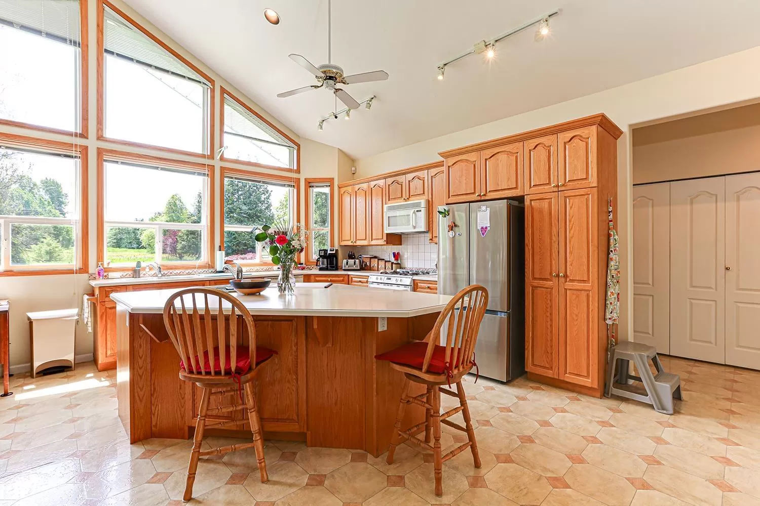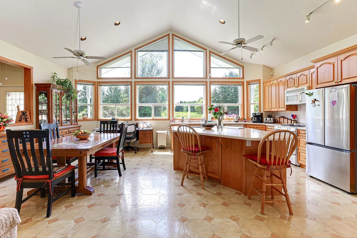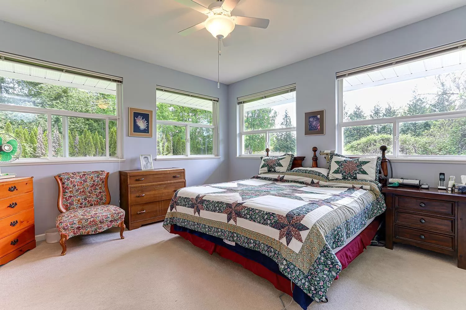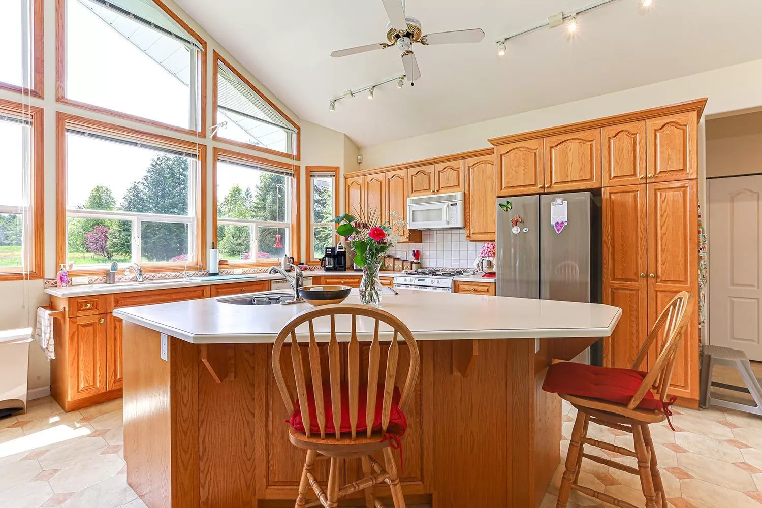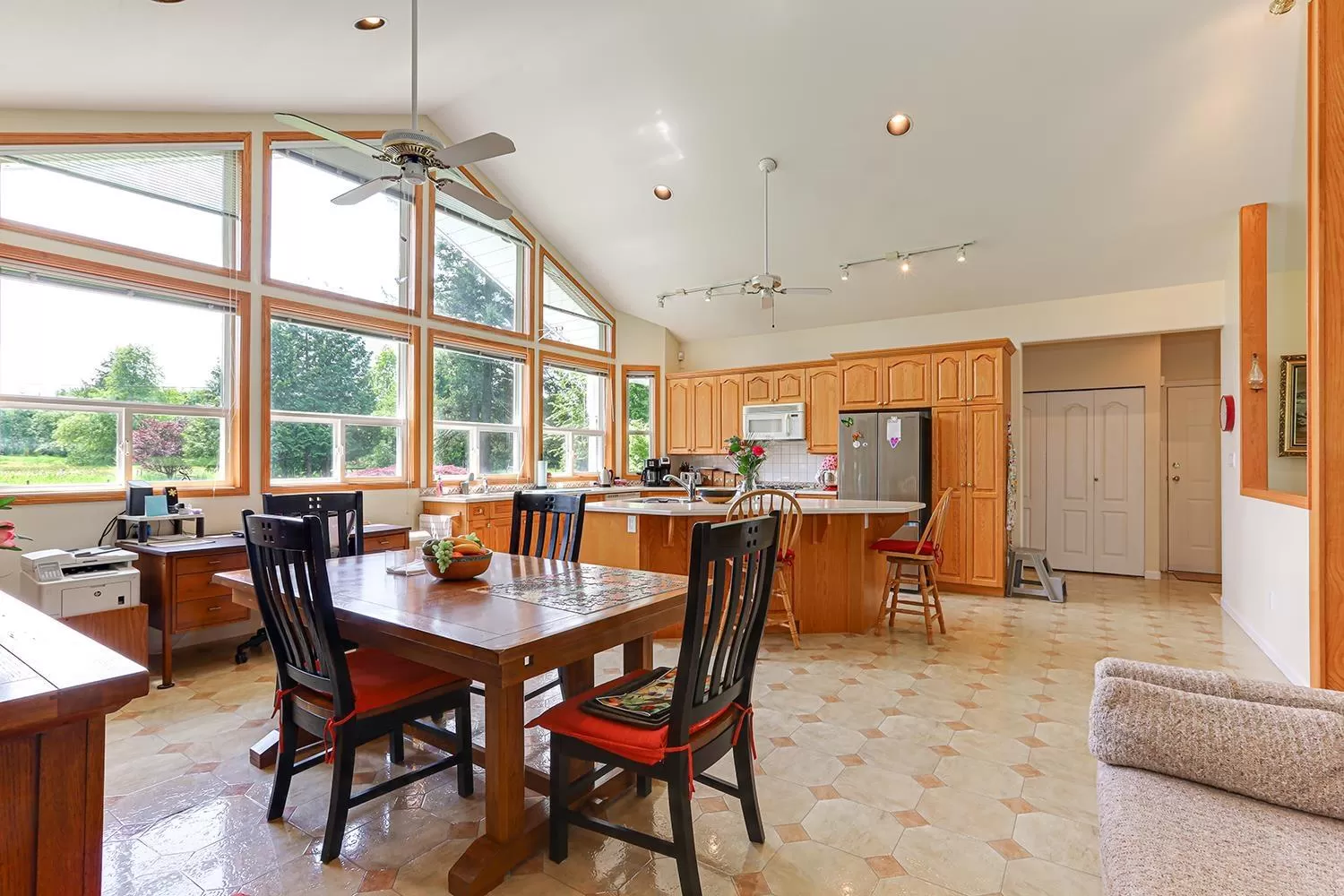 First time on Market in 50 years! 10.7 Acres only blocks from Downtown Langley, schools, shopping and more. This 2,026 sq ft rancher was custom built in 1997 for this owner. It features large vaulted ceilings, huge great room with floor to ceiling windows, open kitchen/dining concept and cozy fireplace. 3 bedrooms including large primary bedroom and ensuite. Huge double garage/workshop attached. The property has 312 ft of frontage by 1480 ft deep and has approx 3 acres of cleared area with lawn and field, a small pond in front and a small stream runs across the property where local waterfowl and wildlife can be seen. Treed back section creates privacy and provides many options for the next owner. (id:27476)