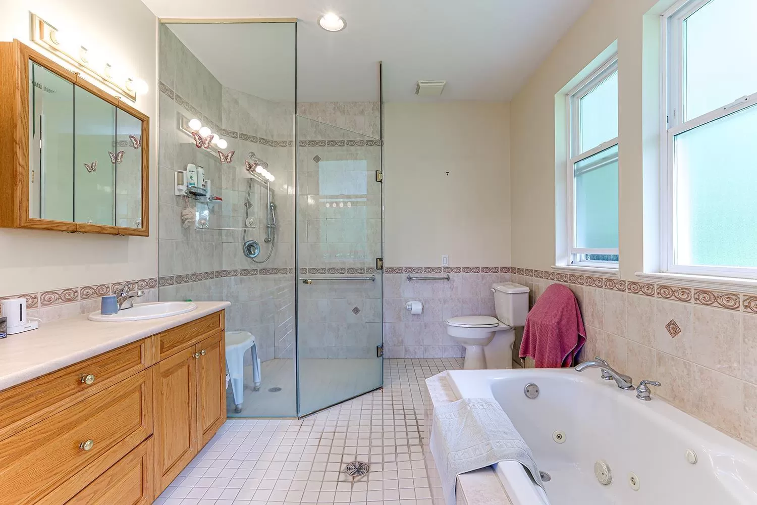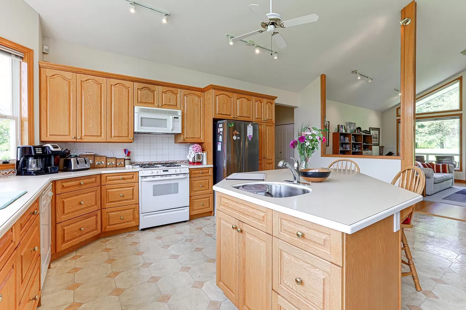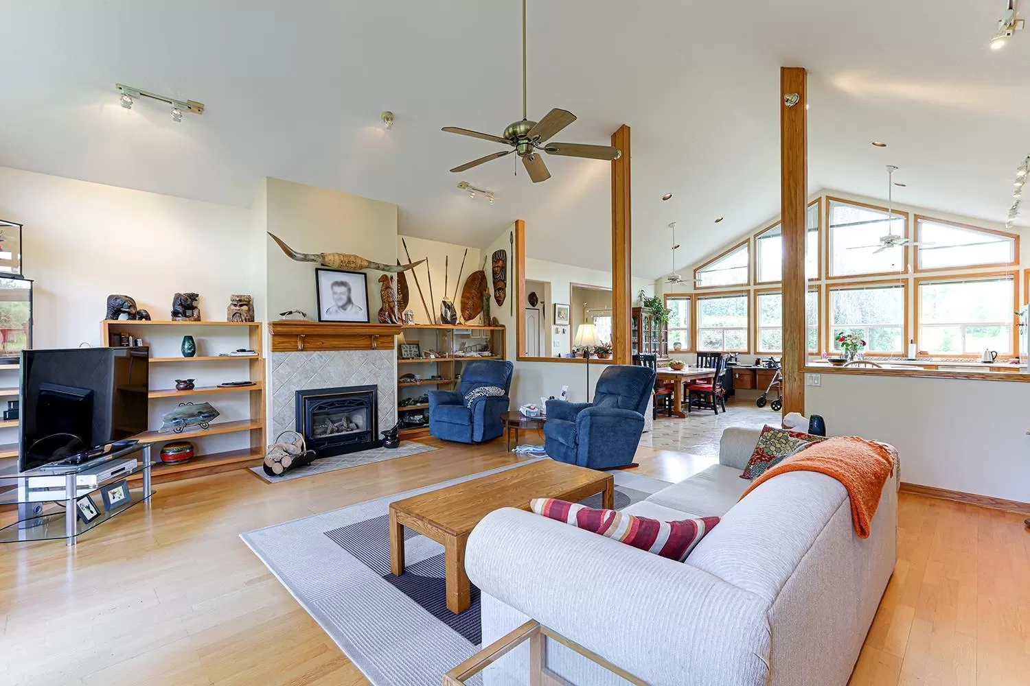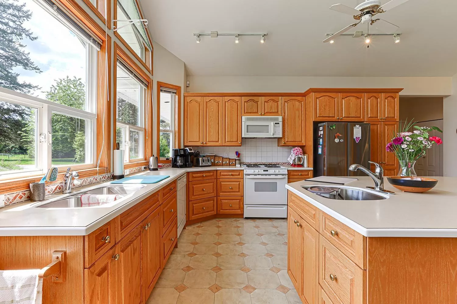 First time on Market in 50 years! 10.7 Acres only blocks from Downtown Langley, schools, shopping and more. This 2,026 sq ft rancher was custom built in 1997 for this owner. It features large vaulted ceilings, huge great room with floor to ceiling windows, open kitchen/dining concept and cozy fireplace. 3 bedrooms including large primary bedroom and ensuite. Huge double garage/workshop attached. The property has 312 ft of frontage by 1480 ft deep and has approx 3 acres of cleared area with lawn and field, a small pond in front and a small stream runs across the property where local waterfowl and wildlife can be seen. Treed back section creates privacy and provides many options for the next owner. (id:27476)