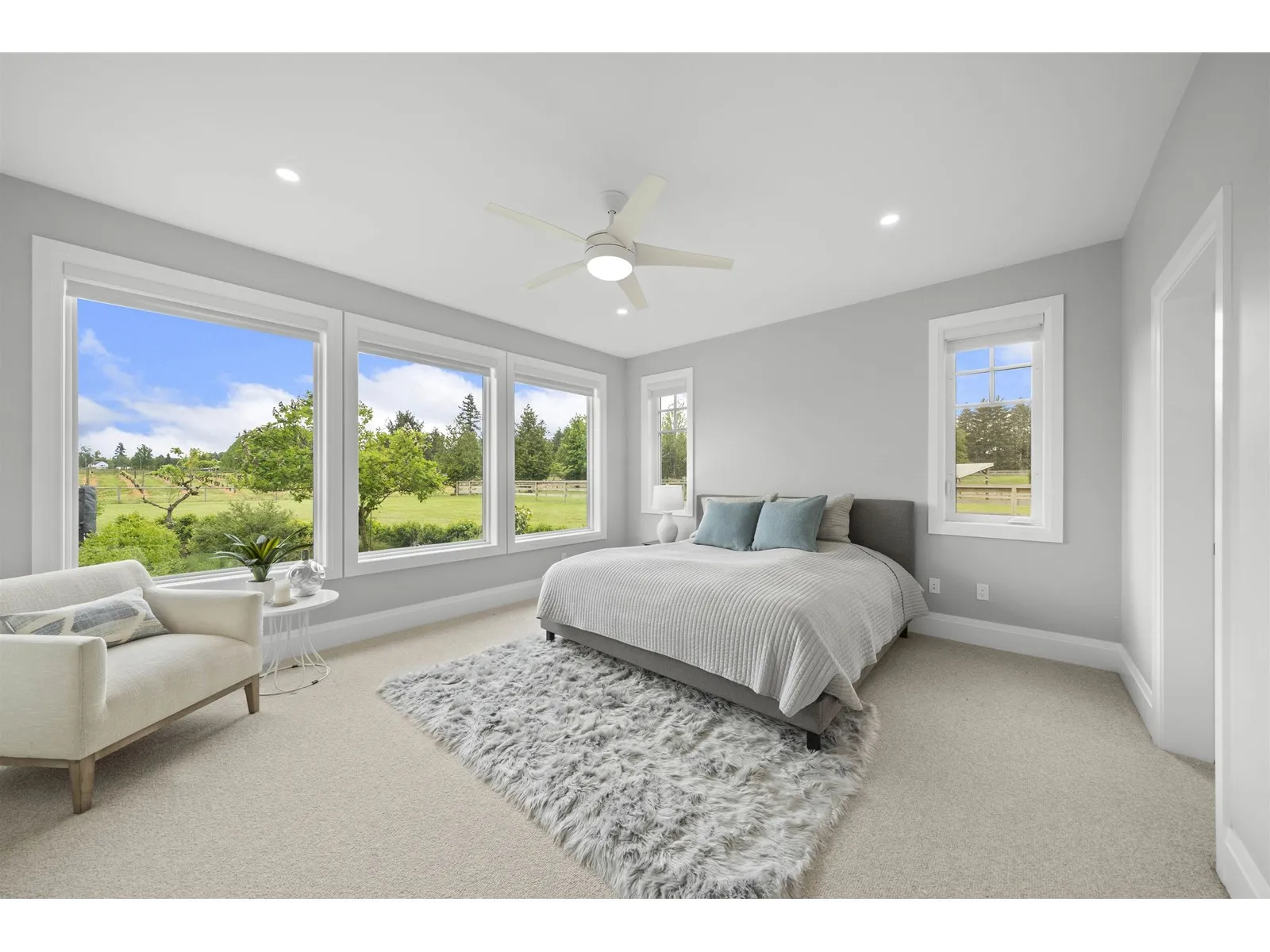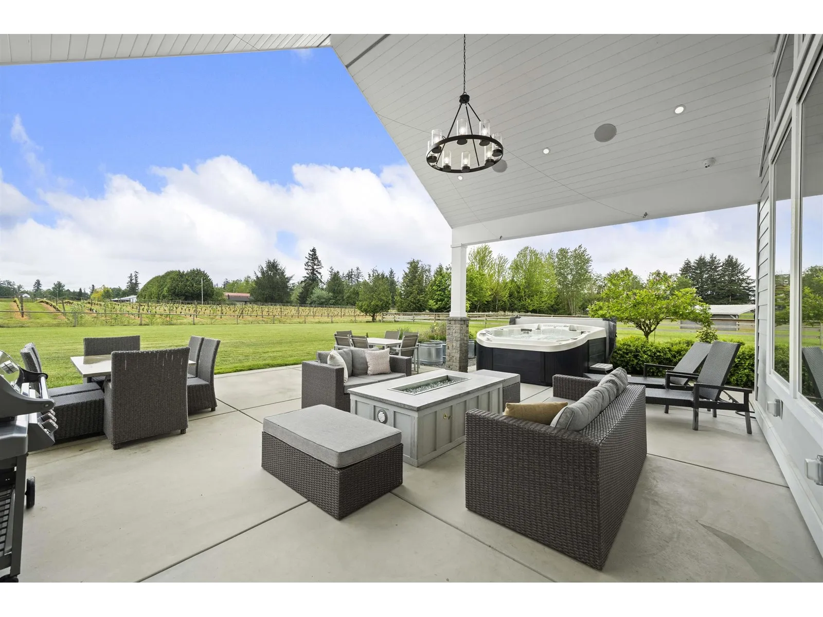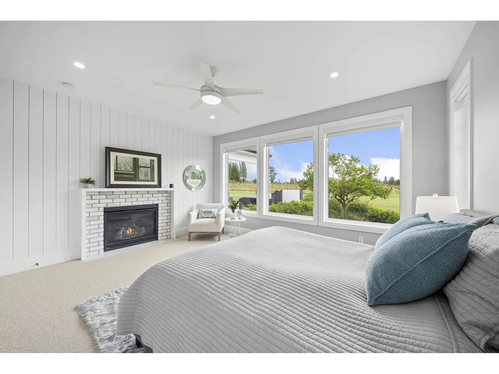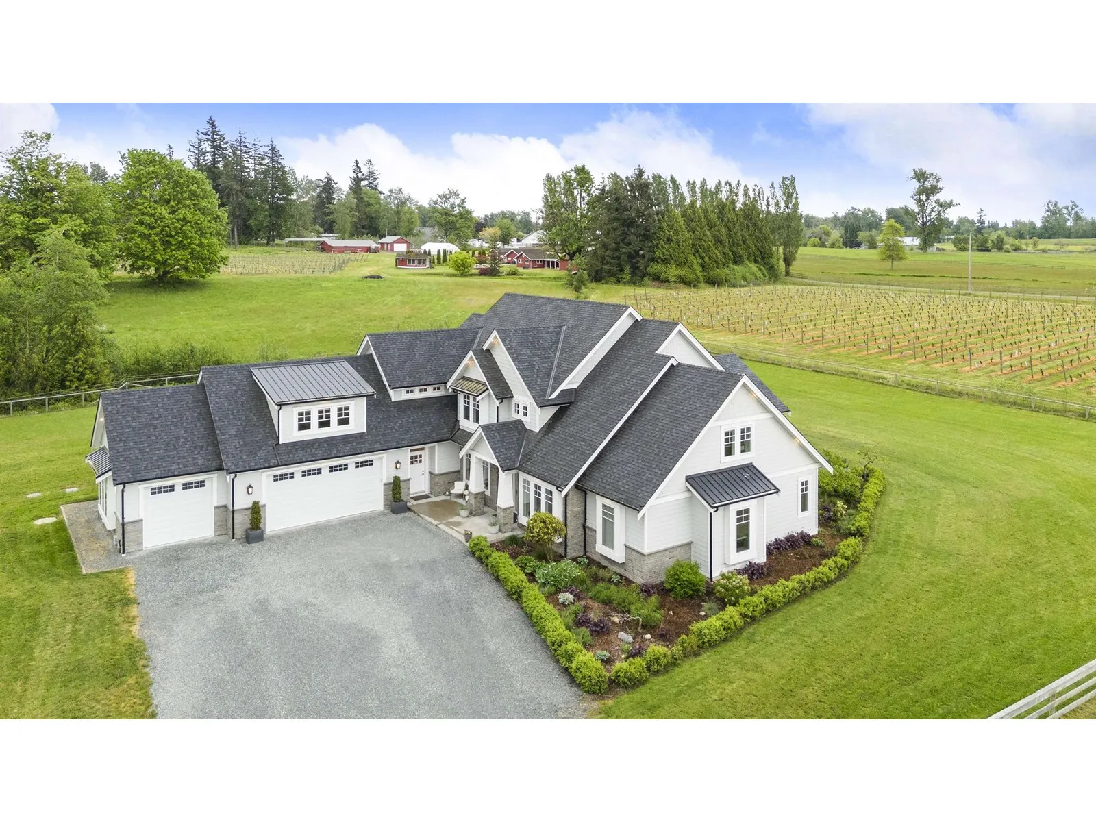 Discover the perfect blend of luxury and natural beauty in this stunning 2 storey estate, offering panoramic views of a vineyard and rolling pastures. Designed with timeless transitional style and open-concept living, this home delivers comfort, elegance, and functionality throughout. It begins with a bright living room featuring a double-height ceiling that flows seamlessly into the dining area and a chef's kitchen, fully equipped with Wolf and Sub-Zero appliances. The main floor also features a primary suite that provides a peaceful and private retreat. Enjoy the comfort of AC indoors, relax under the spacious covered patio, or unwind in the hot tub. For the hobbyist, there's a triple garage, a 6-stall barn, and a 22' x 44' detached shop. Truly one of a kind, come see for yourself! (id:27476)