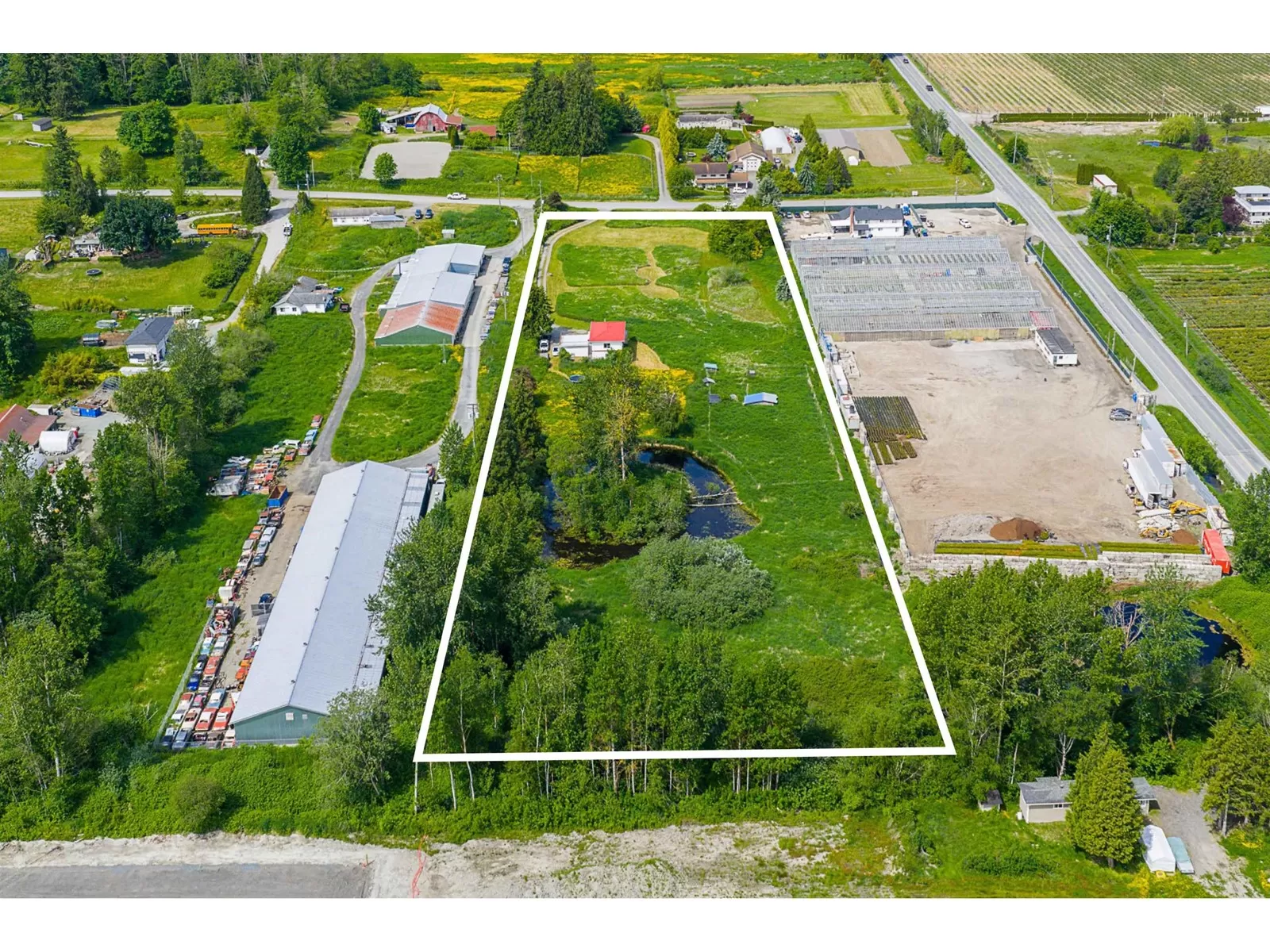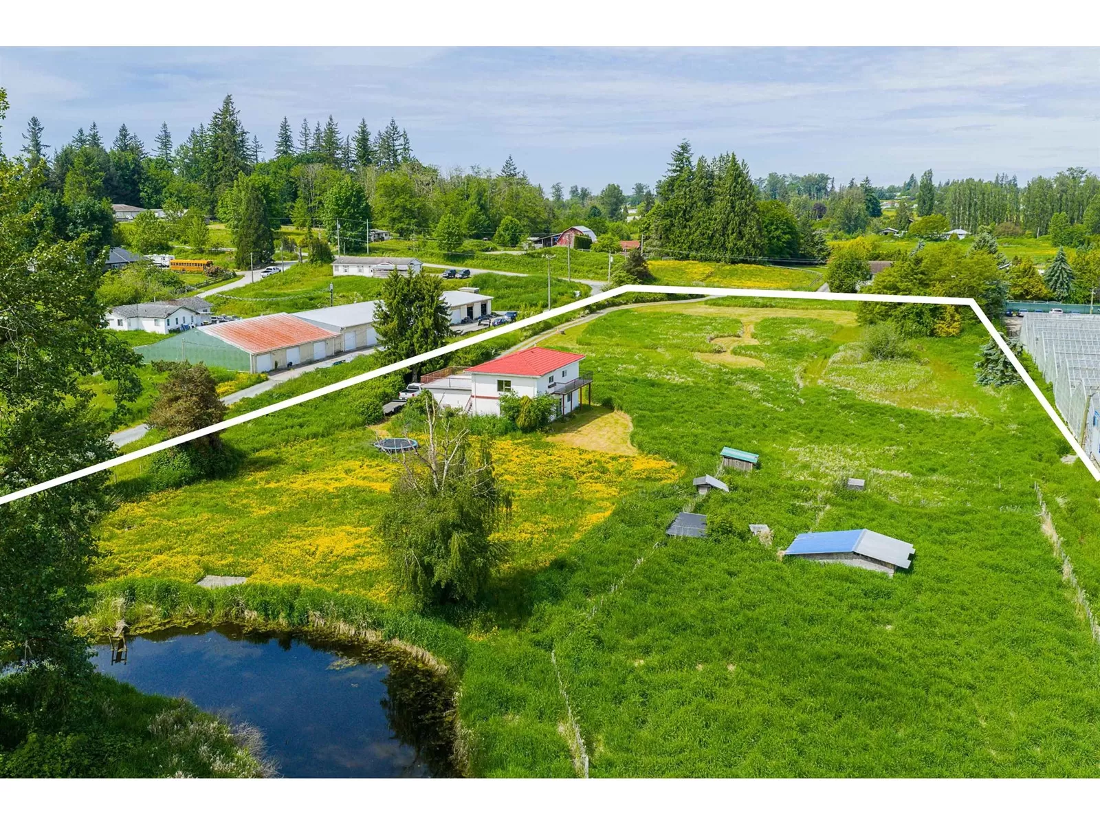 5.16 ACRES House and Acreage! This property features a 1,920 SQ/FT Home with 3 Bedrooms and 2 Bathrooms and a beautiful pond at the back of the property. It is great for all sorts of farming or to build an estate home. Easy access to all amenities, 16 Avenue, Fraser Highway, and the USA Border. (id:27476)