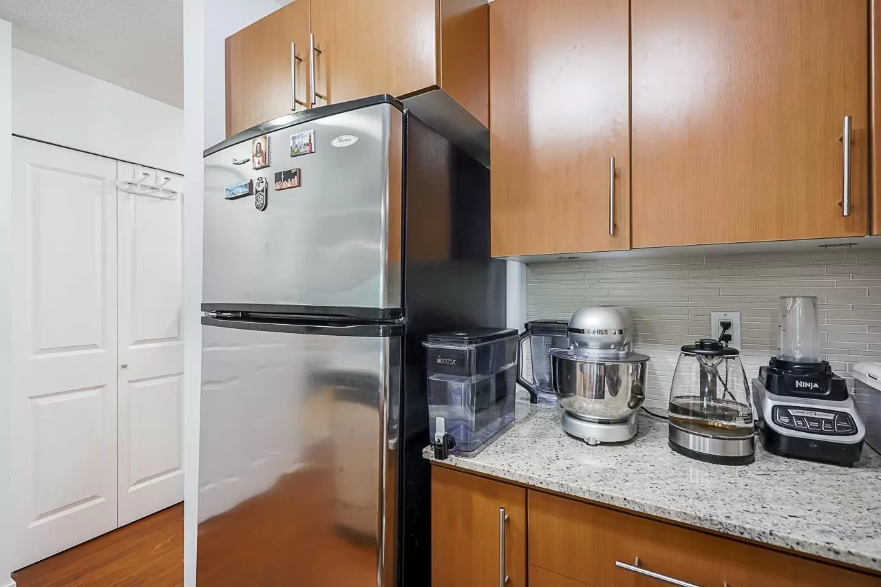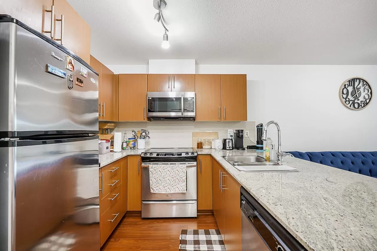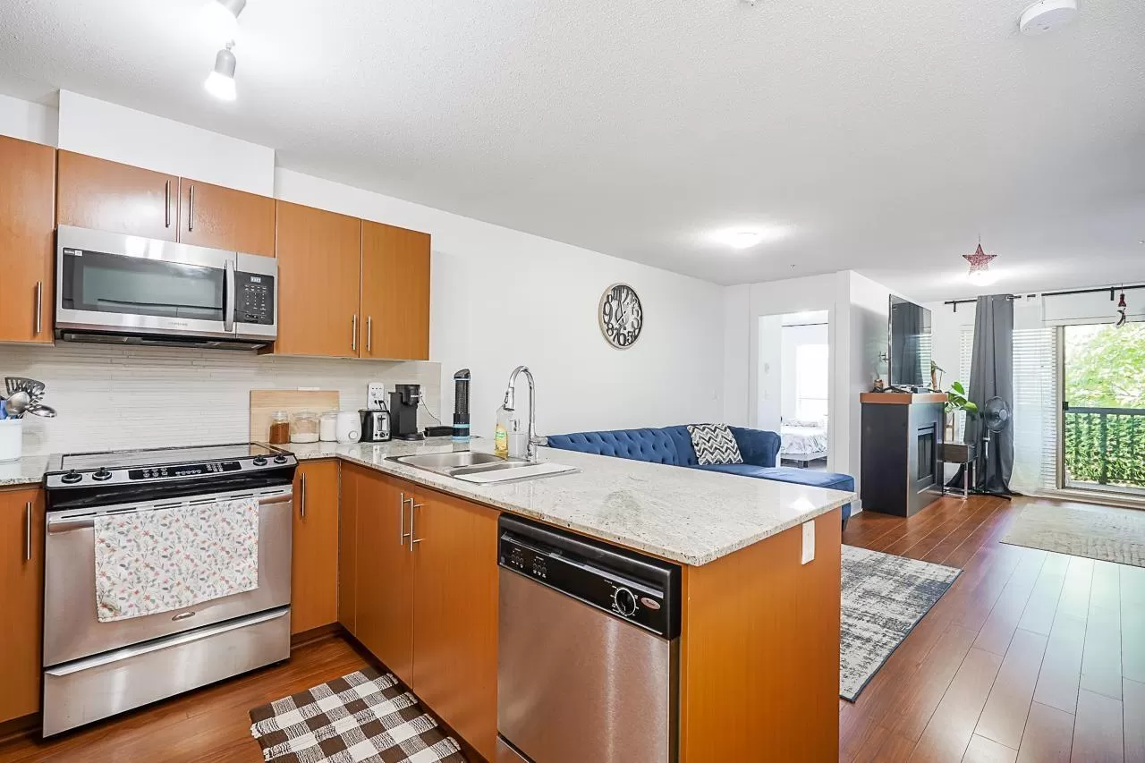 Welcome to the highly sought-after Hawthorne building in Walnut Grove! This beautifully maintained 2-bedroom, 2-bathroom home offers a bright, open-concept layout featuring granite countertops, stainless steel appliances, laminate flooring, and a cozy electric fireplace. Enjoy the outdoors on your large, private patio-perfect for those warm summer days. Ideally located with quick access to HWY 1, HWY 17, and the Golden Ears Bridge, plus within walking distance to all essential amenities. Includes 2 PARKING STALLS (side-by-side ) and 1 STORAGE. Don't miss out-schedule your viewing today! (id:27476)