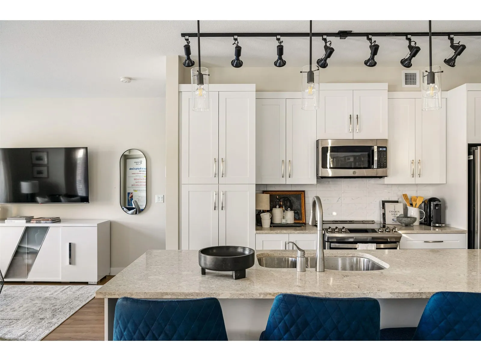 Excellent central location. Welcome to Kensington Gate by Quadra Homes! The best Condo builders around. Very Spacious Corner unit has 2 bedrooms, 2 Full baths. Primary bedroom has 4 pc. ens. & W/I closet. Gourmet kitchen stocked with stainless steel high end appliances include a 5 burner gas cooktop, convection oven, quartz countertops and white. shaker cabinets. Heated tile floors in the bathroom, 9 ft ceilings, oversize windows & Blinds. High quality finishing and A/C included !! The 9'9 x 9' Sundeck includes gas hook up for BBQ. Secured Underground parking space with access for electric car charger. Bike storage. Walking distance to restaurants, shopping & future Sky train station. Don't miss out. Let's make a deal. Great for rental. Call me for more details. (id:27476)