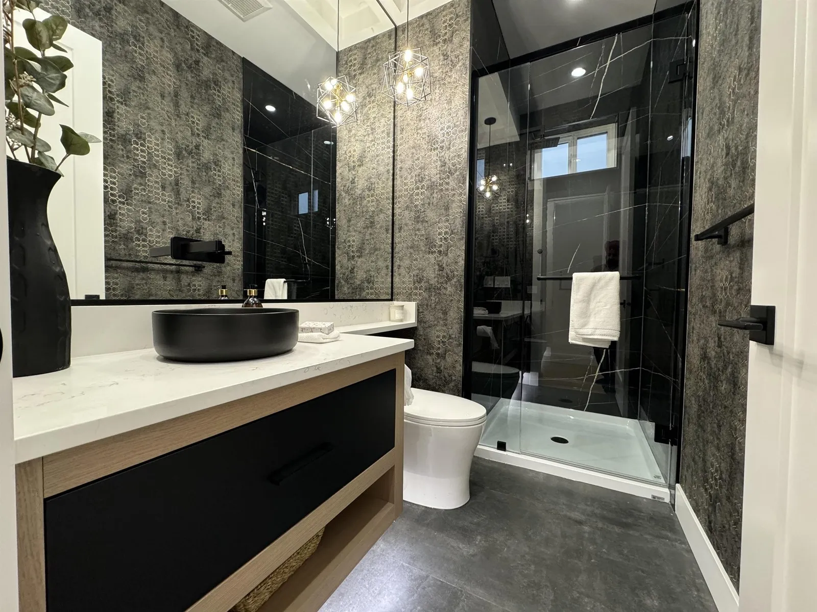 Discover contemporary comfort in this brand-new Langley residence! This stylish home boasts modern architecture and features a spacious layout with high-end finishes throughout. Main floor boasts with Living/Den/office with large over-sized windows. Beautiful Family room with Large Dining area. Gourmet kitchen with modern High End Appliances & Wok Kitchen is a bonus. Four bedrooms above with 3 washrooms, Master bedroom with His & Her closets & luxe ensuite. The basement boasts a LEGAL 2 Bedroom Suite + Media room & Bedroom/rec/gym with Separate entrance (Potential for 2nd suite). Builtin Vacuum, A/C, HRV & Radiant heat (all 3 floors). This property offers both luxury and practicality. Don't miss out. Suites are rented and minimum 24 hours notice required for viewing. (id:27476)