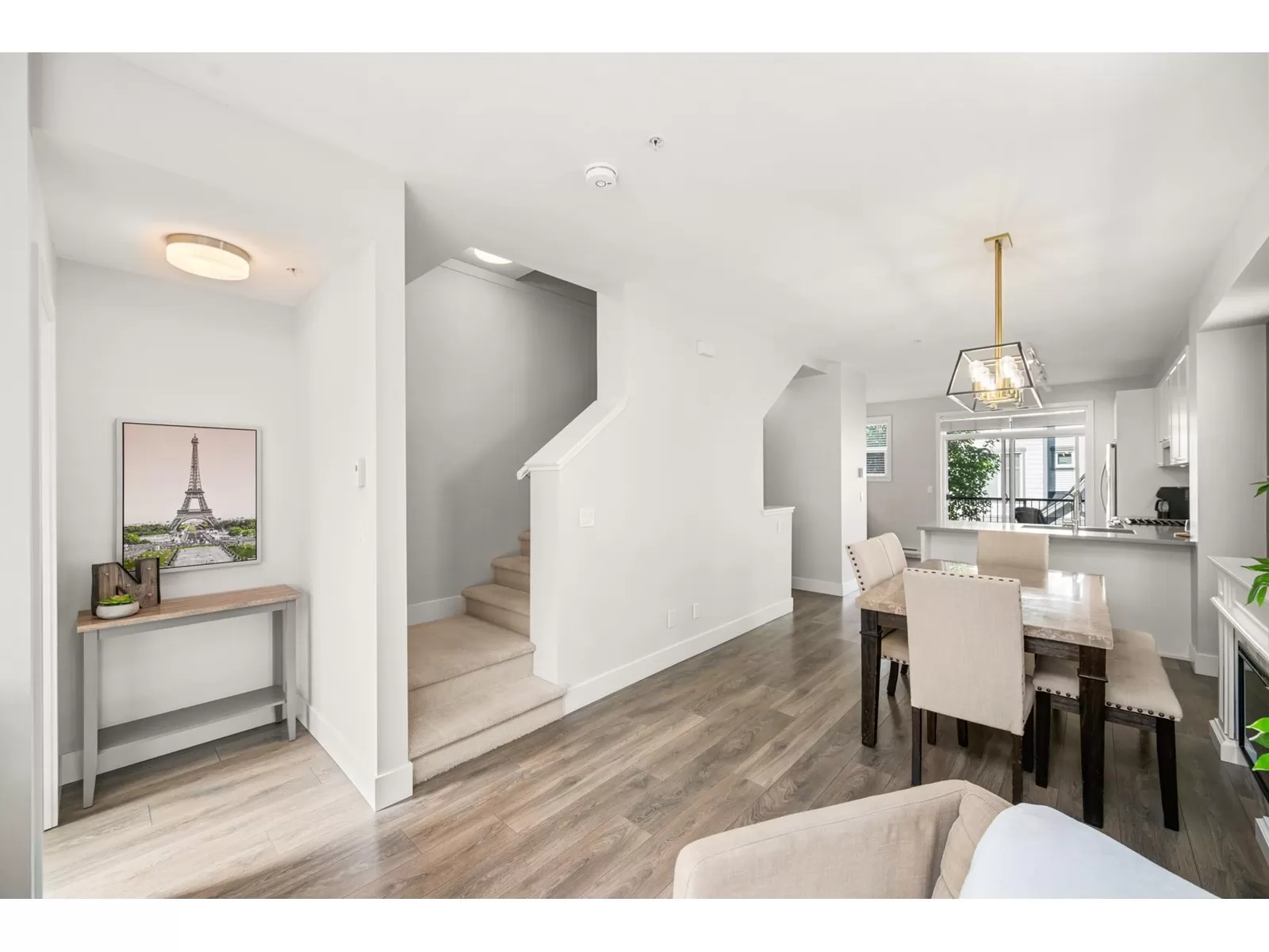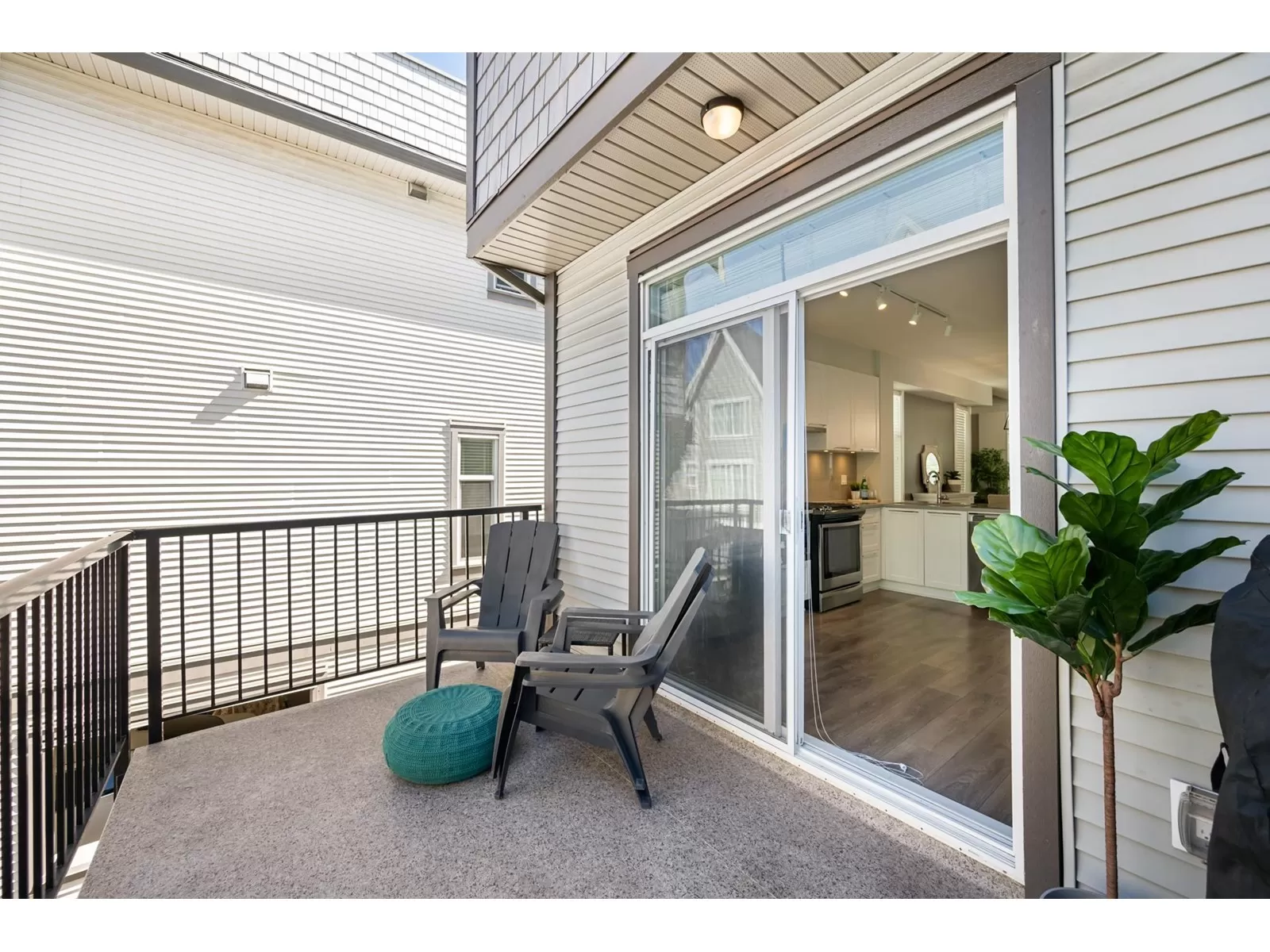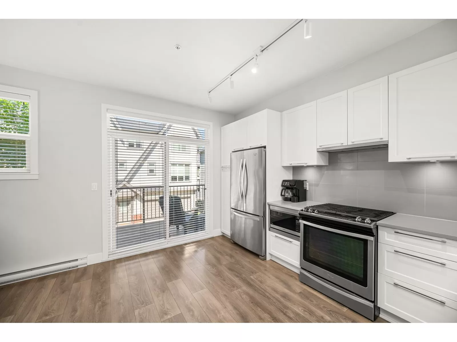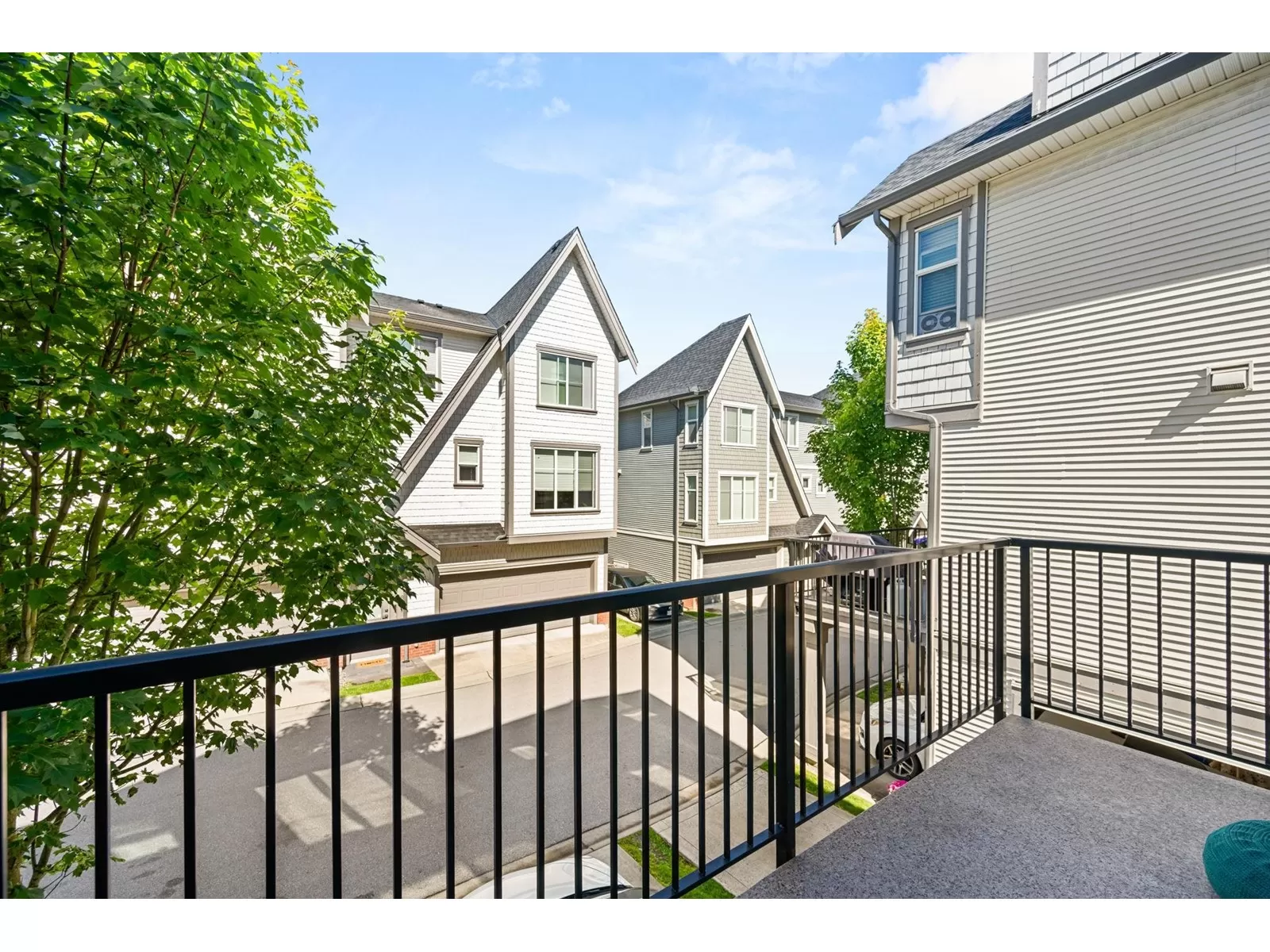 EVERLY GREEN - The best unit in the complex! This bright, end-unit townhome boasts the highest rooftop with stunning mountain and forest views. One of only three units with 3 parking spots-garage, carport & driveway. The private rooftop patio is a true oasis: sunny all day and perfect for sunbathing, dining, BBQs (gas hookup), relaxing by the fire, or adding a canopy for year-round use. Enjoy a second patio off the kitchen and a sunny front yard with new grass. Surrounded on 3 sides by protected greenbelt, with a playground at your doorstep and Yorkson Park just steps away. Walk to schools, close to HWY 1 & Carvolth. Bonus den, epoxy garage floors, gas range-this one has it all! (id:27476)