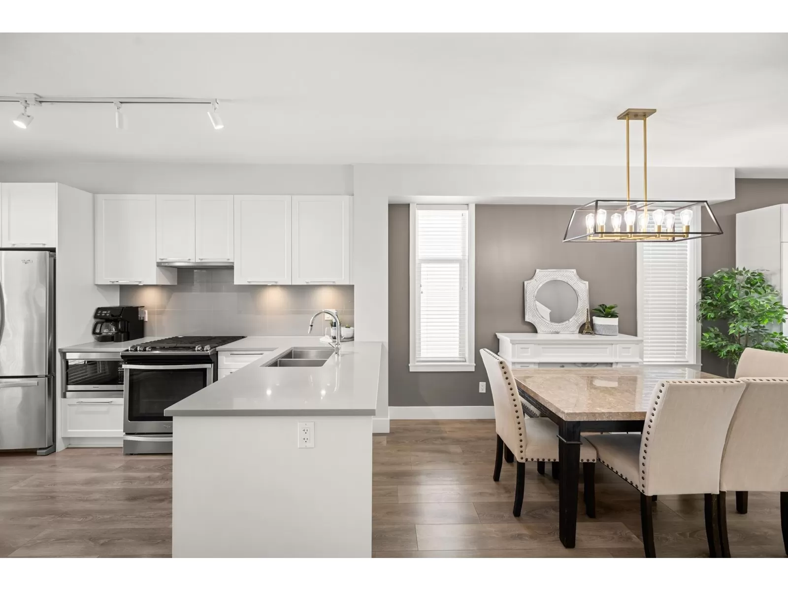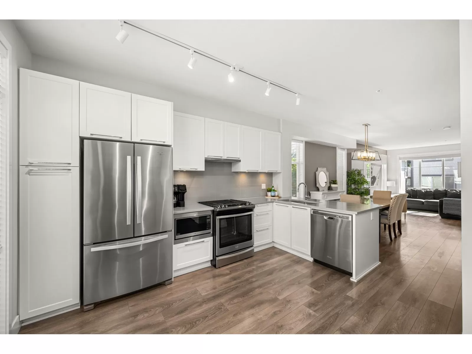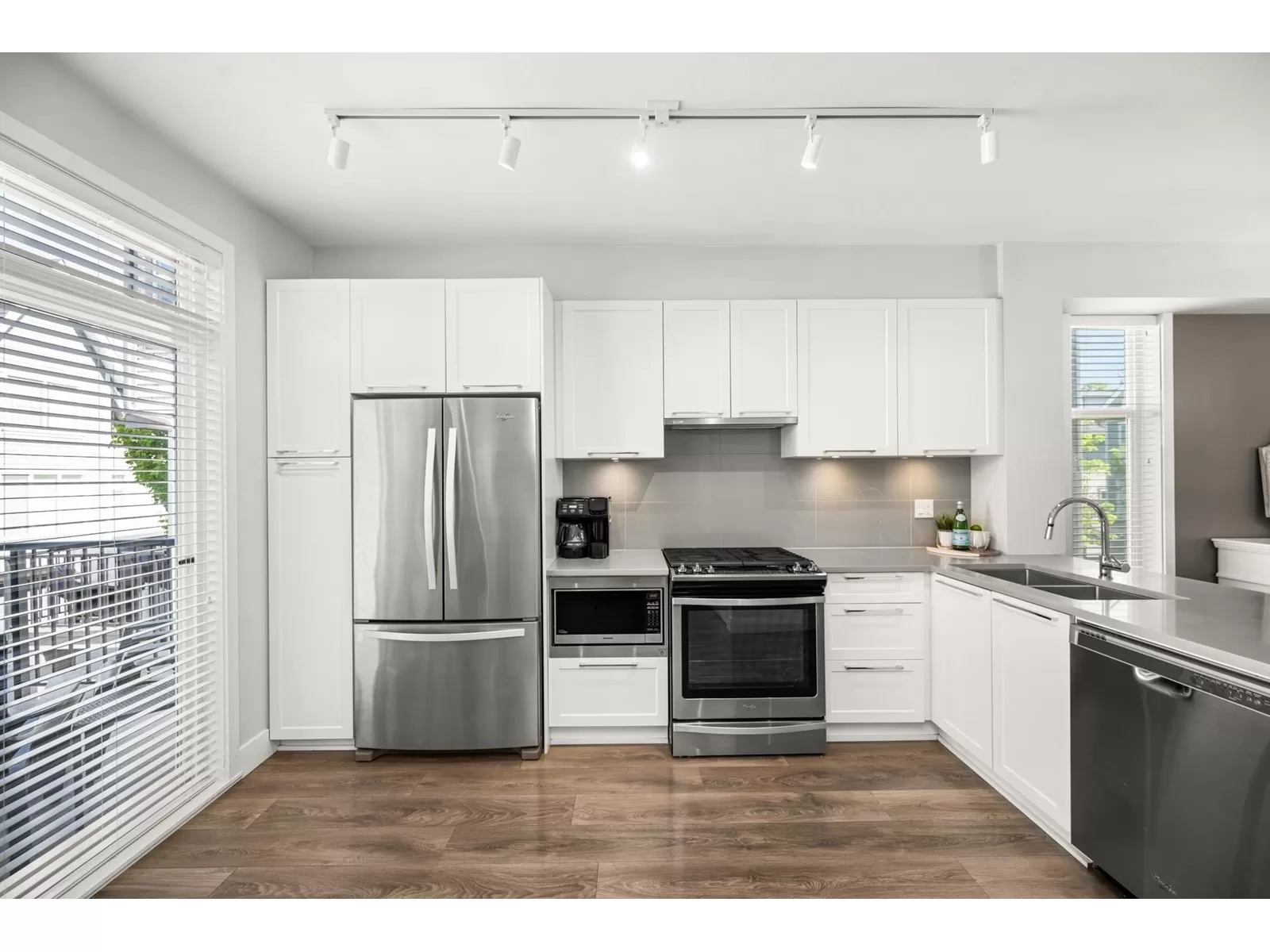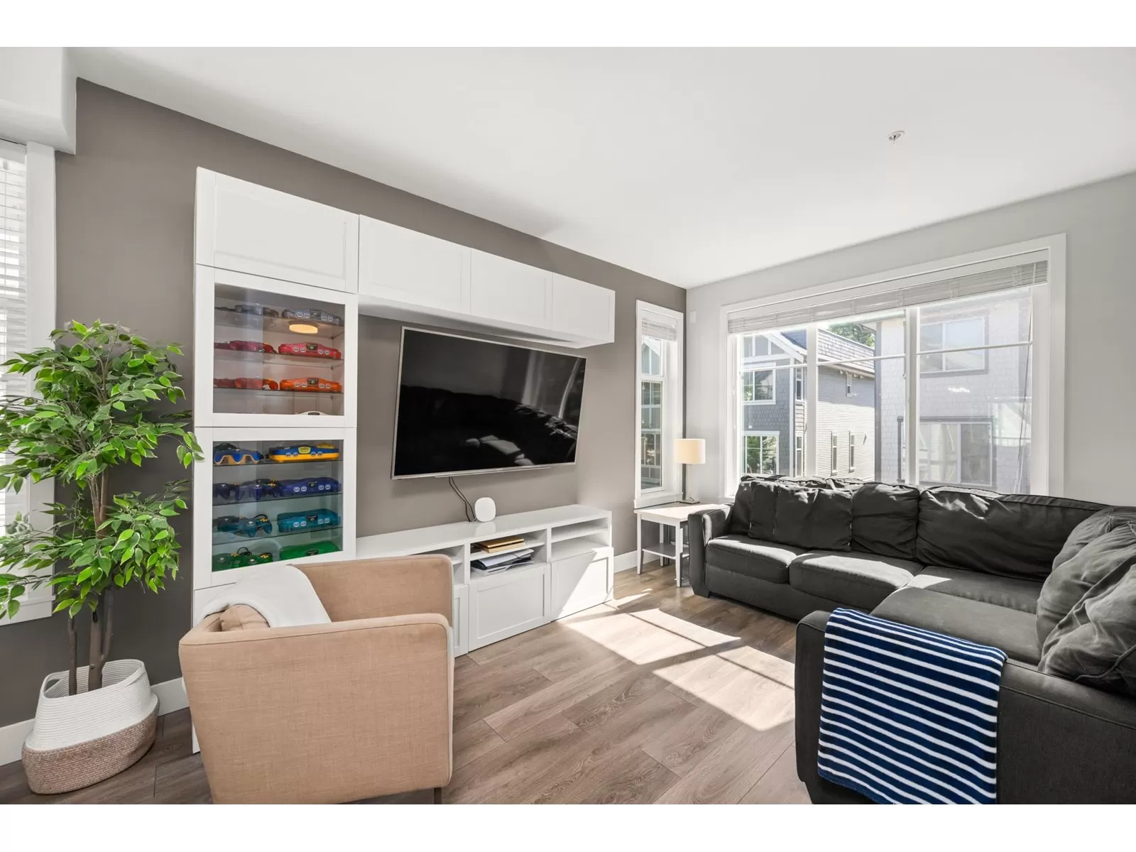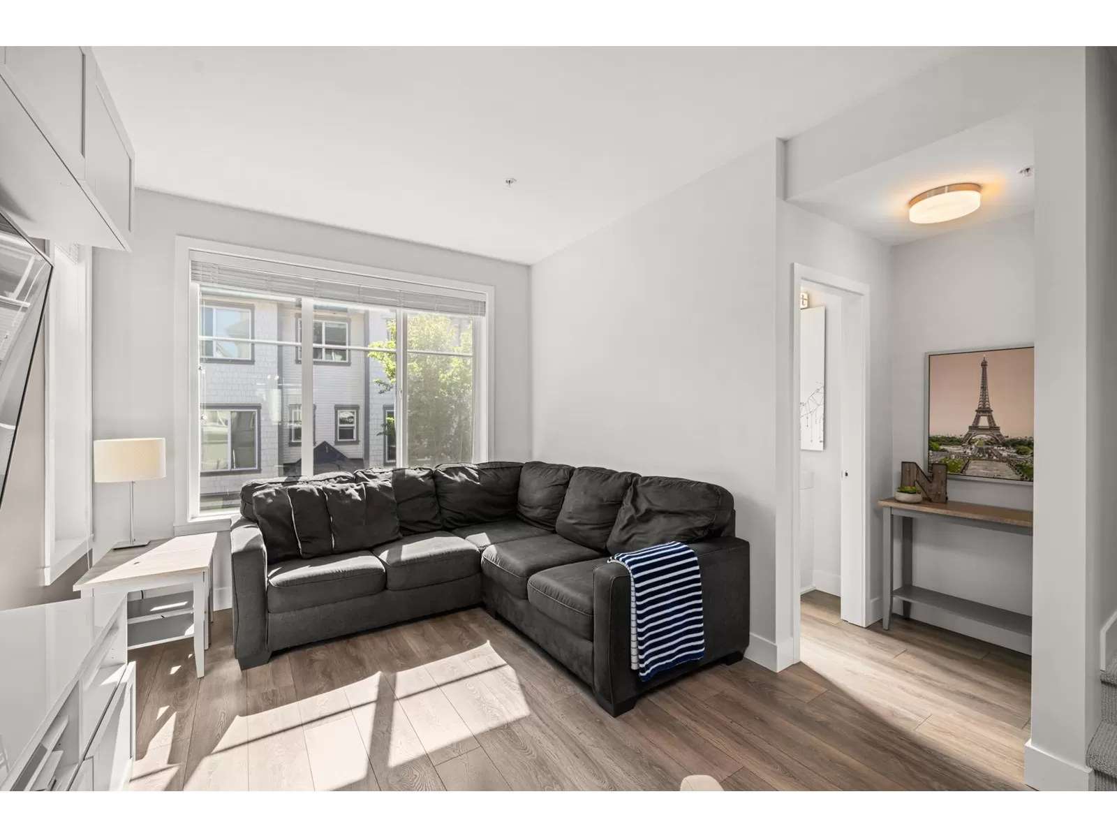EVERLY GREEN - The best unit in the complex! This bright, end-unit townhome boasts the highest rooftop with stunning mountain and forest views. One of only three units with 3 parking spots-garage, carport & driveway. The private rooftop patio is a true oasis: sunny all day and perfect for sunbathing, dining, BBQs (gas hookup), relaxing by the fire, or adding a canopy for year-round use. Enjoy a second patio off the kitchen and a sunny front yard with new grass. Surrounded on 3 sides by protected greenbelt, with a playground at your doorstep and Yorkson Park just steps away. Walk to schools, close to HWY 1 & Carvolth. Bonus den, epoxy garage floors, gas range-this one has it all! (id:27476)