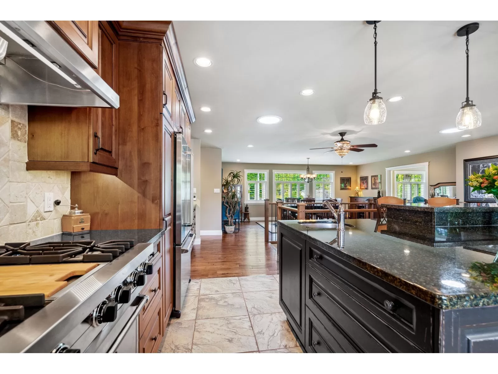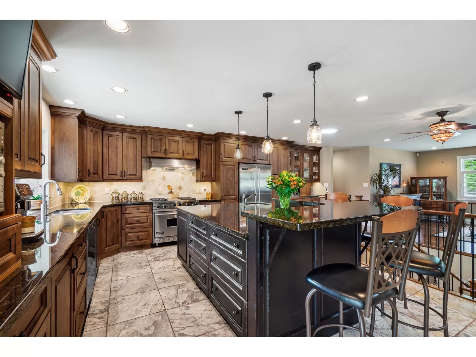 Beautifully set on a gated 15,726 sq ft lot, this 4,151 sq ft home offers space, style, and flexibility. The open-concept main floor with gourmet kitchen features stone counters, rich wood cabinetry, tile floors and quality appliances, flowing seamlessly to a large back deck-perfect for entertaining. Three bedrooms on the main, including a primary with walk-in closet and ensuite. Lower floor offers a legal 1-bedroom suite-ideal for extended family or mortgage help. Den, hobby room (could be another bedroom) and rec room round out the sprawling lower floor. Oversized double garage, ample driveway space, and side yard access with 30AMP RV hookup. Too many features to list-be sure to check out the cinematic video showcasing the property including the extensive and well cared for landscaping! (id:27476)