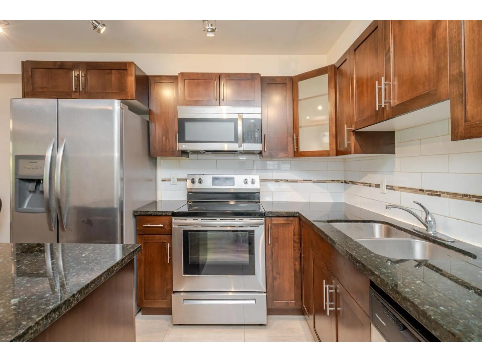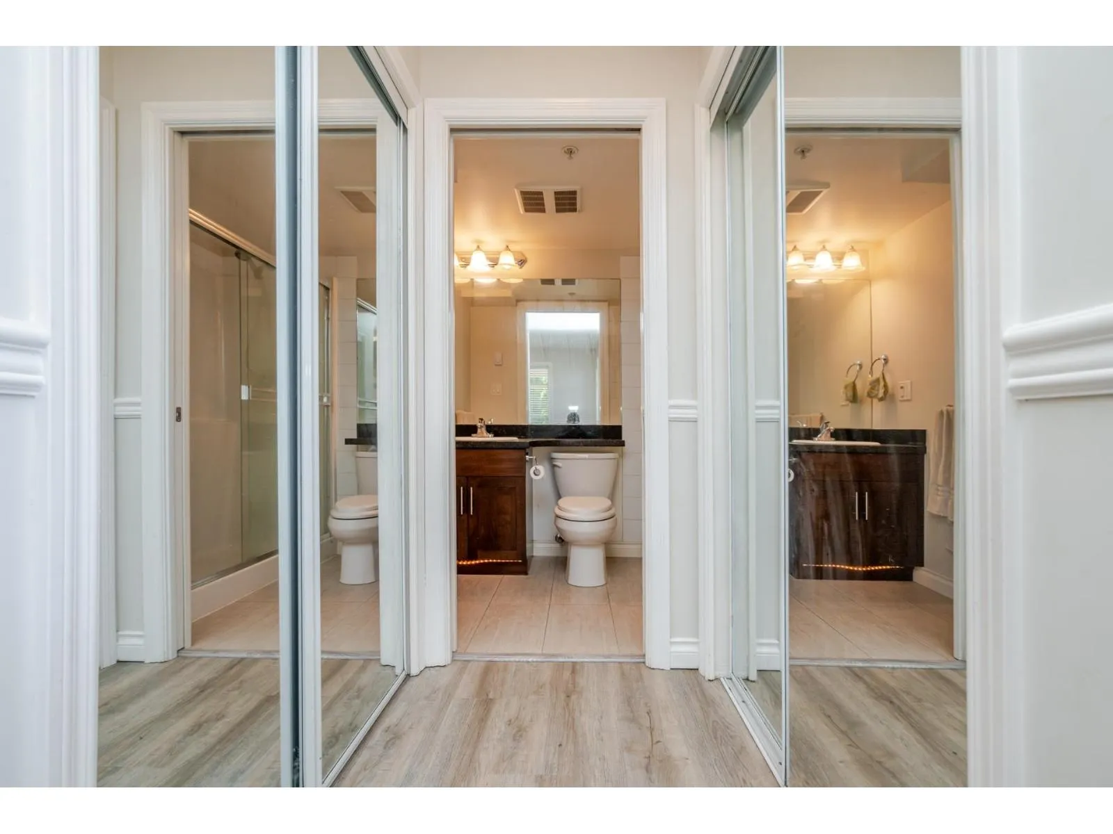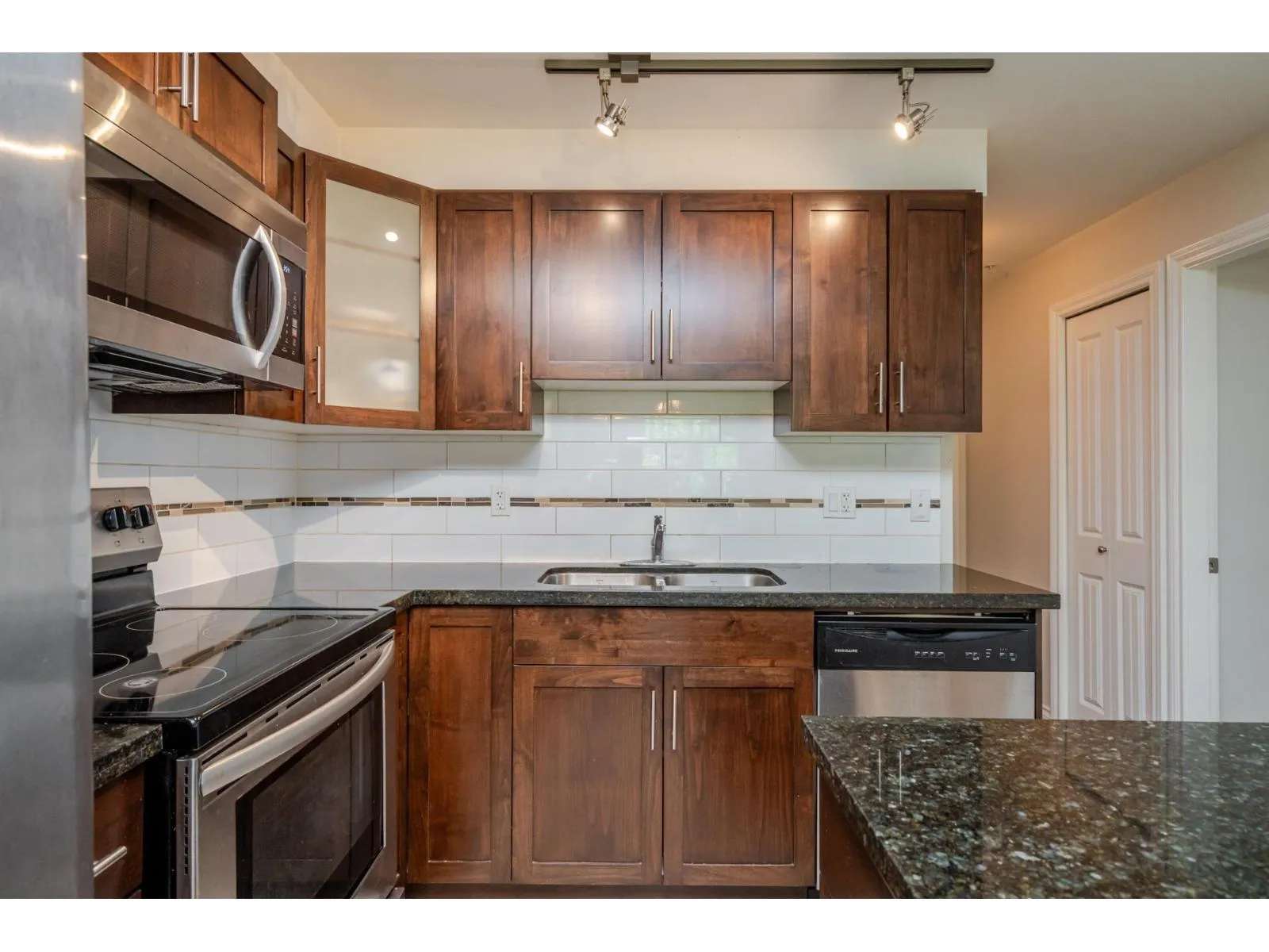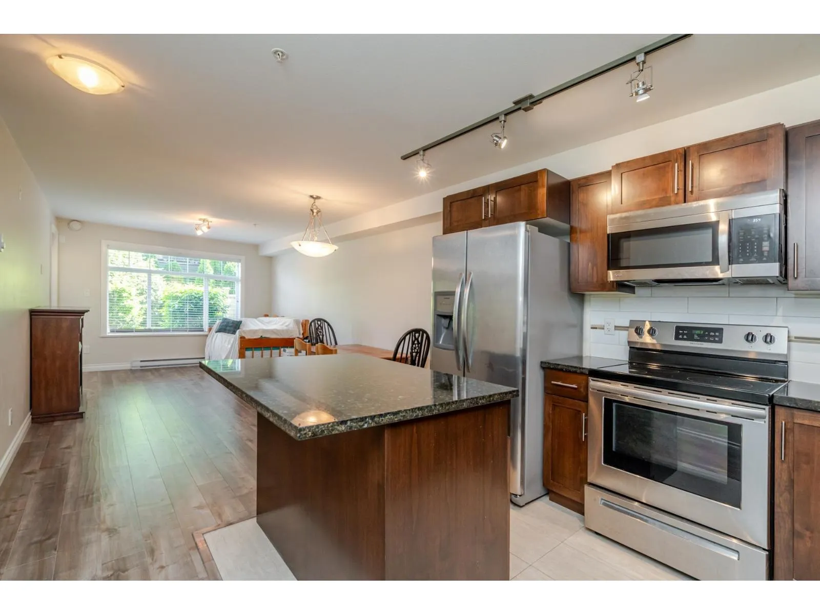 Welcome to Paddington Station in Downtown Langley! This spacious 854 sqft 2 bed, 2 bath ground floor CORNER unit features some newer flooring, granite counters, stainless steel appliances, and in-suite storage. The primary bedroom offers A/C, dual closets, and a private ensuite with oversized shower. Enjoy a nearly 250 sqft patio-perfect for relaxing or entertaining! Amenities include gym, guest suite, kids' playroom, meeting & party rooms, and bike locker. Pet & rental-friendly, allowing 2 dogs (22"), 2 cats, or combo. Includes 1 underground parking stall and ample visitor parking. Steps to shops, restaurants, parks, schools, transit, and the future SkyTrain! A great opportunity in a high-growth area! (id:27476)
